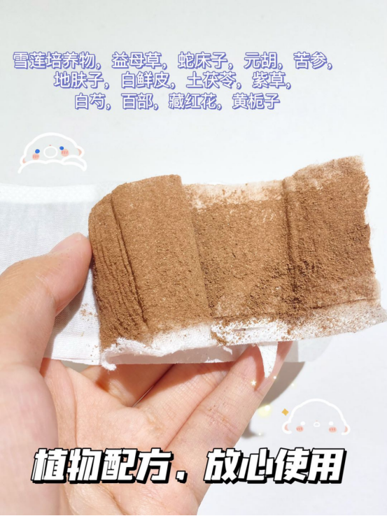 100%纯中药成分+100%纯棉柔表层‼️ 亲肤透气,吸湿性超棒💧 用它的时候,清清凉凉的,祛除异味,止痒又舒适~🌿