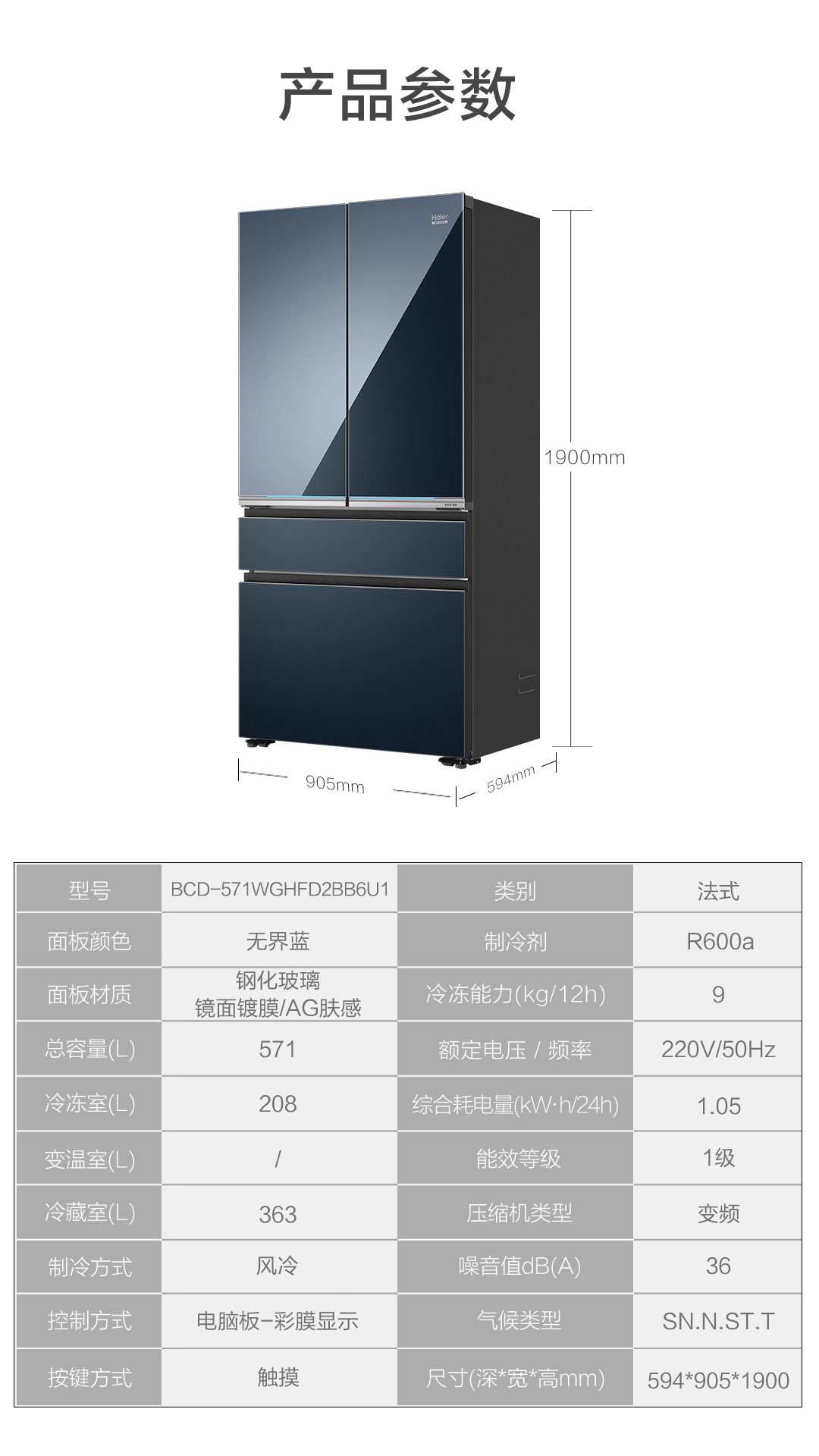 海尔(Haier)冰箱 BCD-571WGHFD2BB6U1