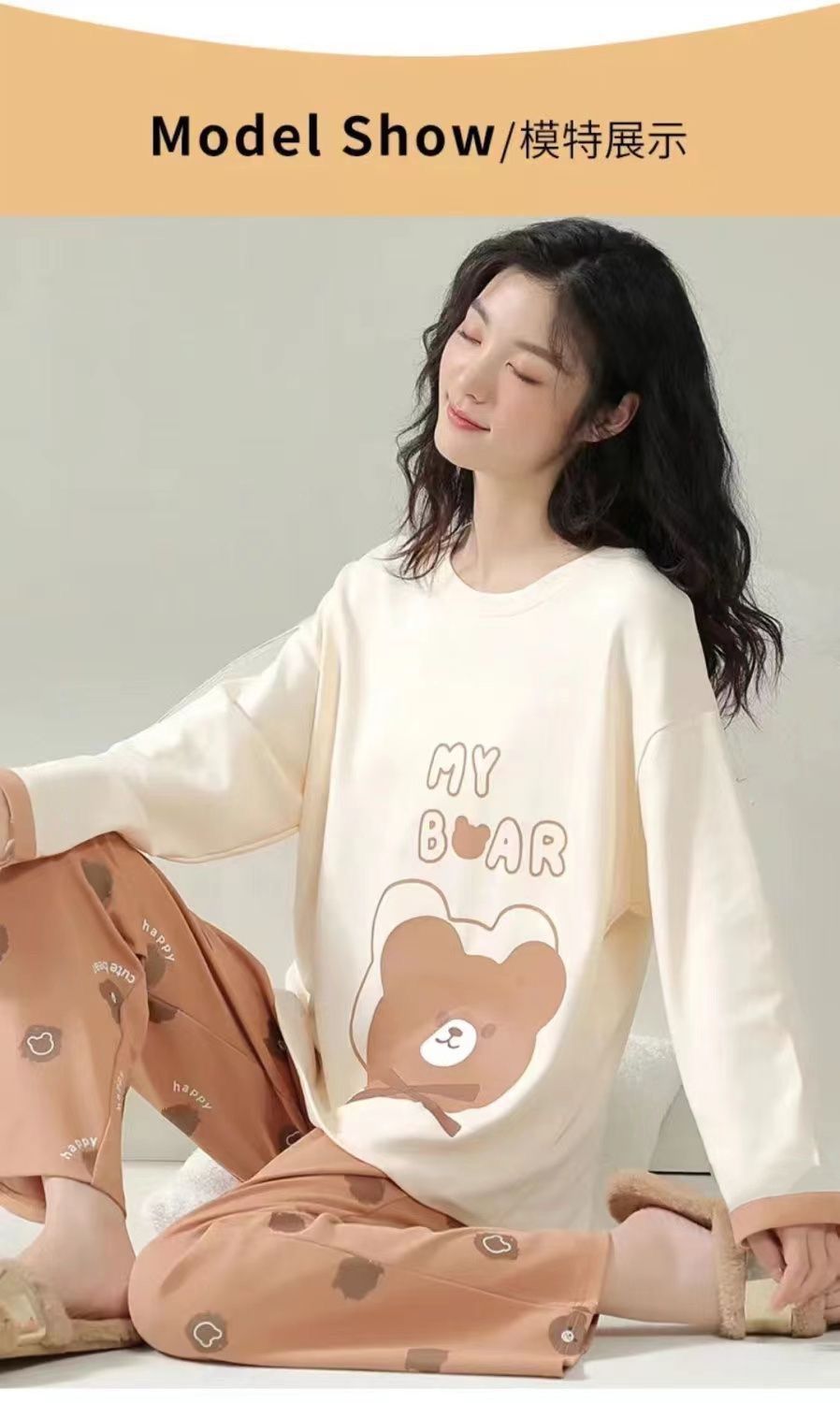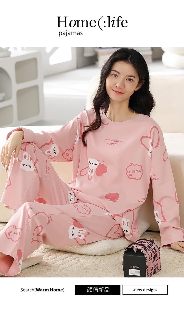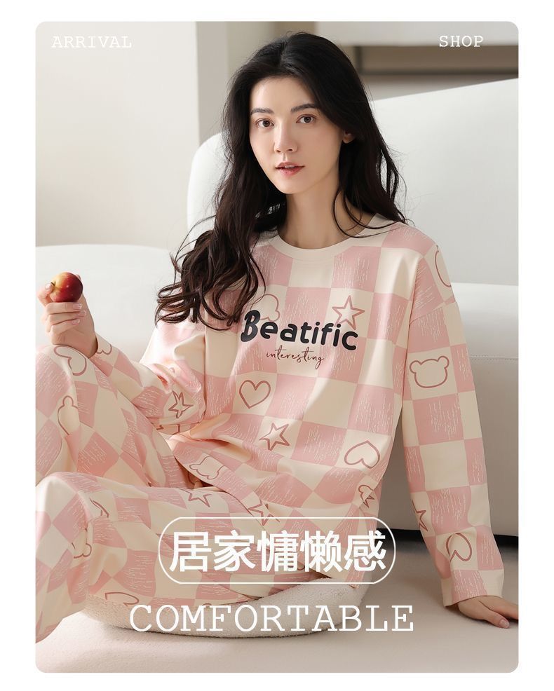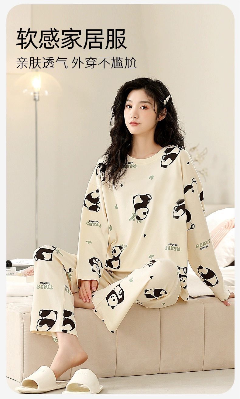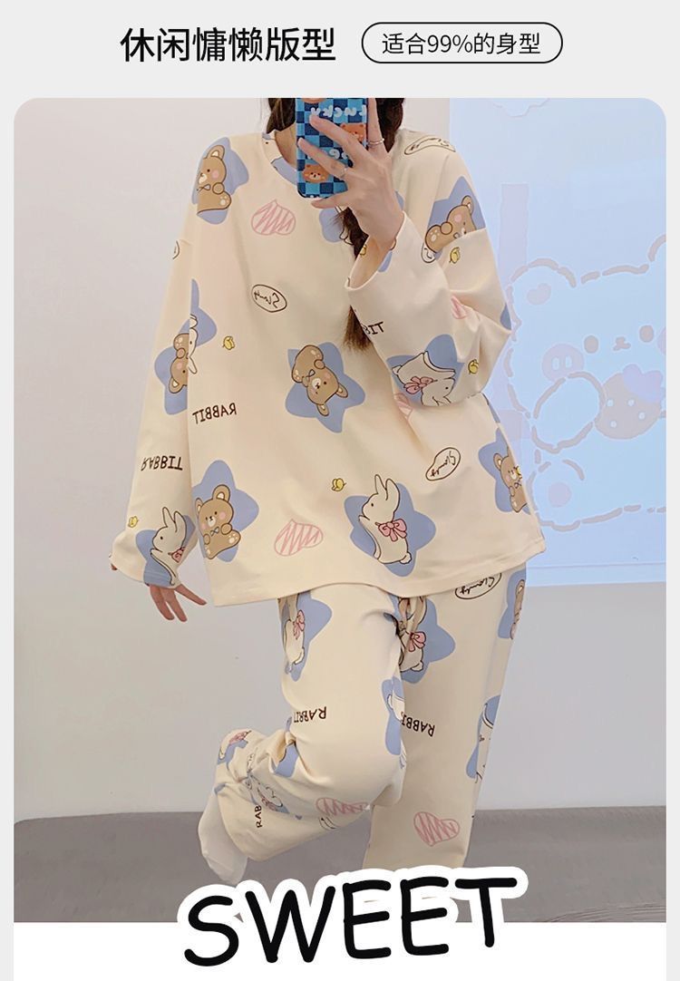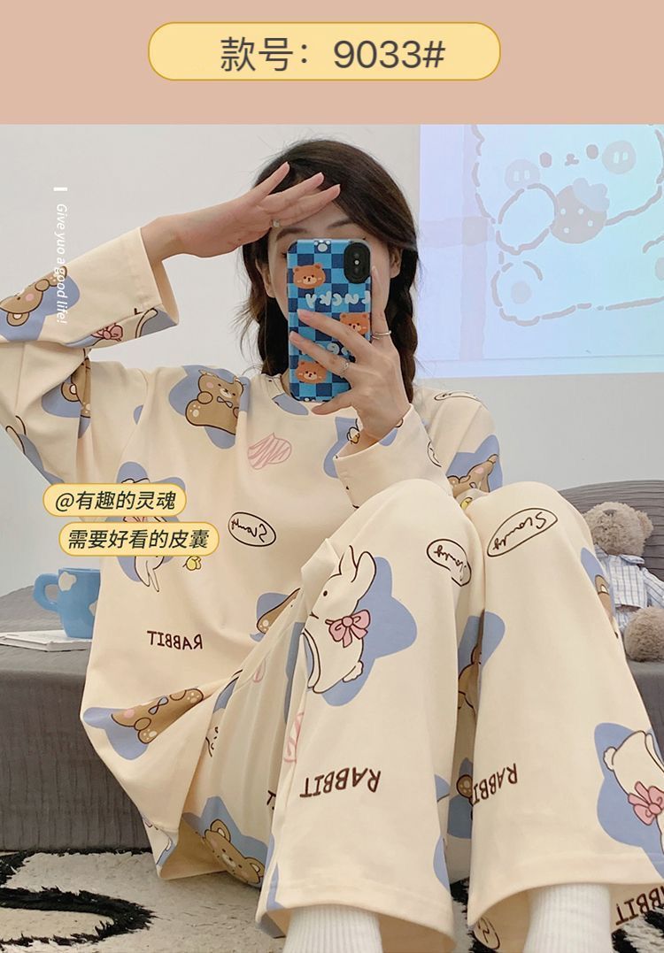 【亲肤透气!外穿不尴尬】居家慵懒感,新款春秋季睡衣套头女睡衣学生宿舍宽松休闲女士家居服套装。ra