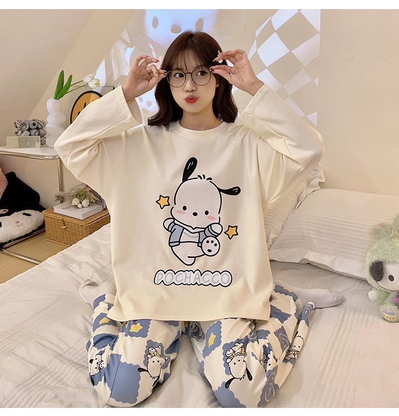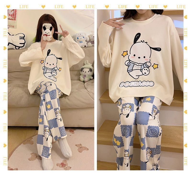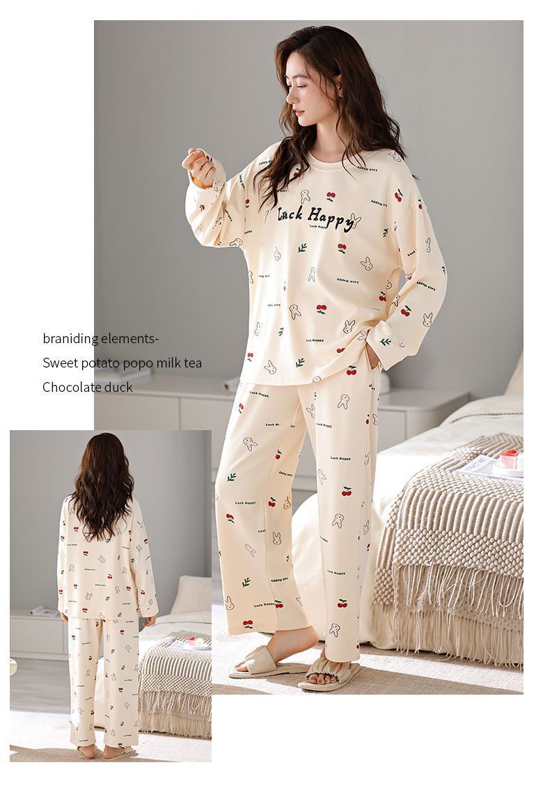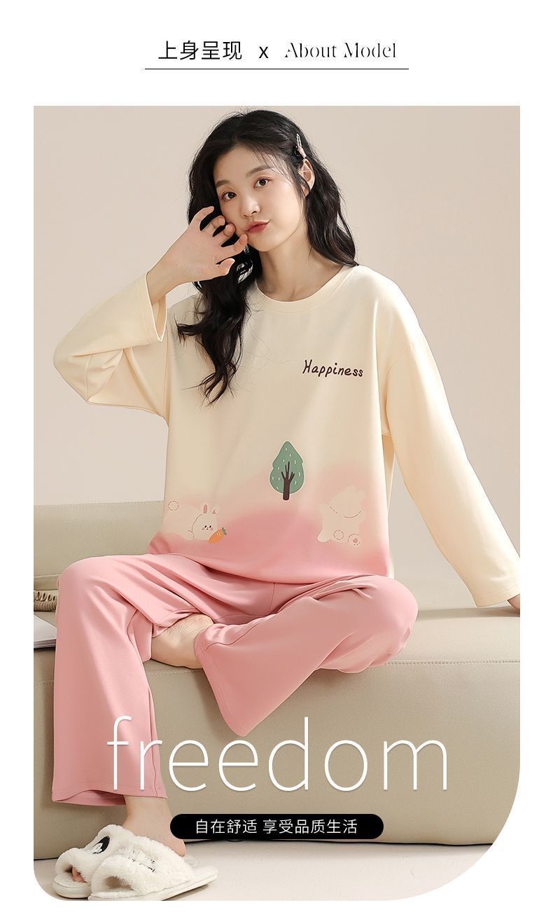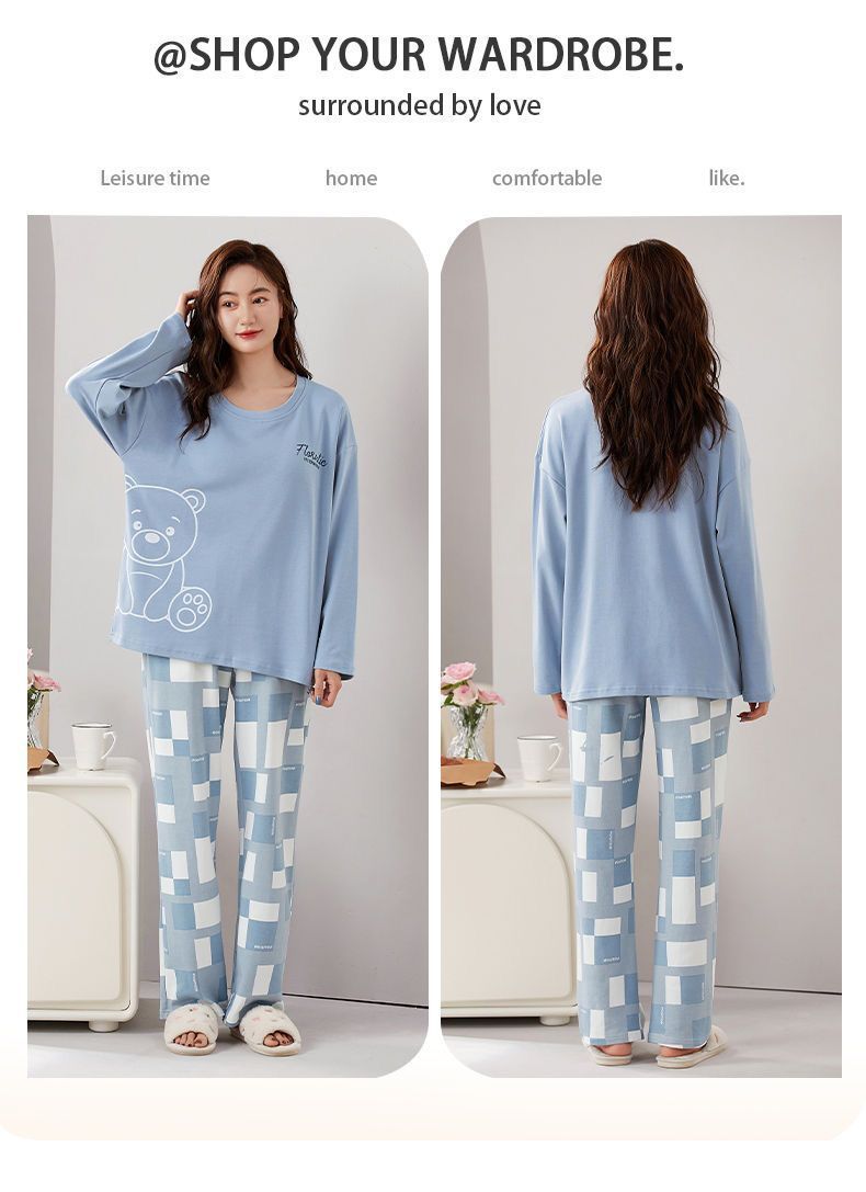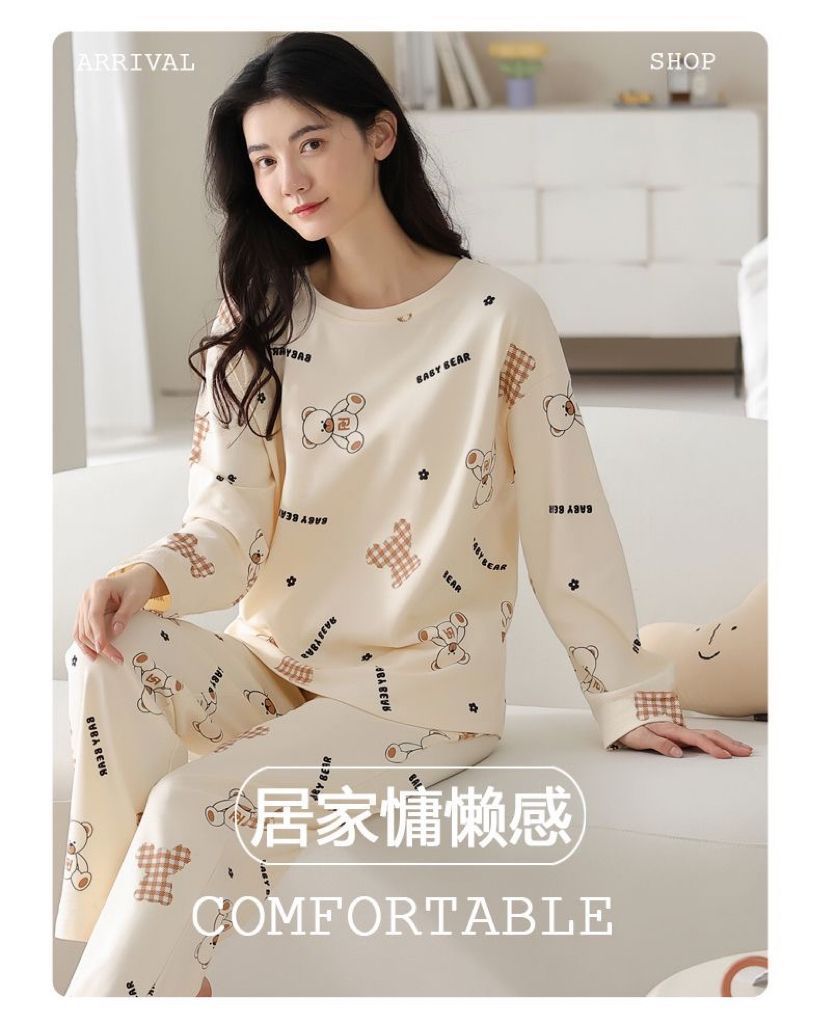 【亲肤透气!外穿不尴尬】居家慵懒感,新款春秋季睡衣套头女睡衣学生宿舍宽松休闲女士家居服套装。ra