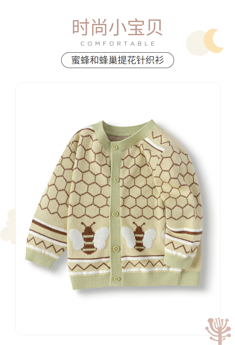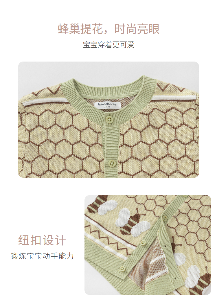 巴拉巴拉宝宝毛衣婴儿针织衫薄开衫男童秋装趣味提花可爱萌趣时尚