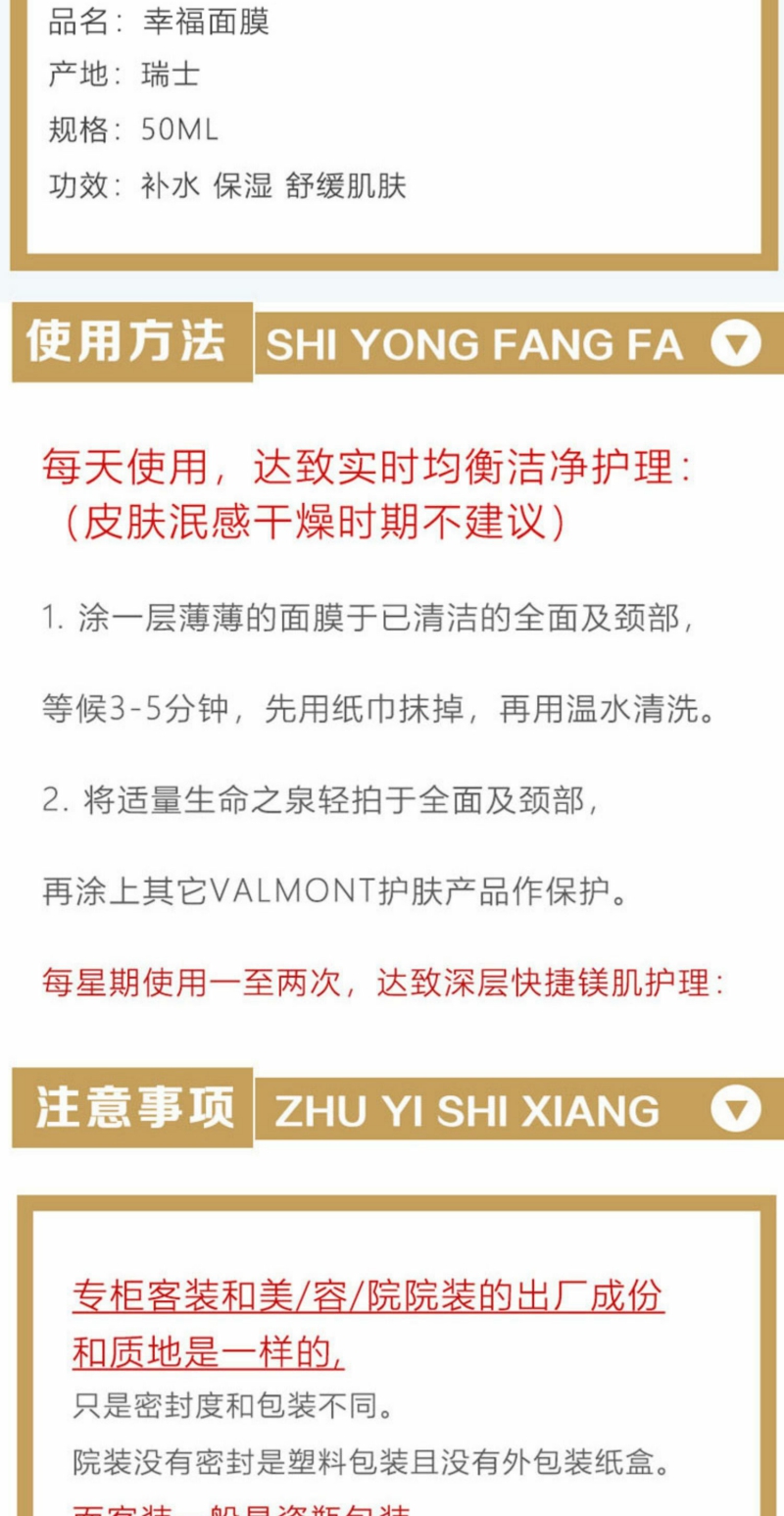 【YZ】Valmont法尔曼幸福面膜50ml生效更新焕肤涂抹面膜50ml法儿曼