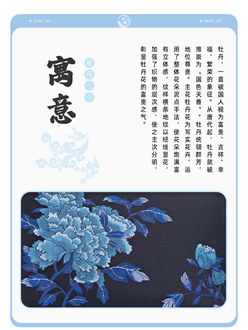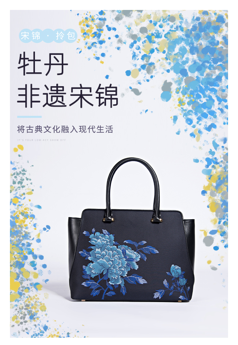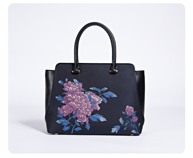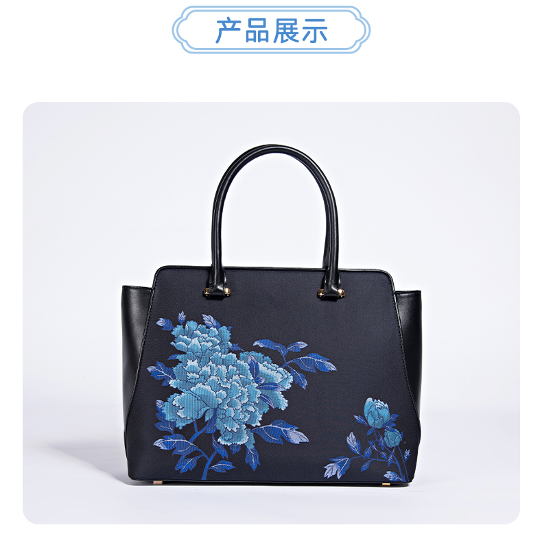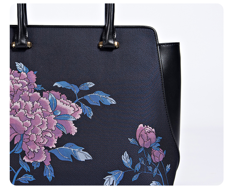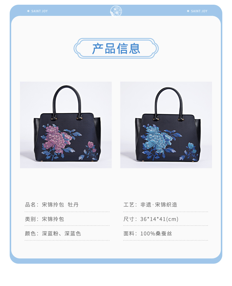 SAINTJOY/上久楷 女士宋锦拎包 深蓝粉牡丹 深蓝色牡丹 BWS17A0901