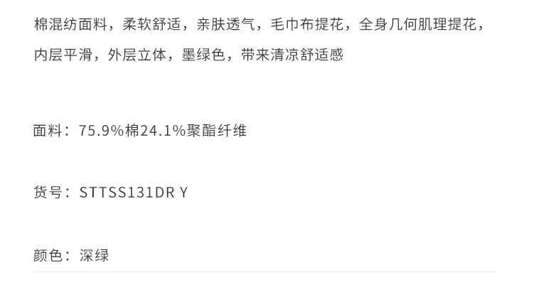 callisto深绿棉混纺短袖T恤 STTSS131Y