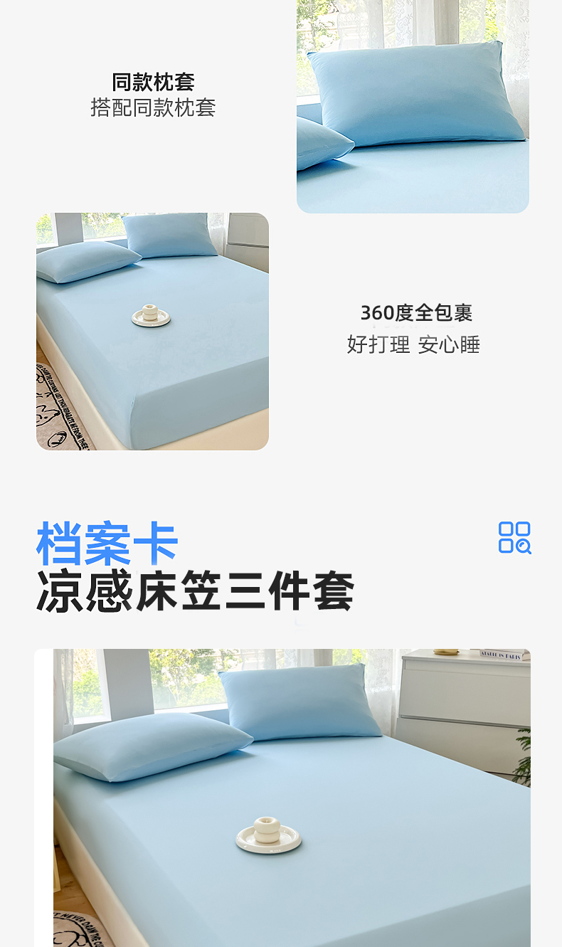 【秒杀福利】多娜凉感床笠三件套 | 凉感面料、柔软透气、可机洗、好打理、简约纯色