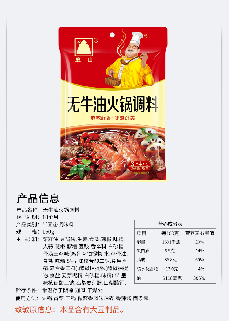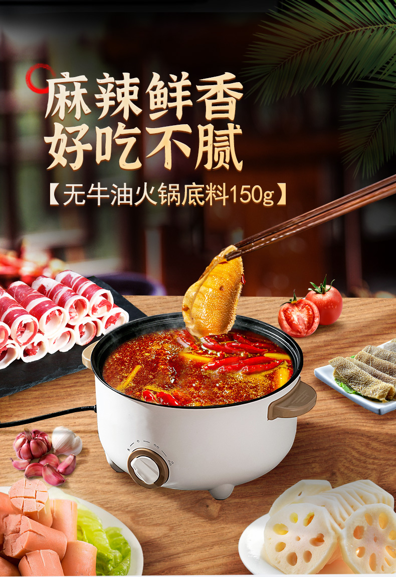 单山无牛油火锅底料 150g*3袋家用小包装 四川重庆特产麻辣烫串串香