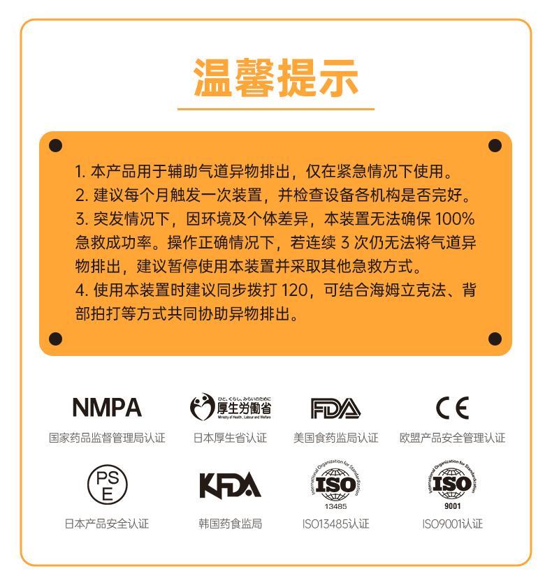 Sonmol朔茂防噎仪防窒息急救自救海姆立克神器家庭装自动便携式