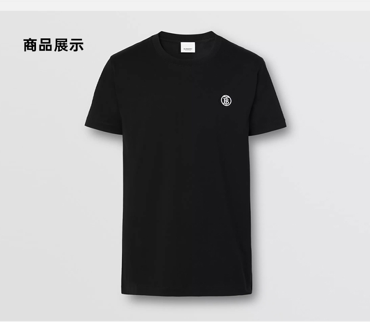BURBERRY 巴宝莉 男士棉质TB专属标识刺绣圆领短袖T恤 黑色 8052965 A1189