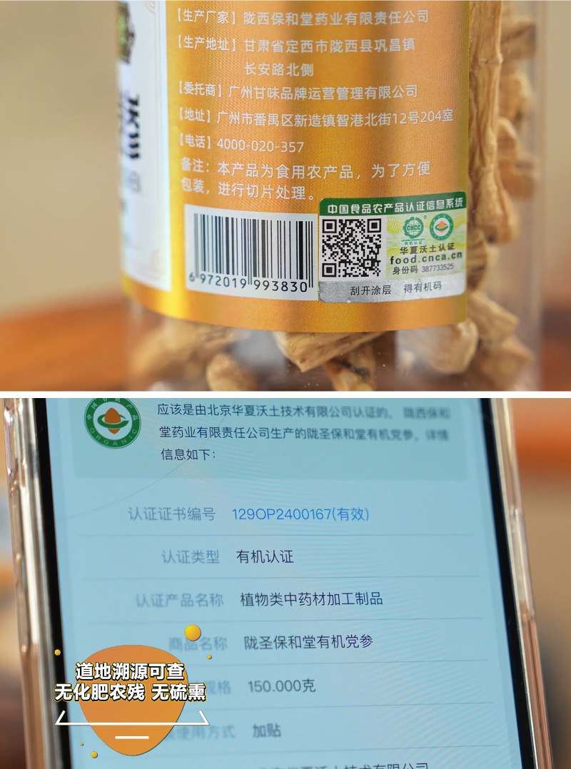 我们的有机党参从种植到采收,再到加工,都有资质认证,绝无熏硫❗