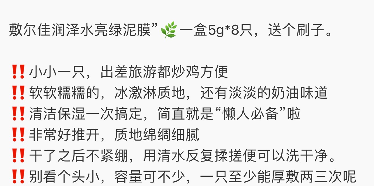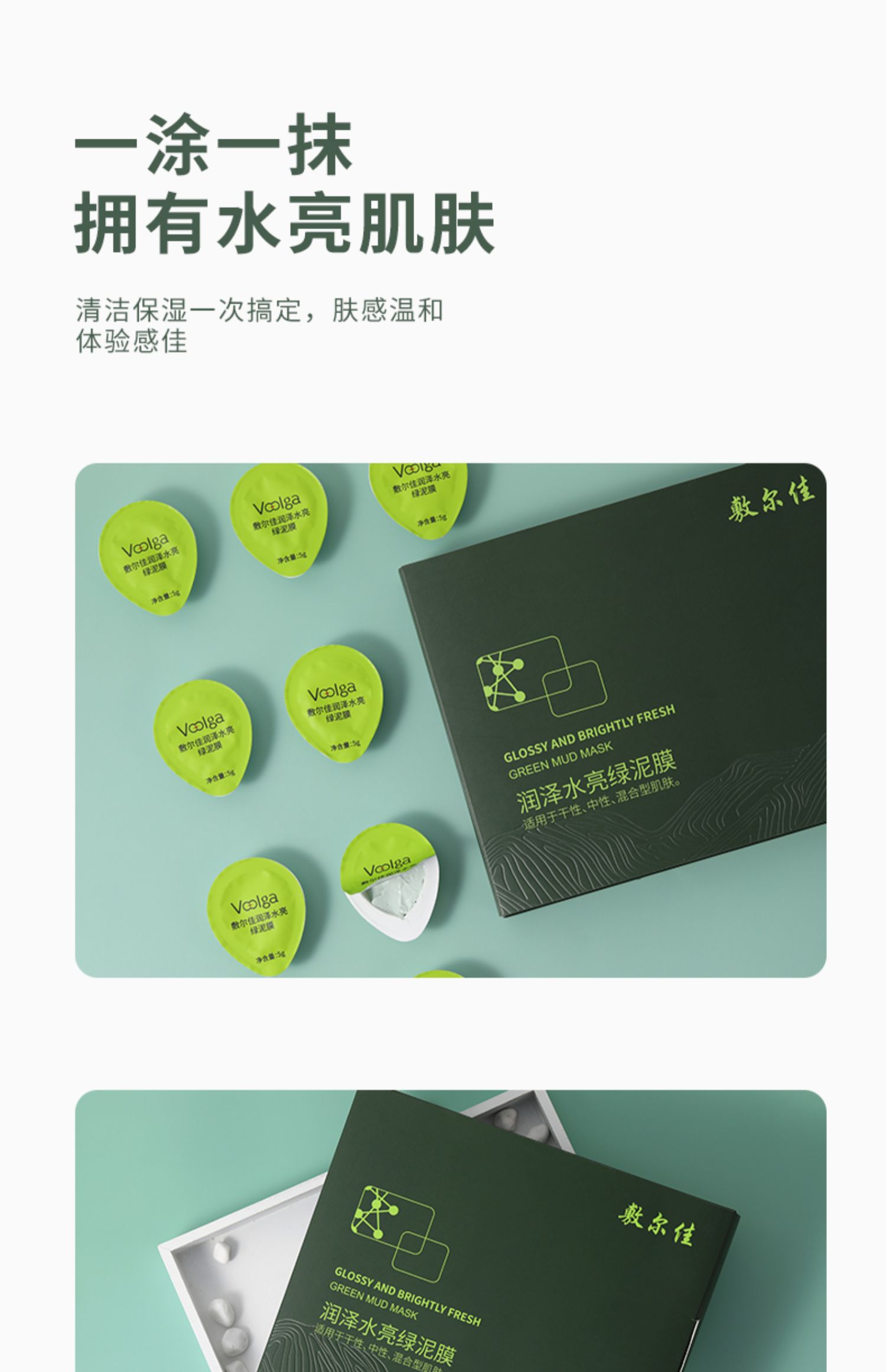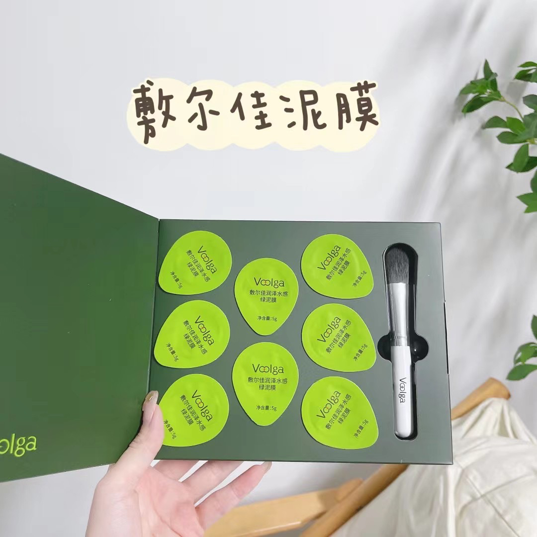 敷尔佳润泽水亮绿泥膜 去黑头收缩毛孔涂抹式补水清洁面膜 5g×8颗