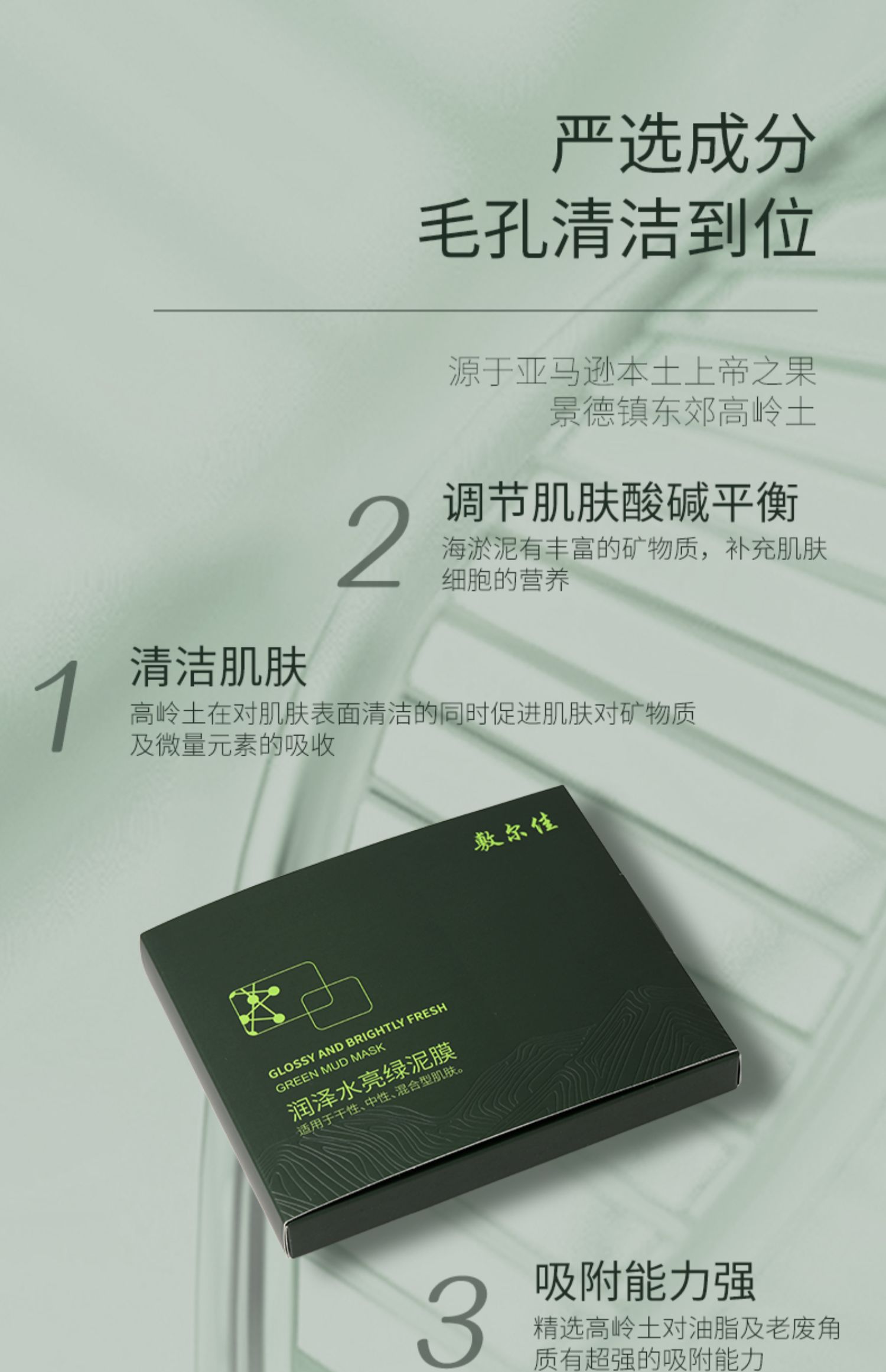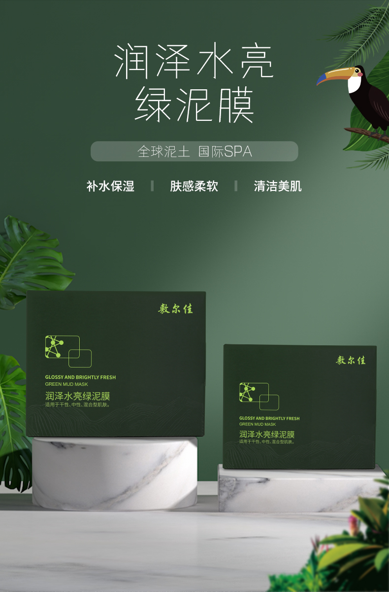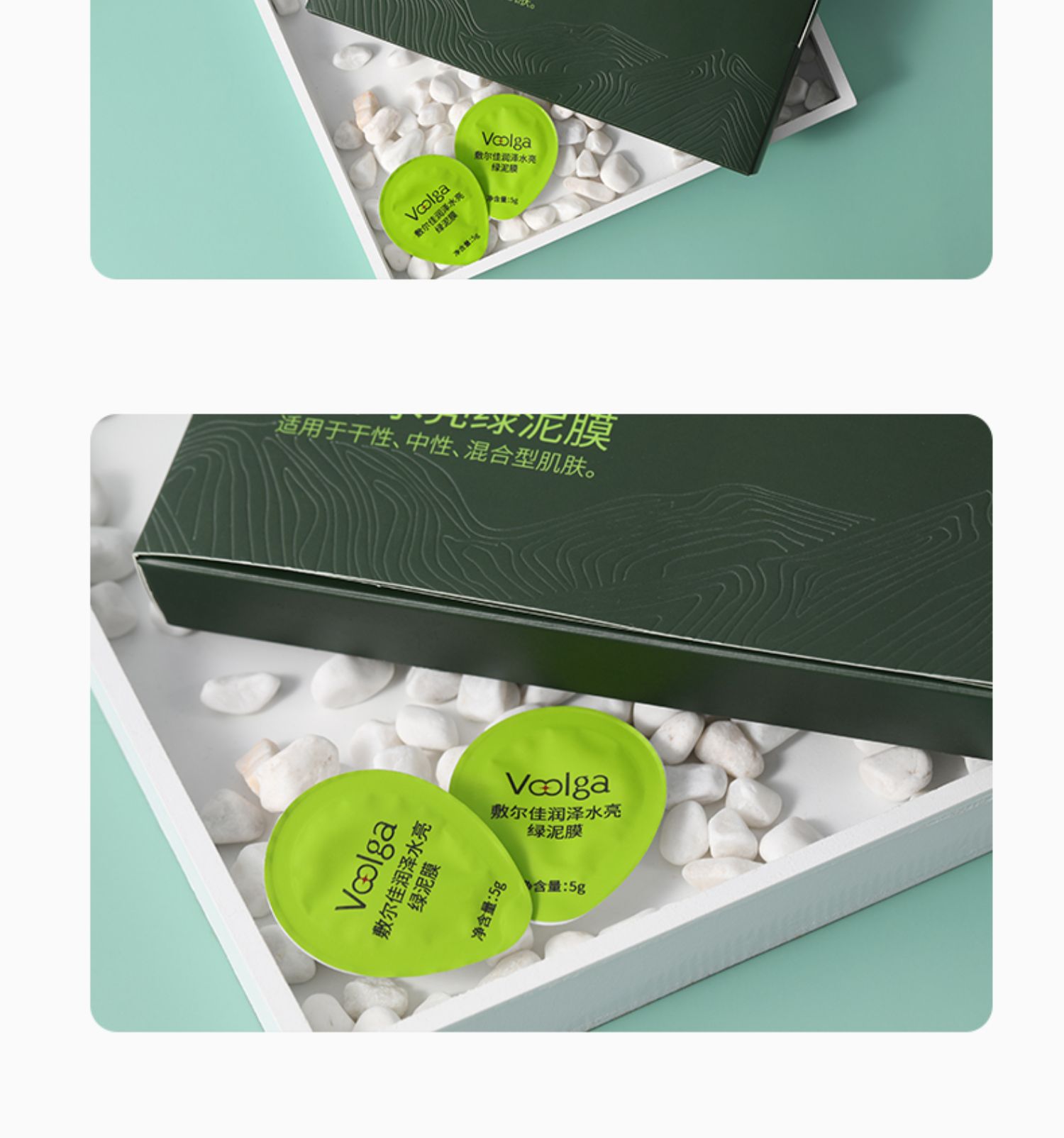 敷尔佳润泽水亮绿泥膜 去黑头收缩毛孔涂抹式补水清洁面膜 5g×8颗