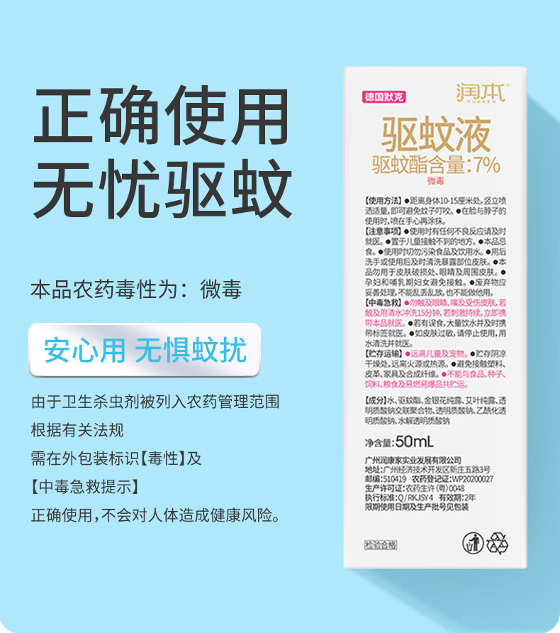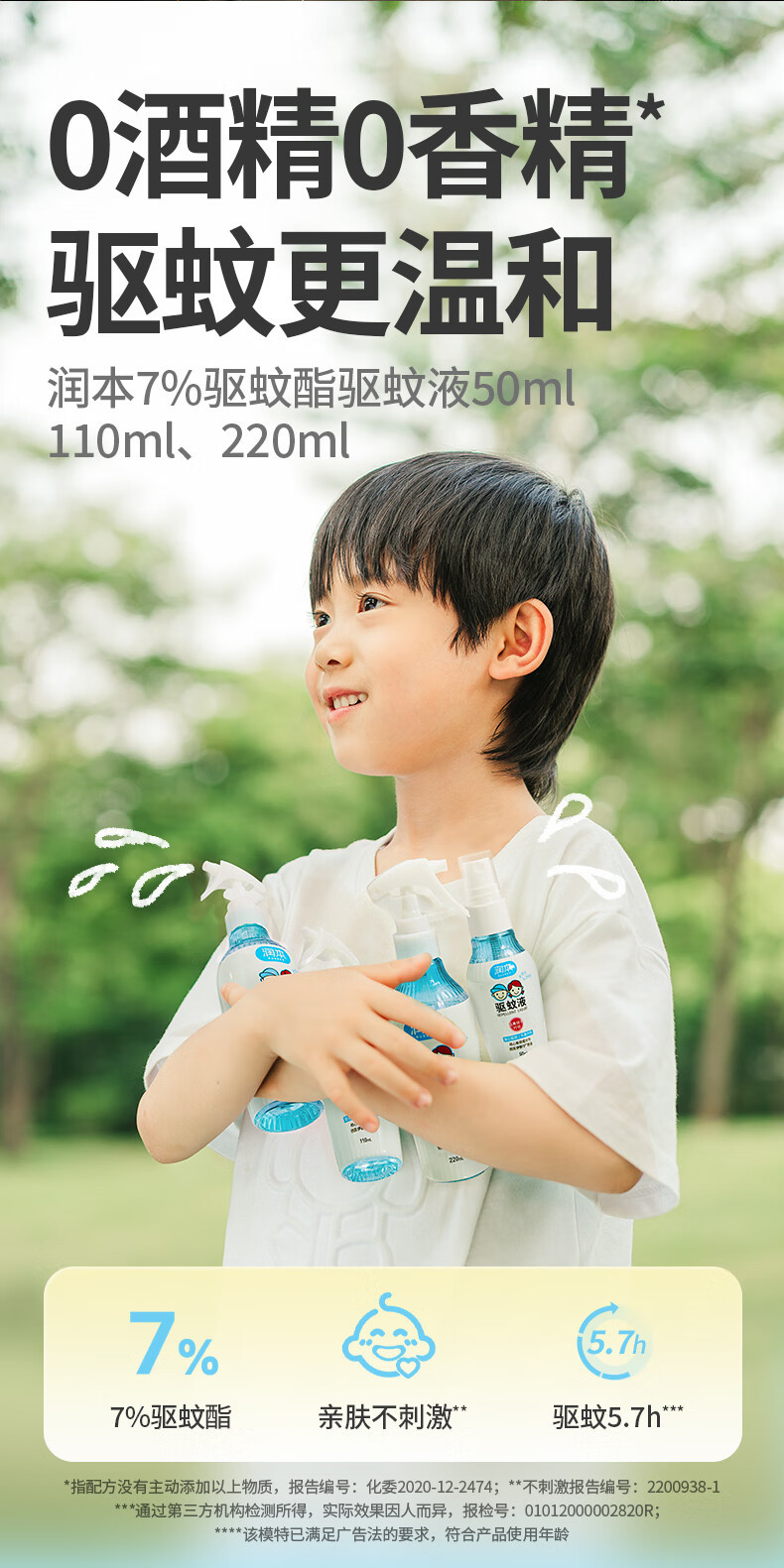 润本驱蚊液驱蚊水防蚊喷雾防蚊液蚊虫叮咬7%驱蚊酯温和户外专享