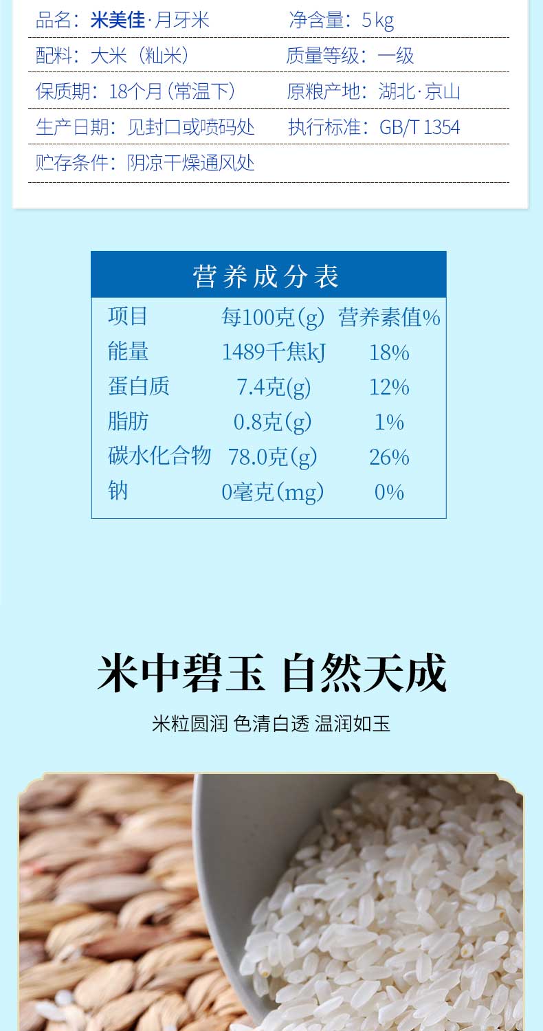 【严选】合鑫泰 湖北京山米美佳月牙米米粒纤长米香四溢松软可口 米美佳月牙米5kg (厂家直发)