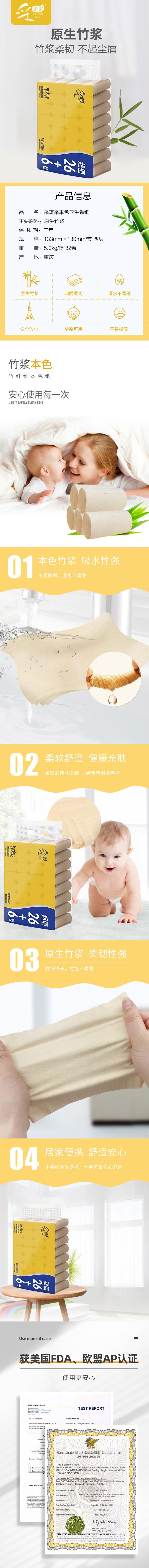 采琪采本色32卷卫生卷纸5kg 【原生竹浆】