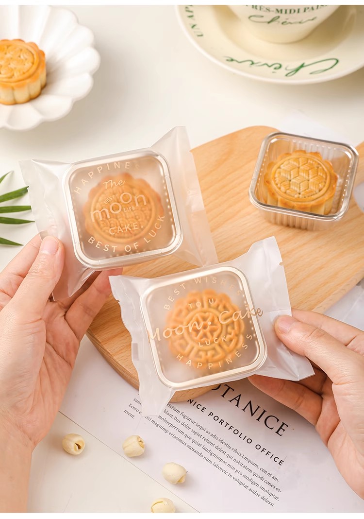 小号包装袋,建议搭配本店6.5cm的内托使用,可装50g的月饼