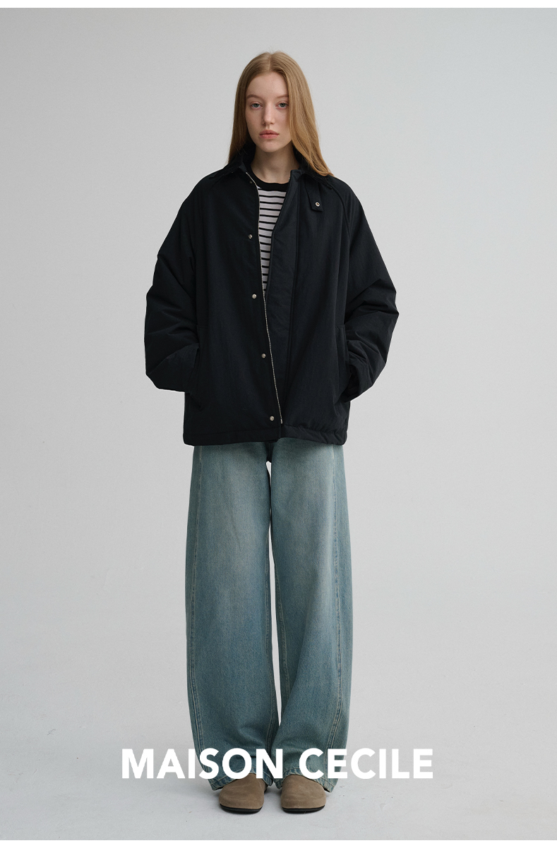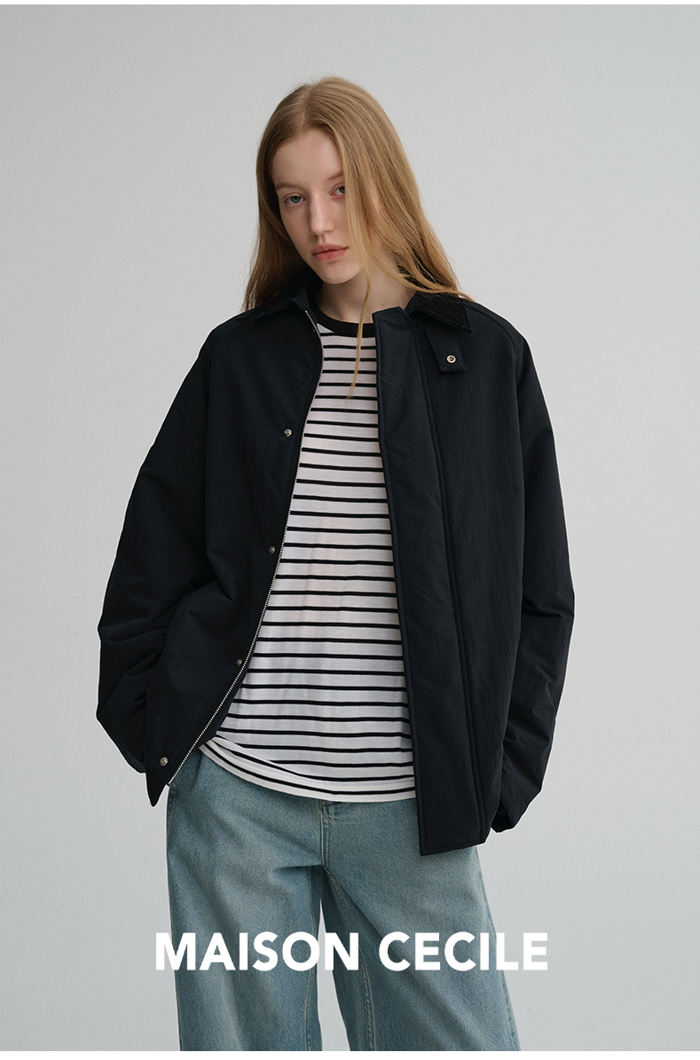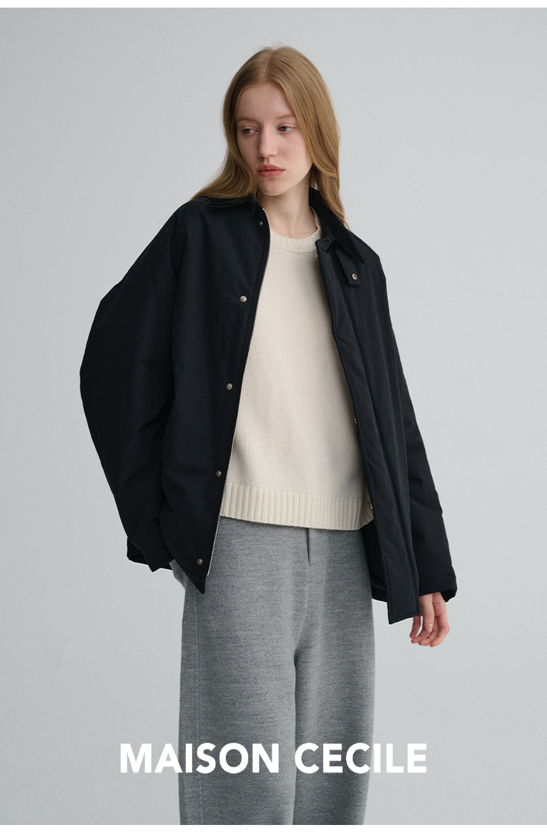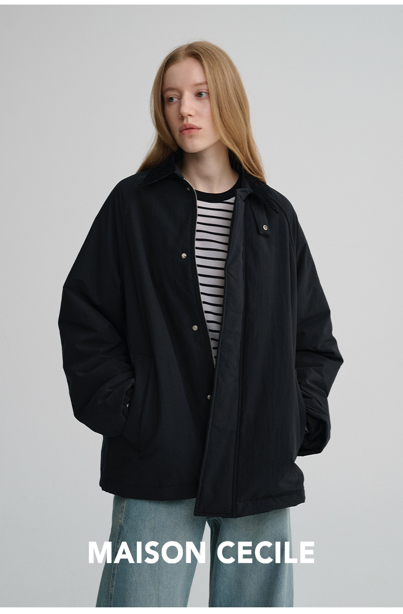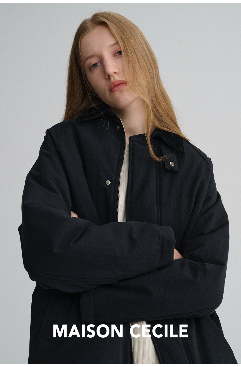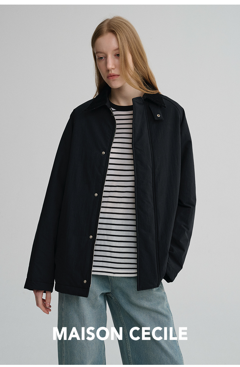 MAISON CECILE三色|百搭灯芯绒领廓形工装感可立领棉服夹克外套