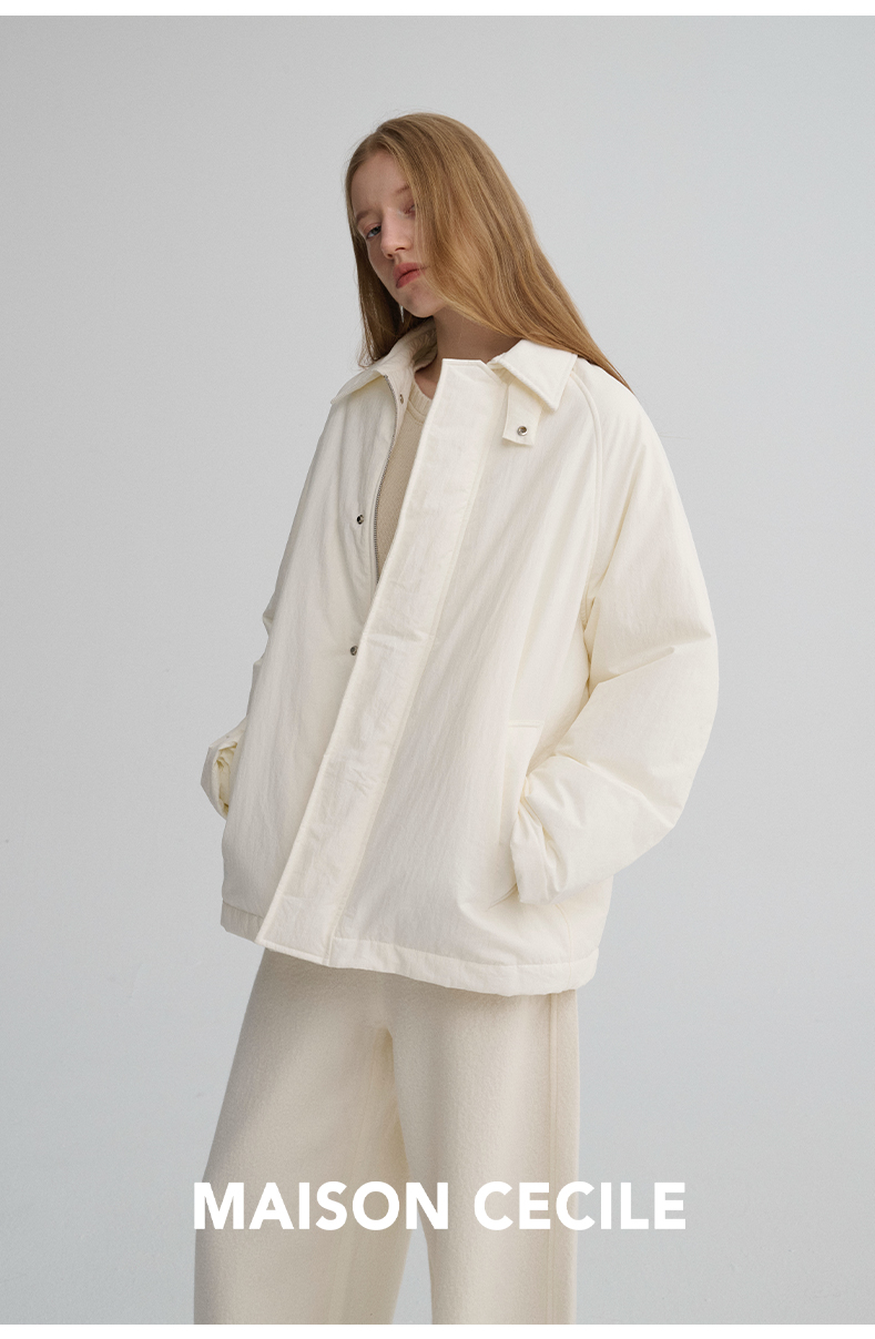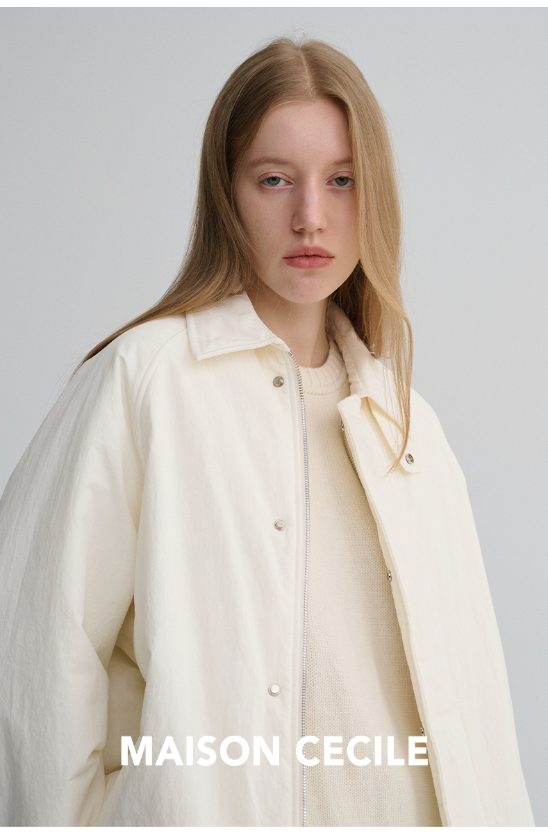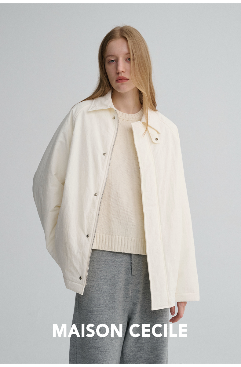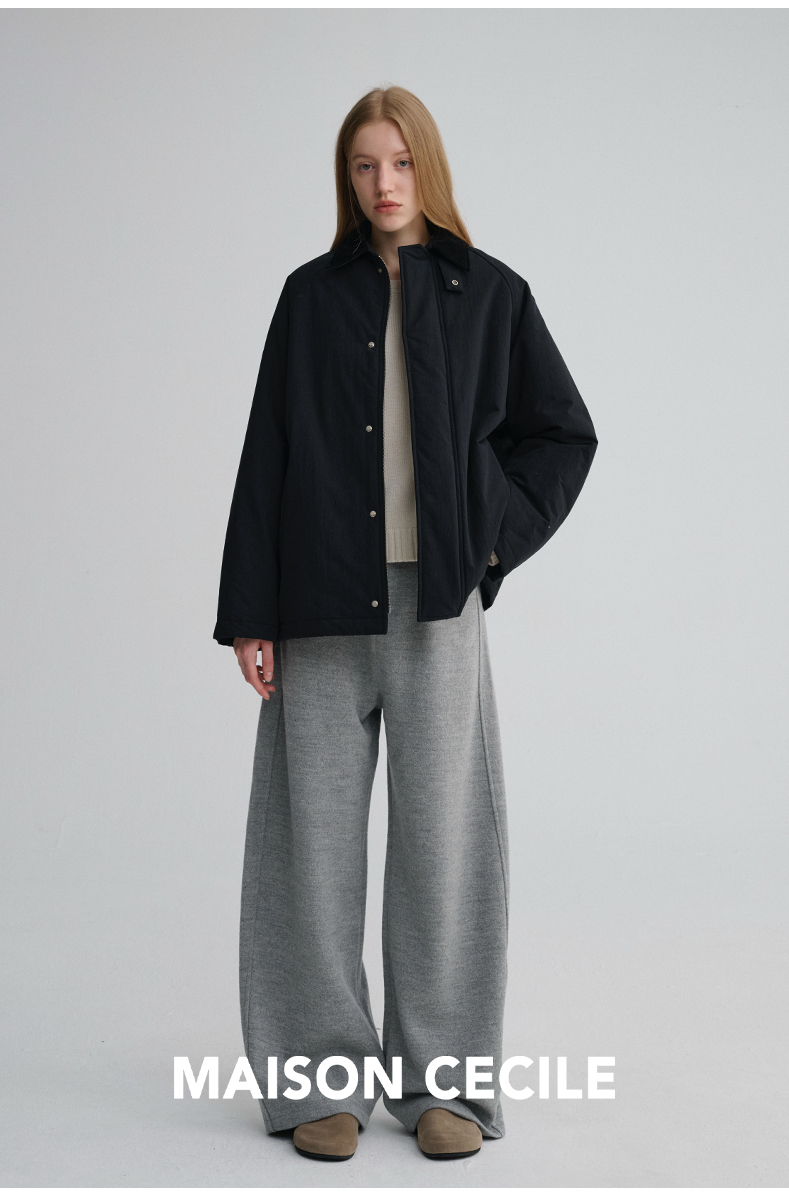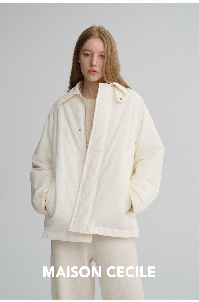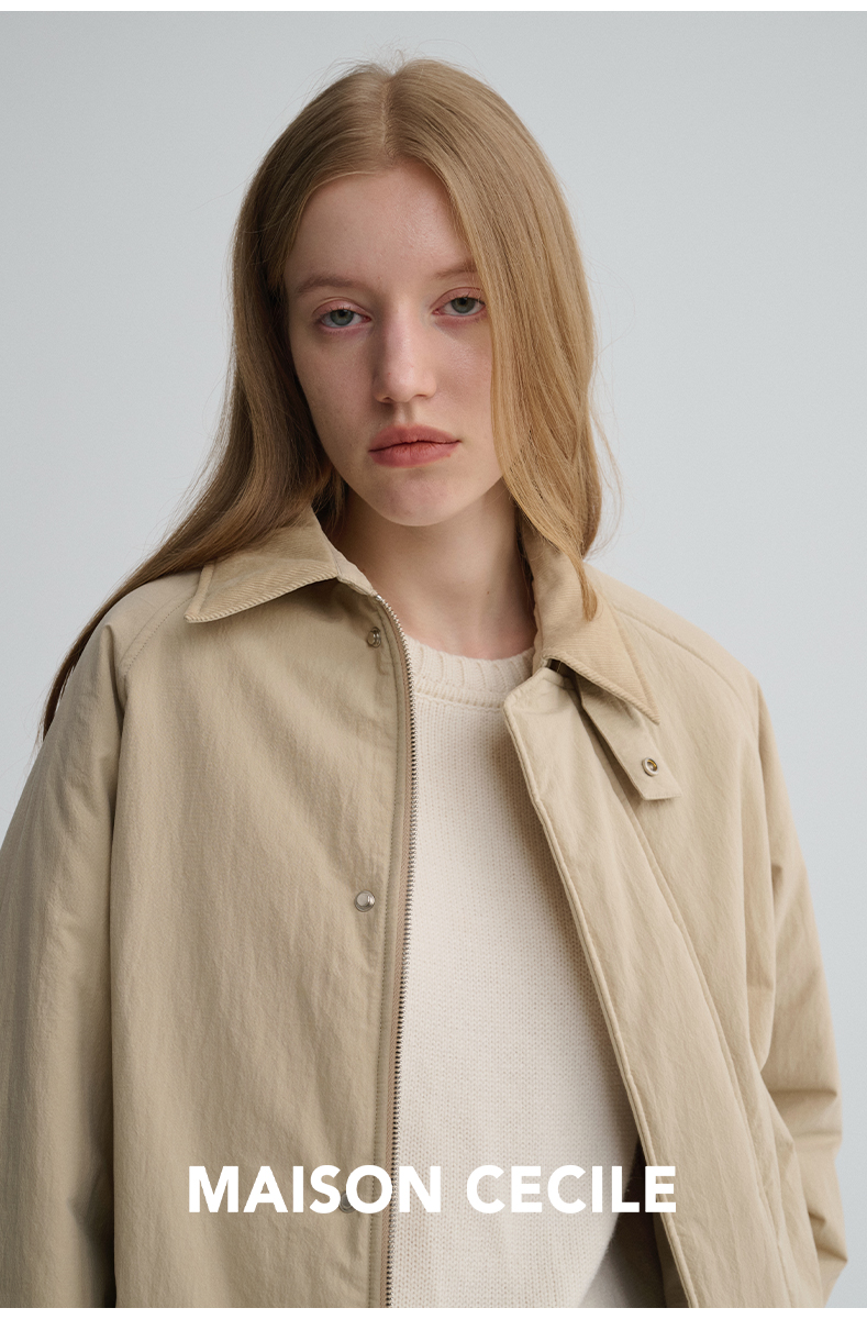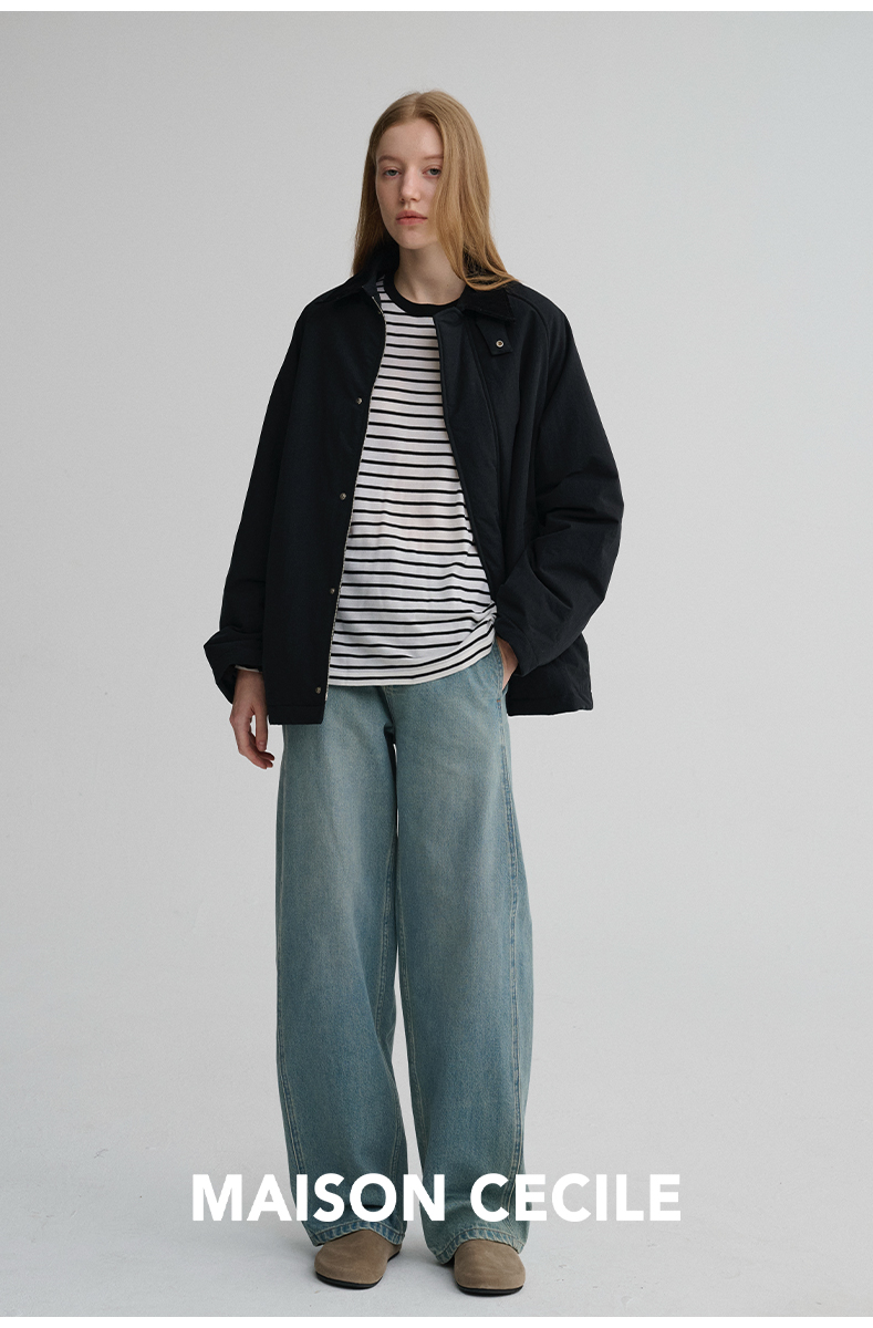 MAISON CECILE三色|百搭灯芯绒领廓形工装感可立领棉服夹克外套
