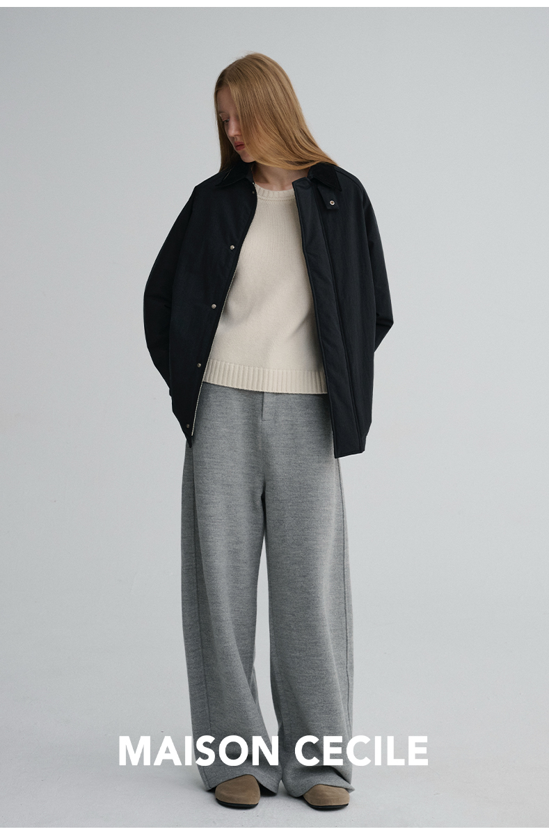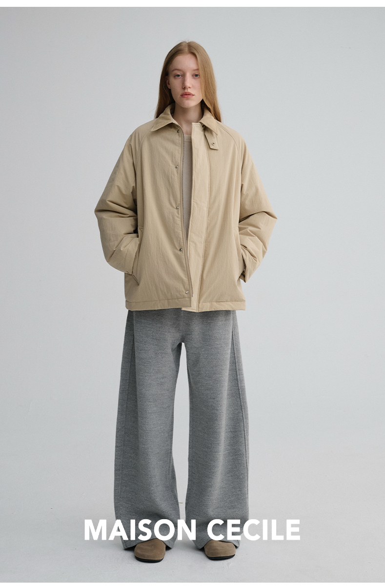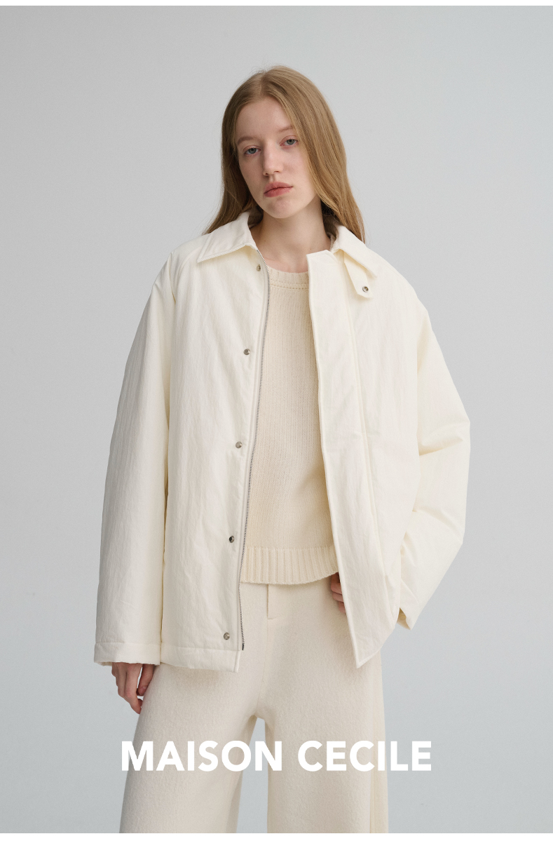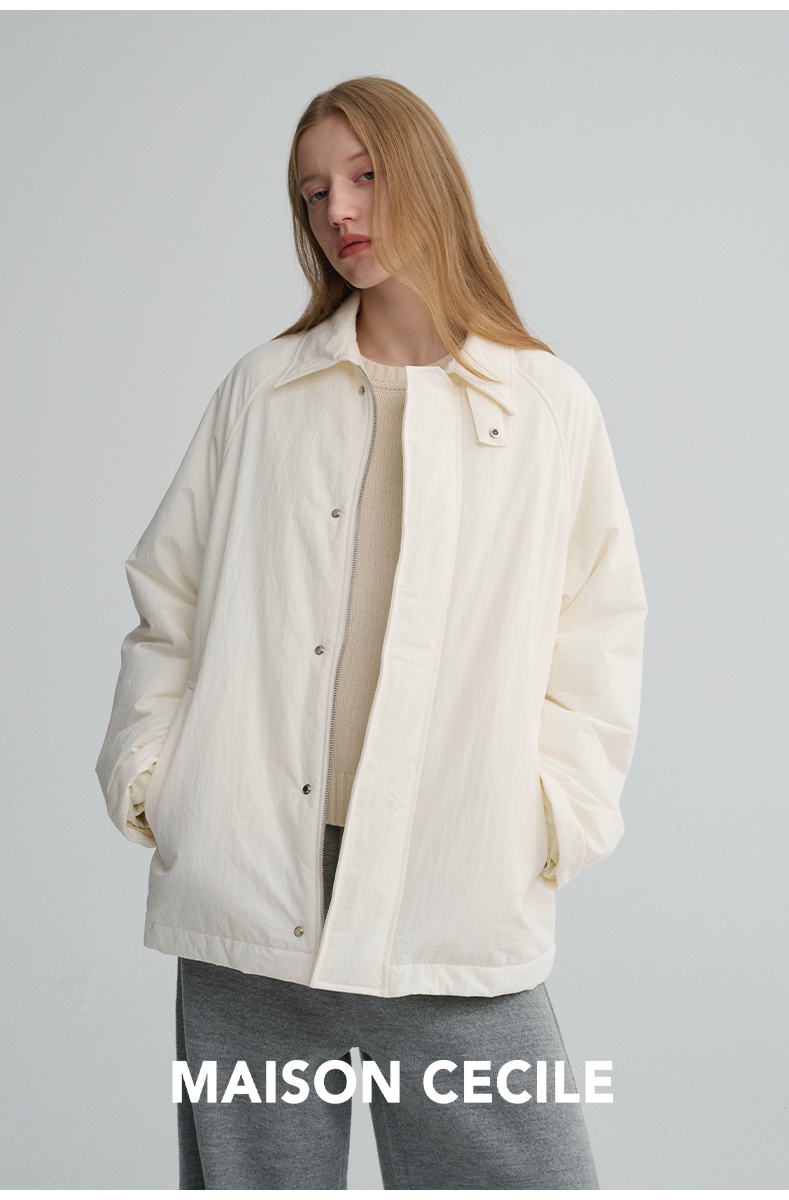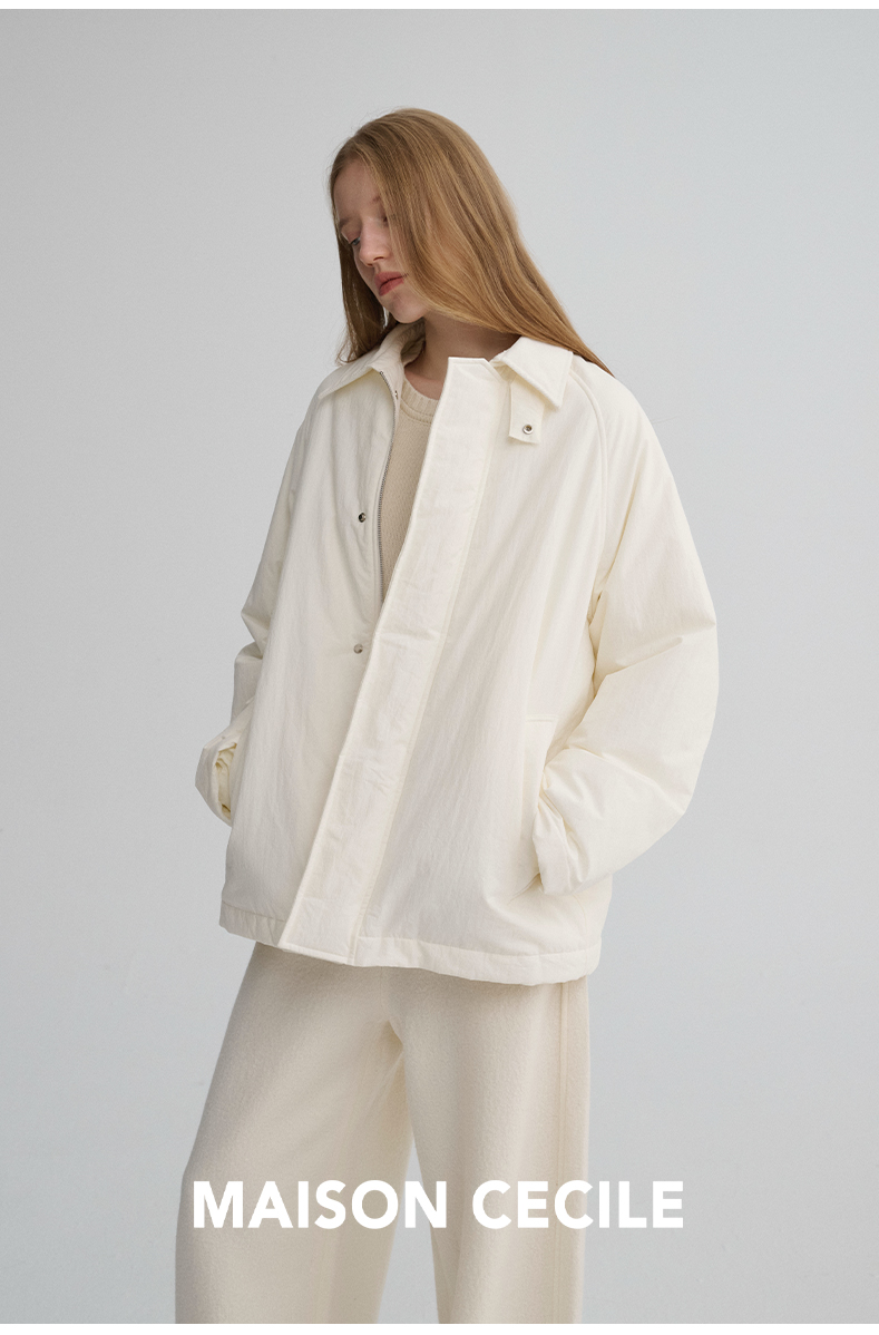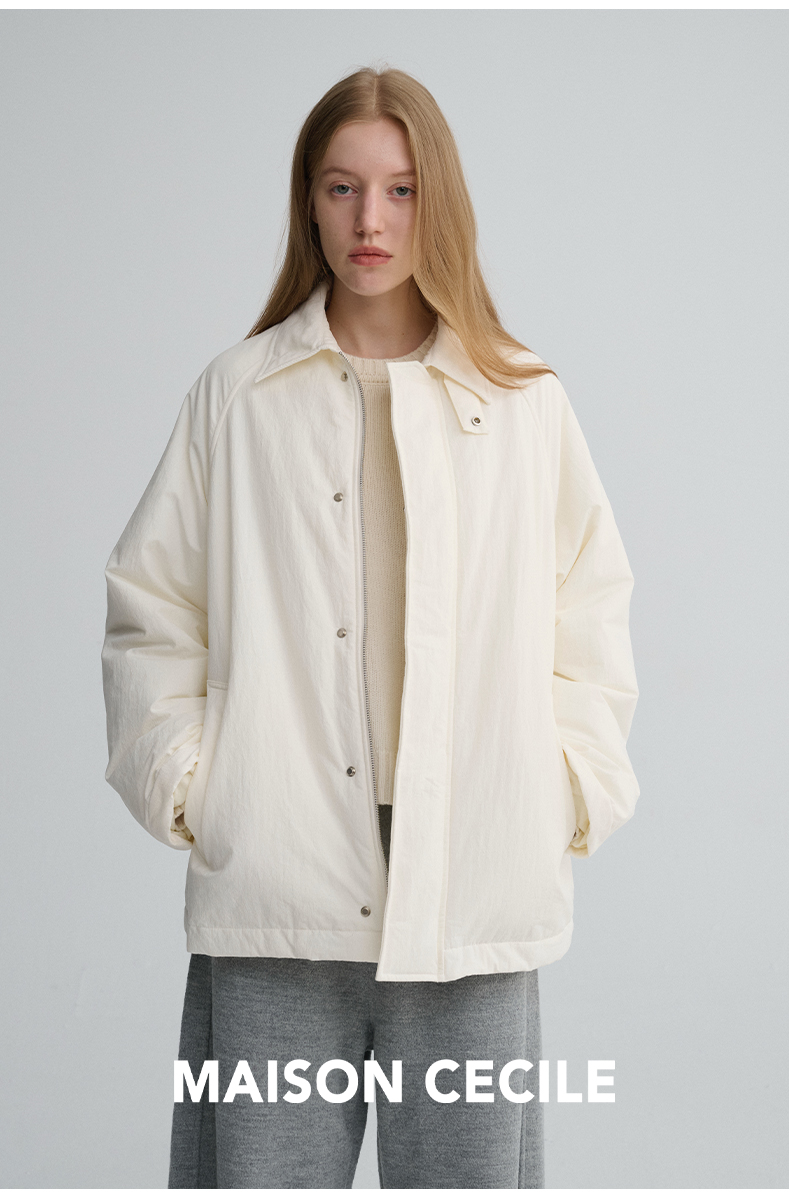 MAISON CECILE三色|百搭灯芯绒领廓形工装感可立领棉服夹克外套