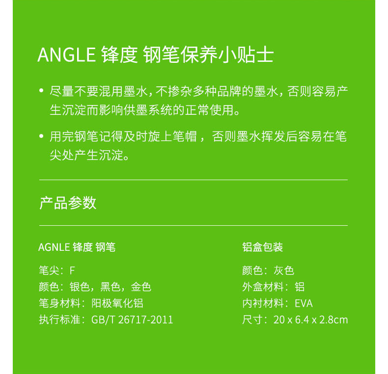 文采ANGLE锋度钢笔/配K2旋转式吸墨器/上墨器/K1012-F1859/银色拉丝/沙铬