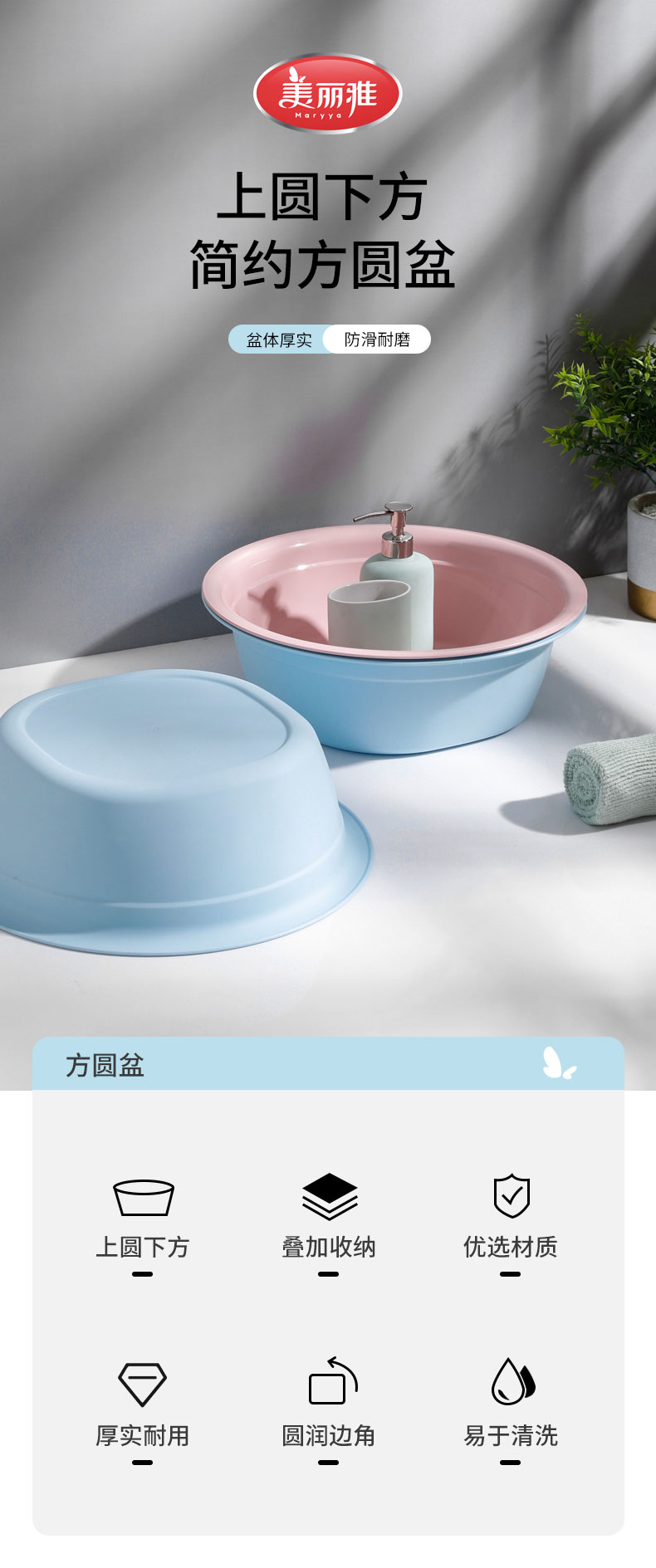 【批发】美丽雅时尚方圆盆厚款抗摔加大号38CM 1个