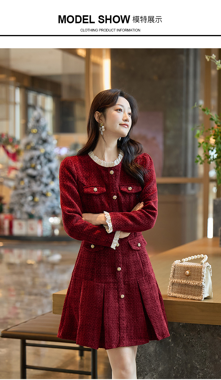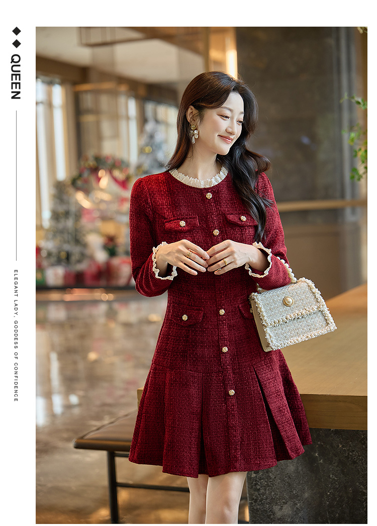 奢姿大码女装2025冬季时尚撞色圆领连衣裙胖妹妹气质显瘦通勤长裙9954854019