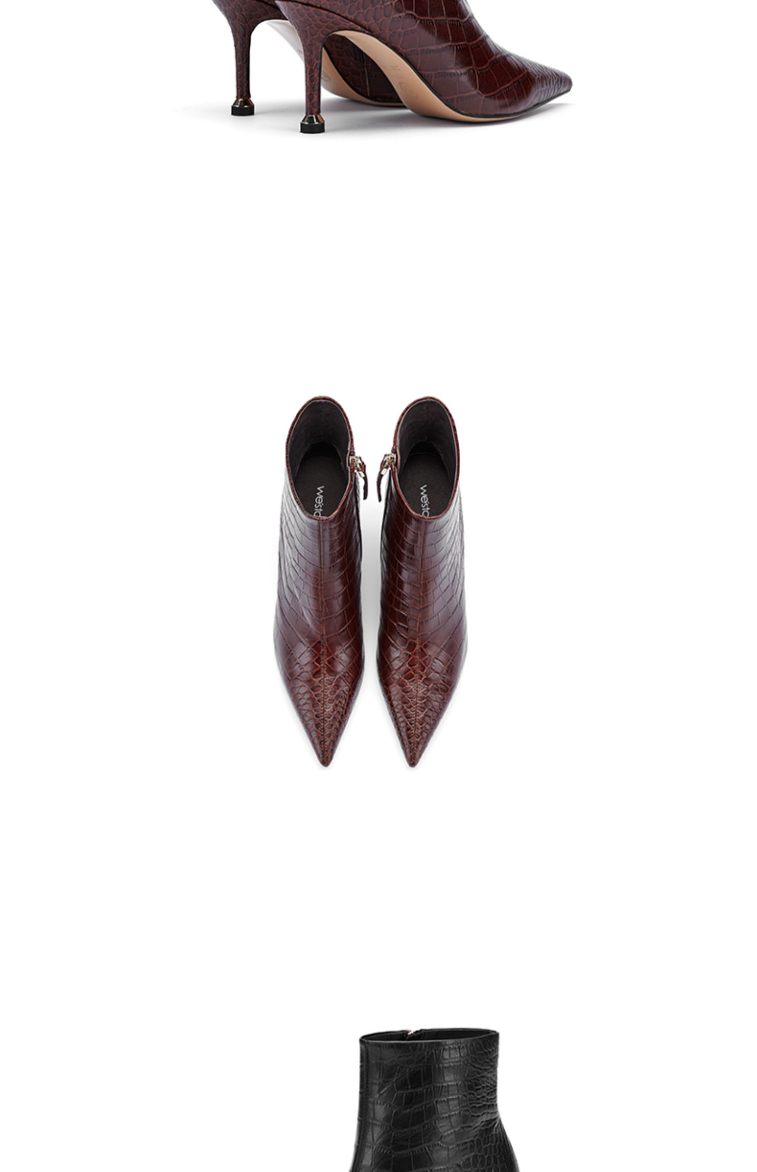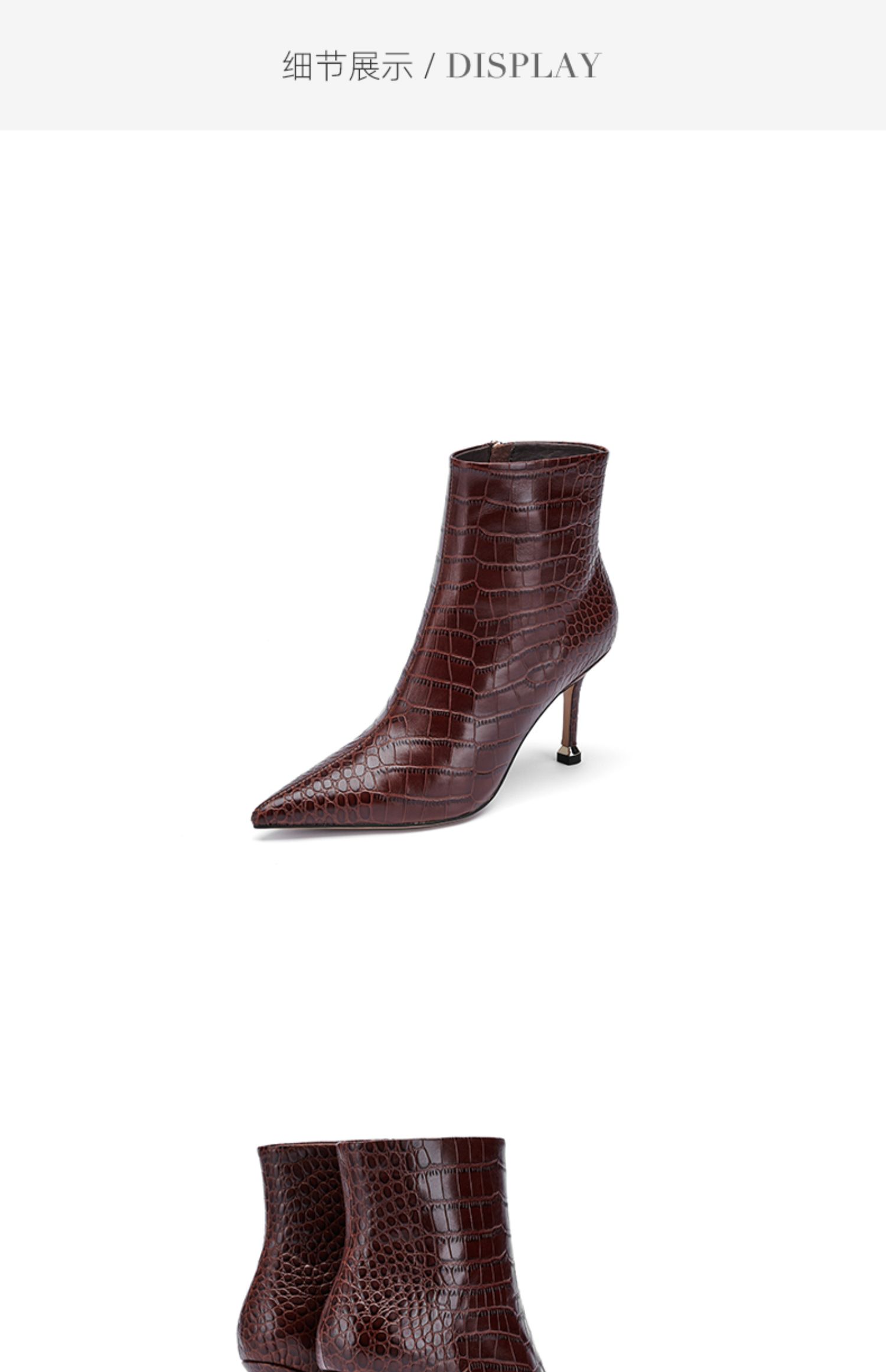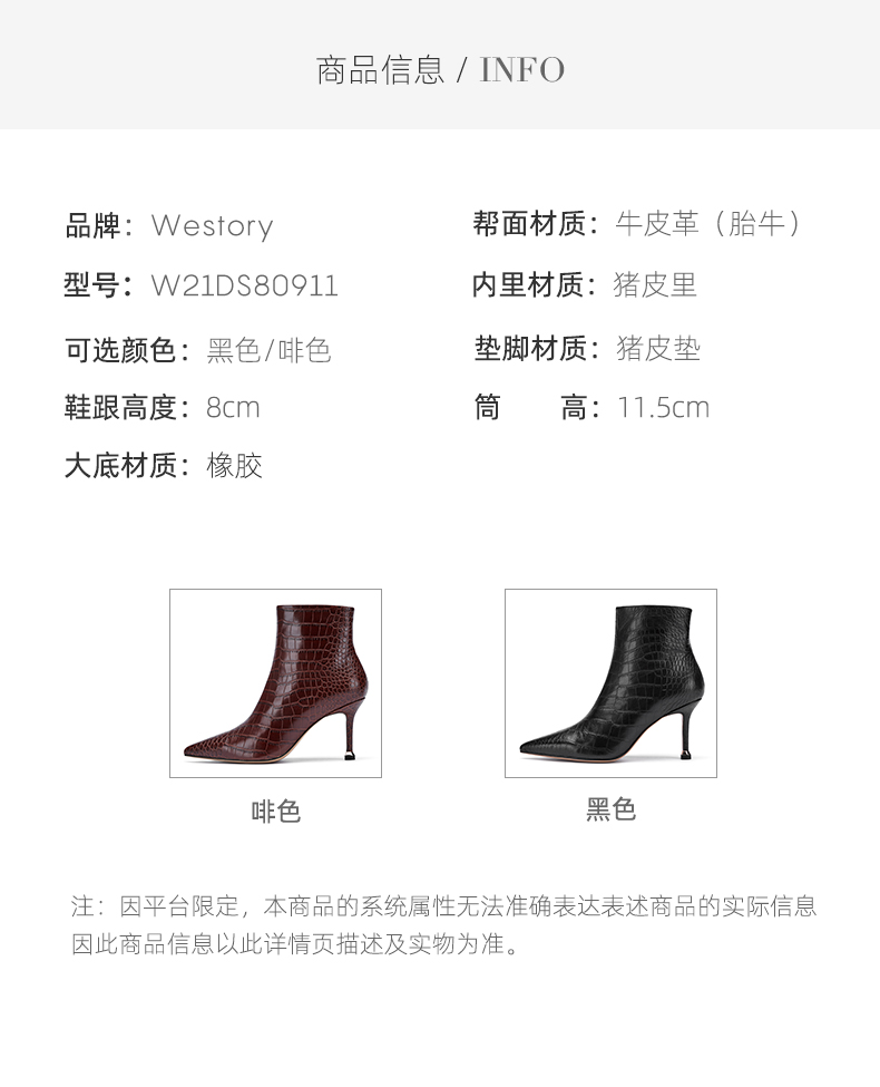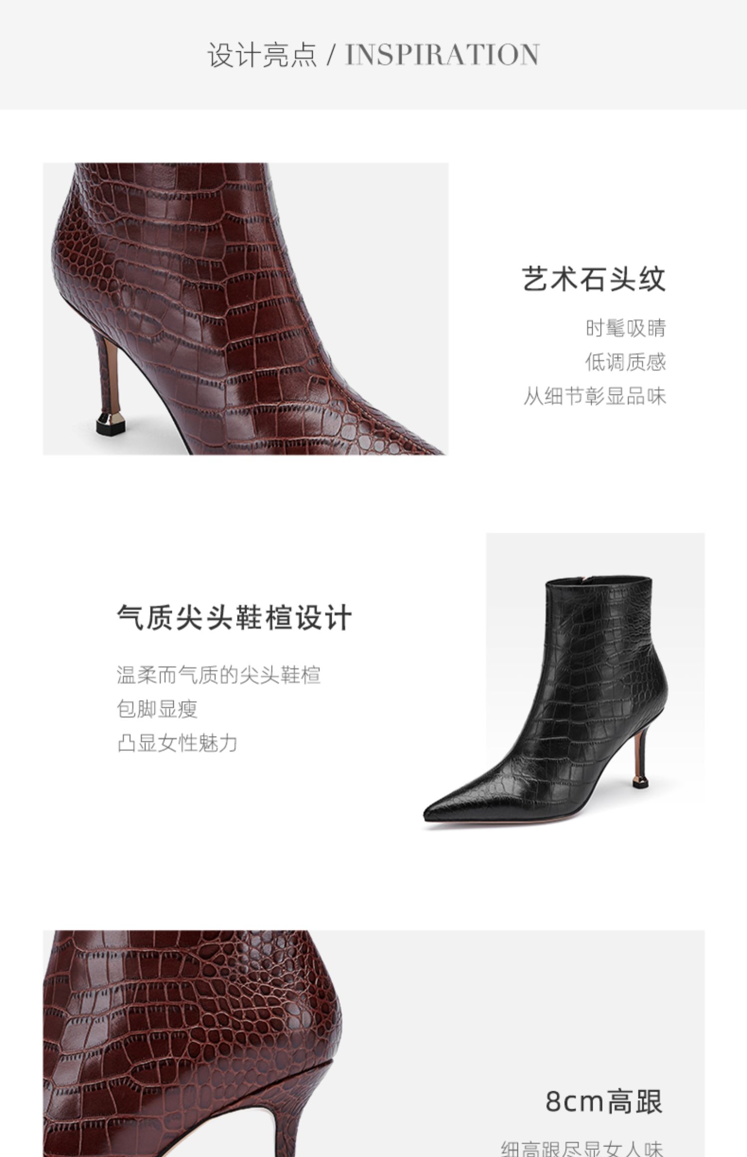 westory2021年秋季短靴女新款尖头高跟石头纹复古靴子W21DS80911