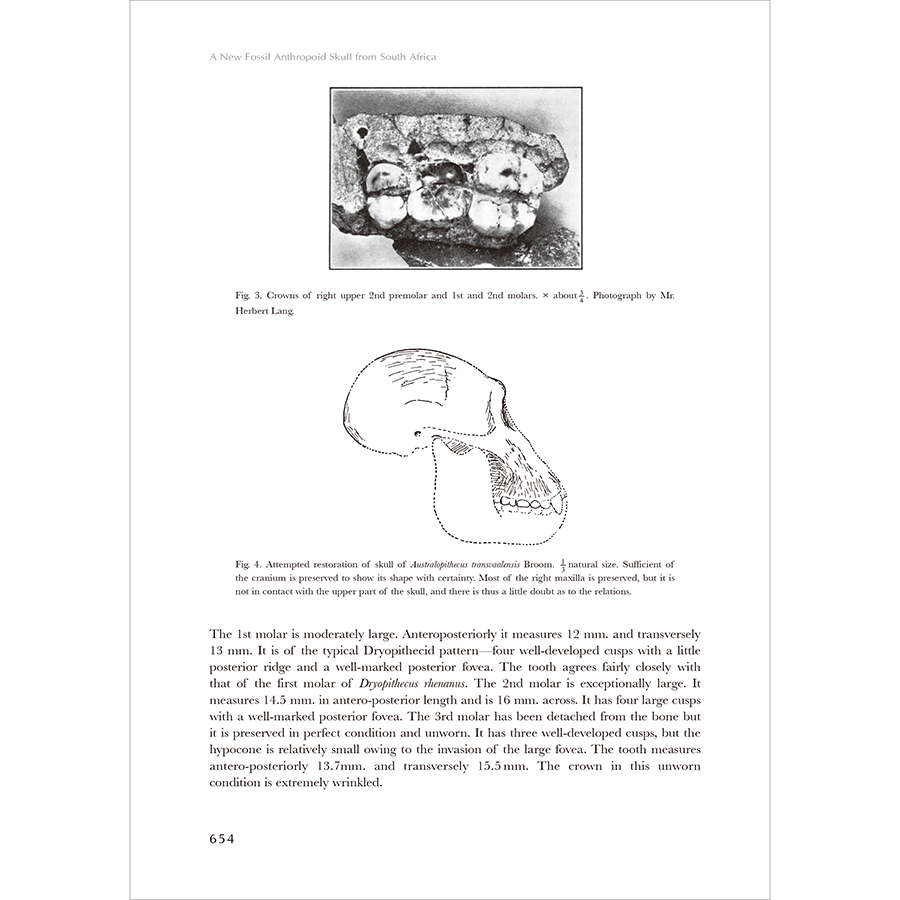 这篇文章报道的是雷蒙德·达特在南非发现了一件幼年类人猿的头骨,这被认为是现代人类化石研究的开端。在此之前,所有的人类化石要么确定无疑地属于猿类,比如森林古猿,要么非常接近人类,比如尼安德特人和爪哇猿人(现在称为直立人)。这块化石具有非常明确的过渡性特征,这对人类的进化历程提出了质疑。这块化石中的牙齿与人类的牙齿非常相似,脑比较小,类似于古猿,这与当时的主流观点是完全相悖的。由于皮尔当人的发现,当时人们广泛接受的主流观点认为,人类祖先脑量的增大先于类似现代人牙齿的出现,不过现在看来皮尔当人不过是场骗人的闹剧。