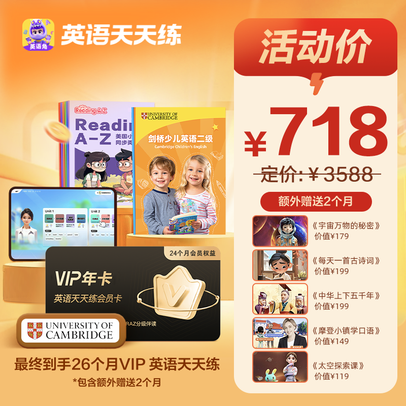 【英语天天练-ABC英语角app】全新升级 VIP、SVIP会员权益、剑桥英语!RAZ绘本分级阅读