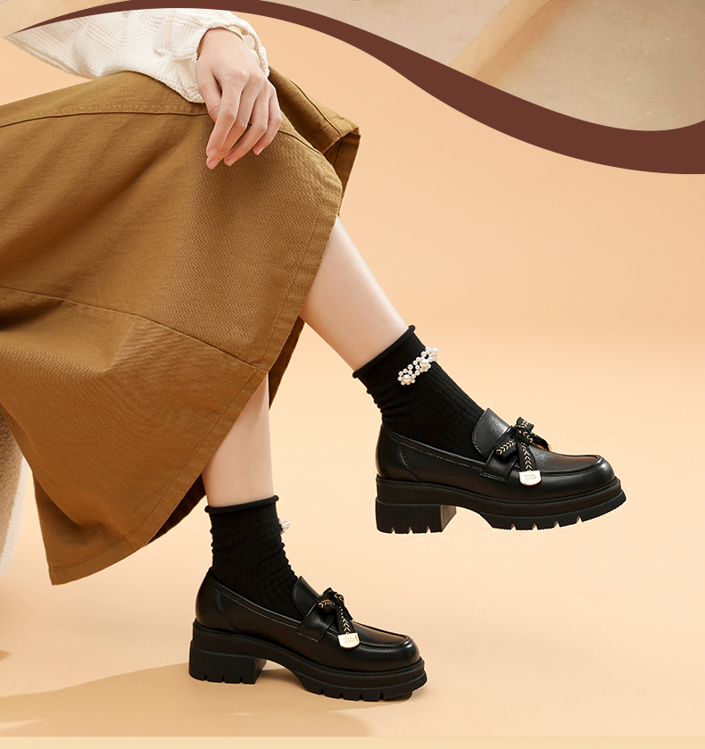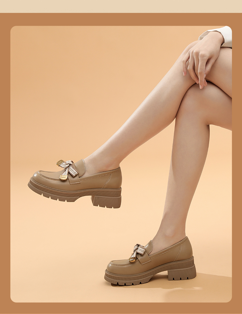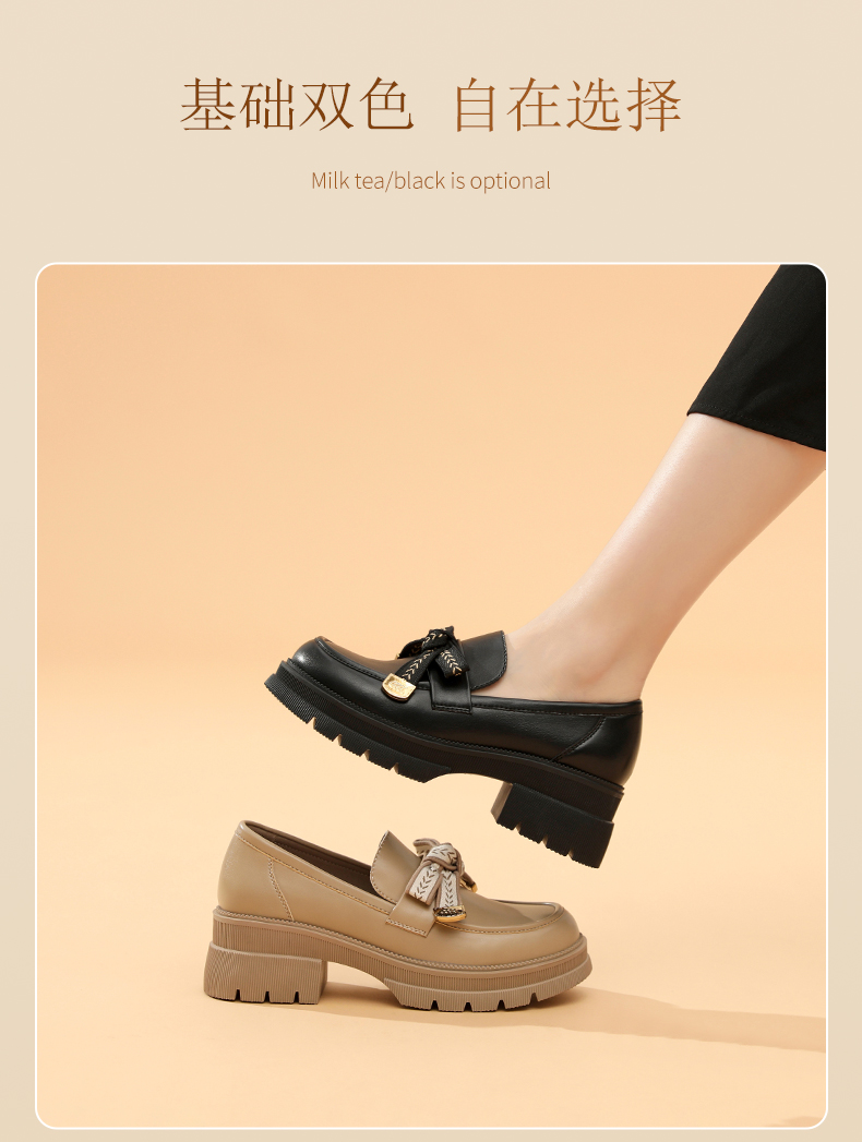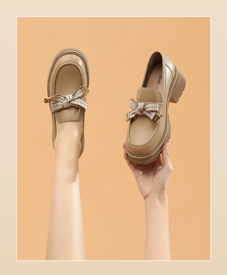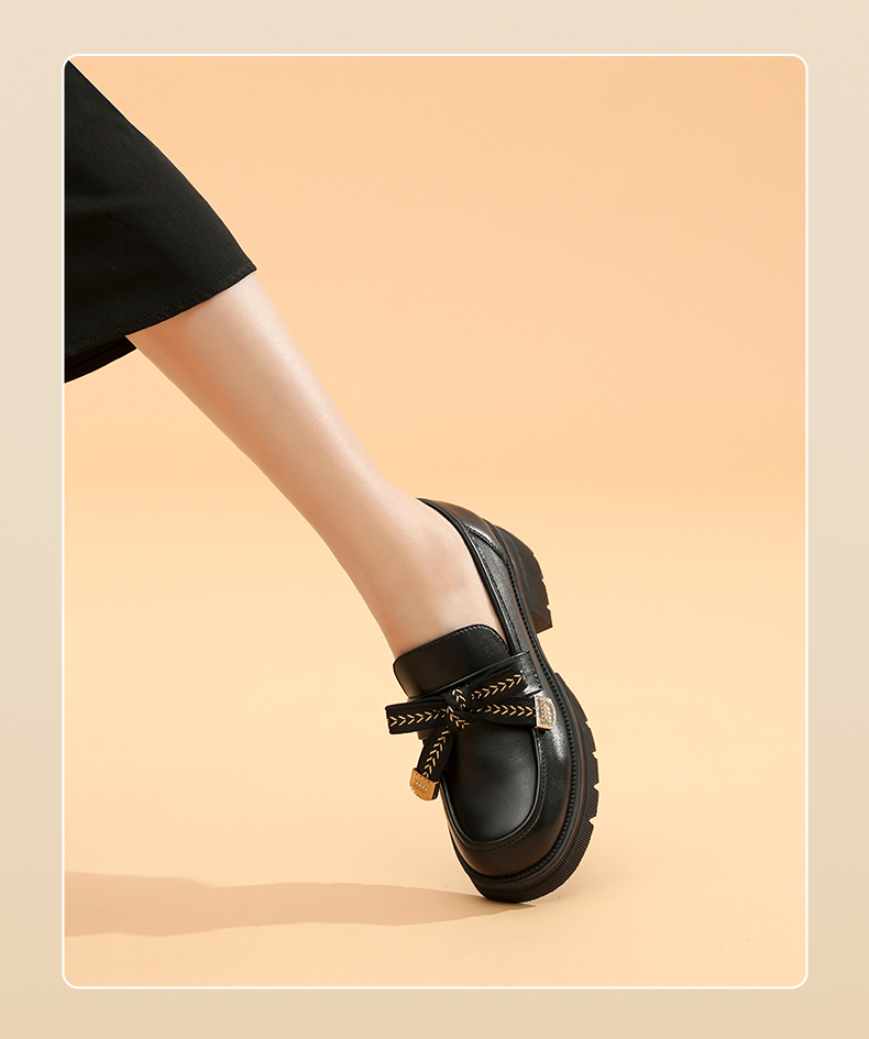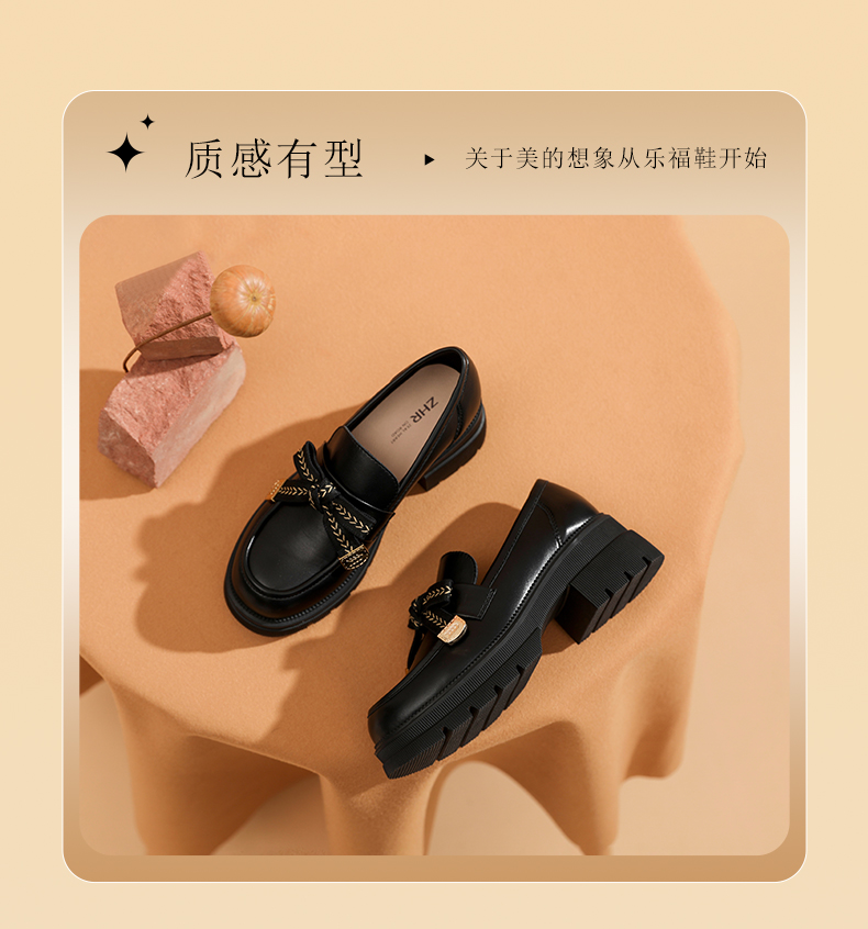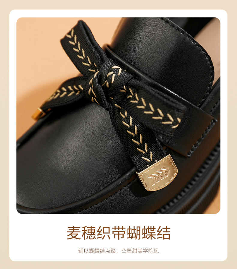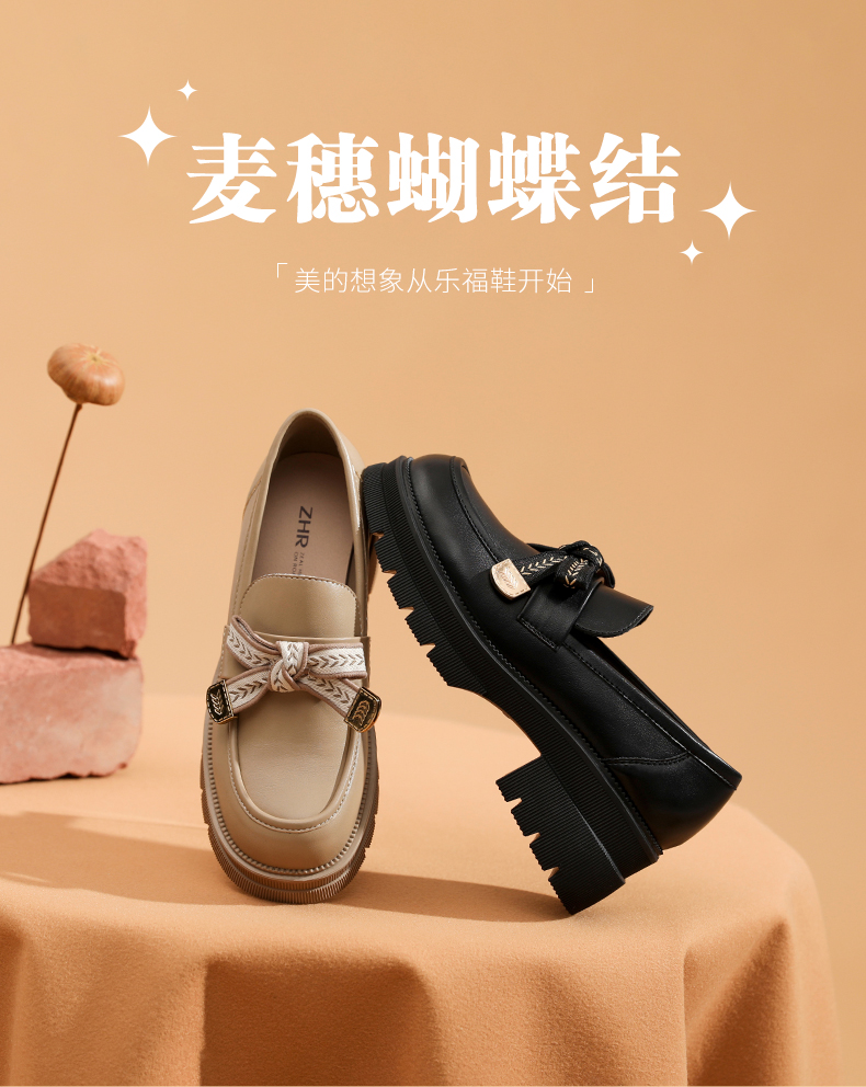 ZHR麦穗蝴蝶结乐福鞋厚底单鞋百搭英伦小皮鞋女2023春季新款
