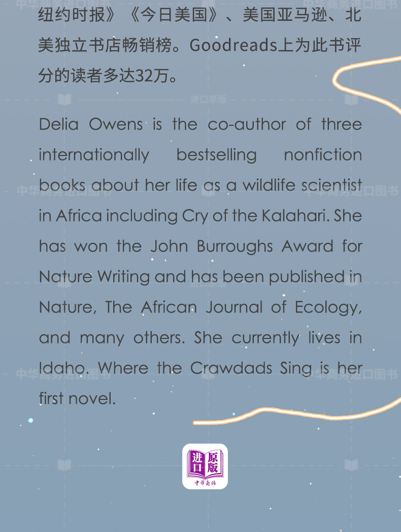 预售 【中商原版】Where the Crawdads Sing 英文原版 爬行动物歌唱之地 Delia Owens
