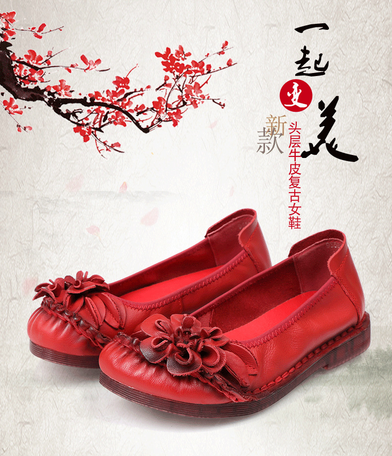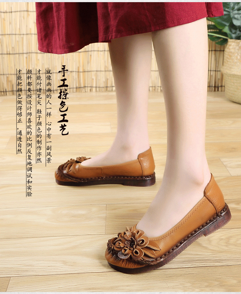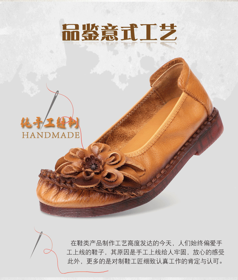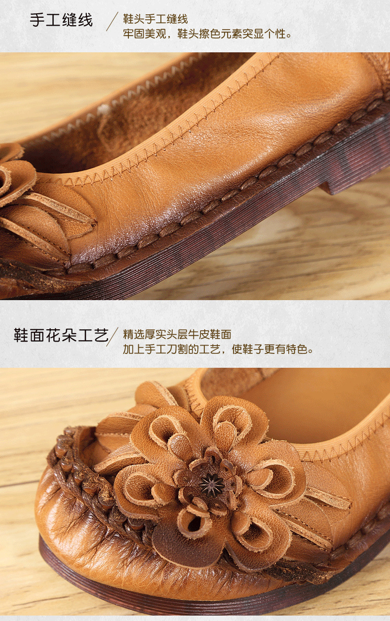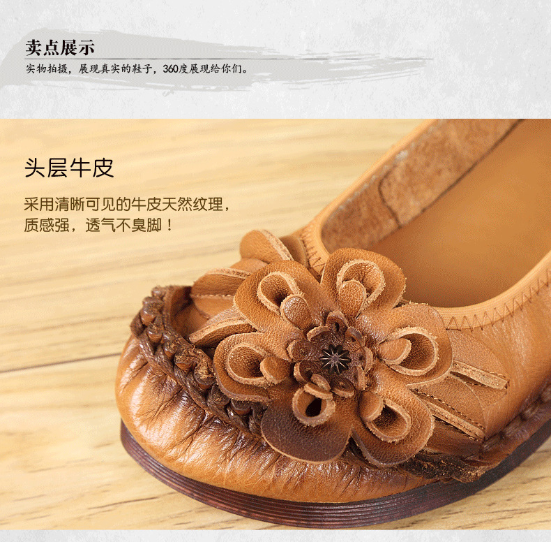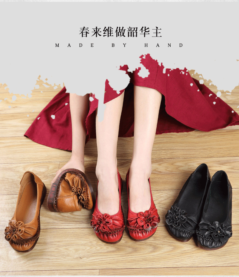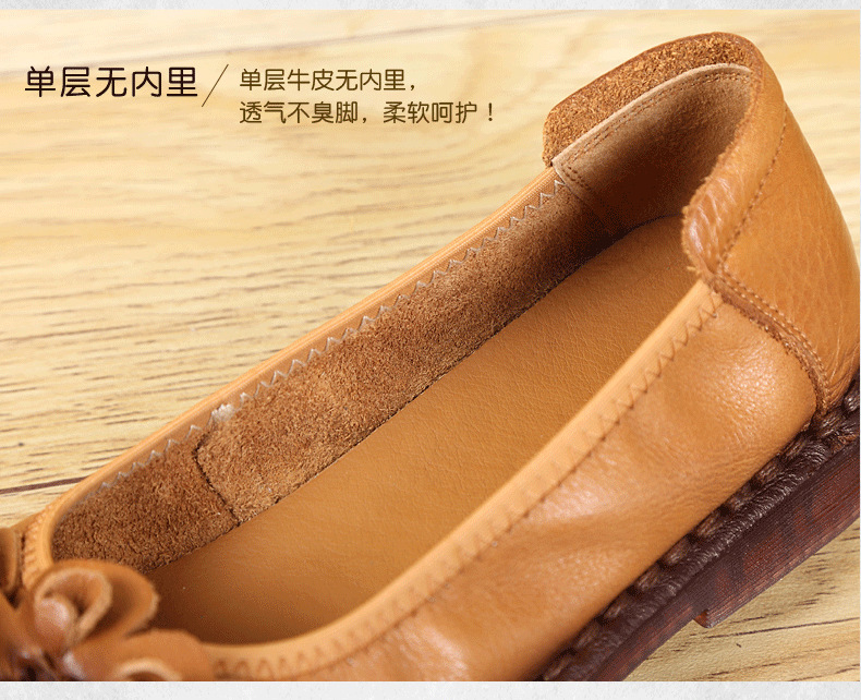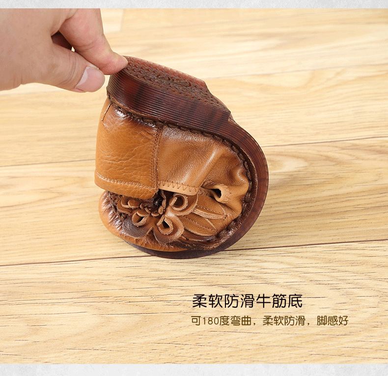 复古真皮平底,防滑软底舒适妈妈鞋LLTS9558