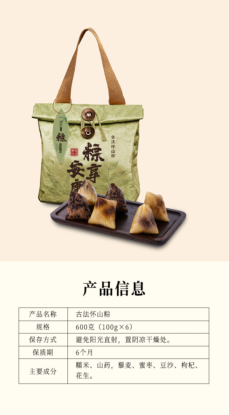 正安国货铺 药膳同源糯香回味的古法怀山粽 六种口味 600g【保质期到12月】