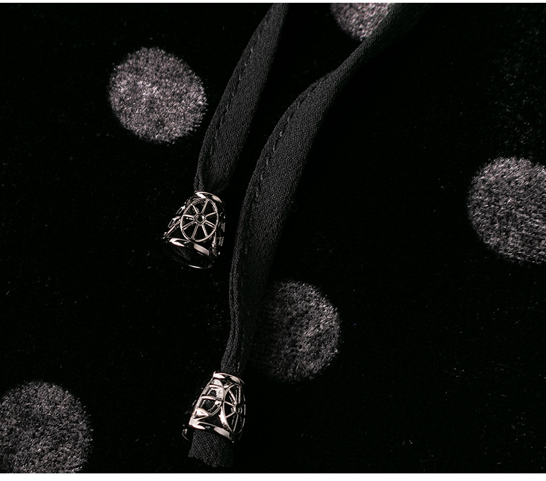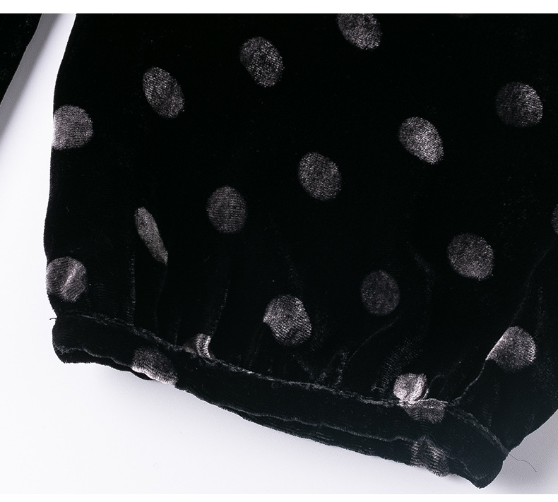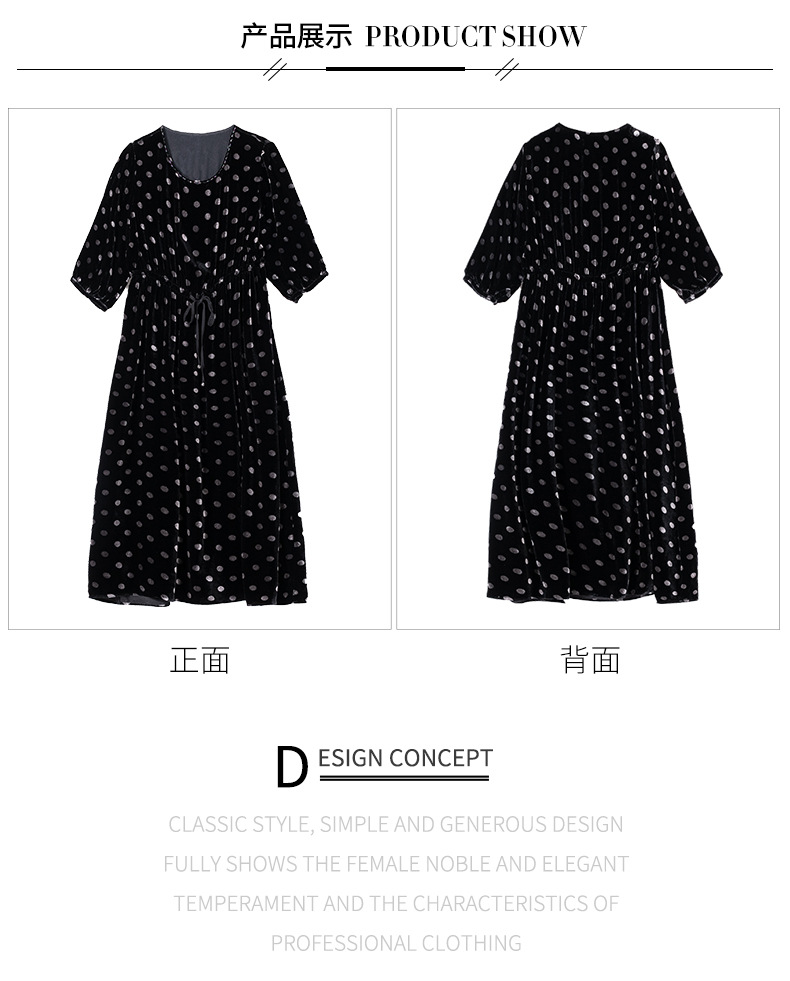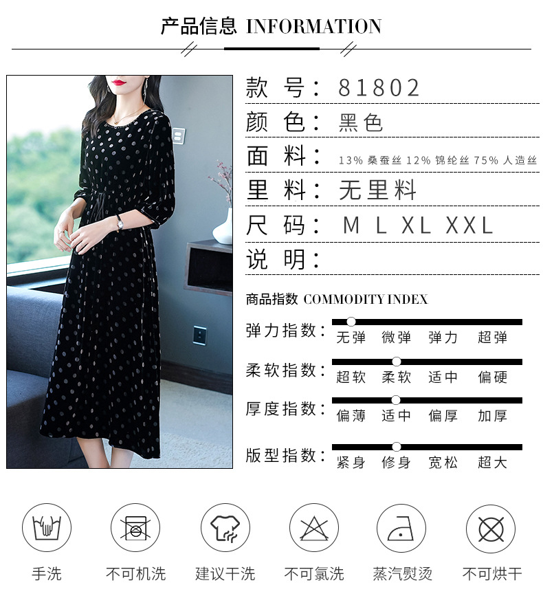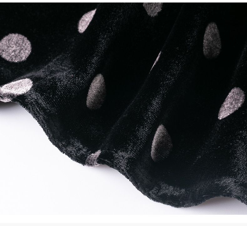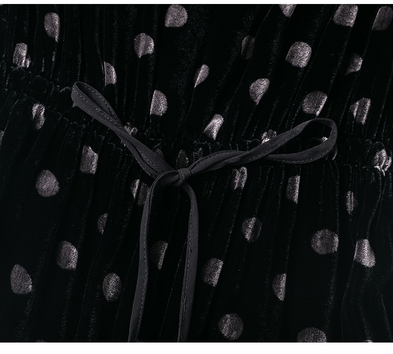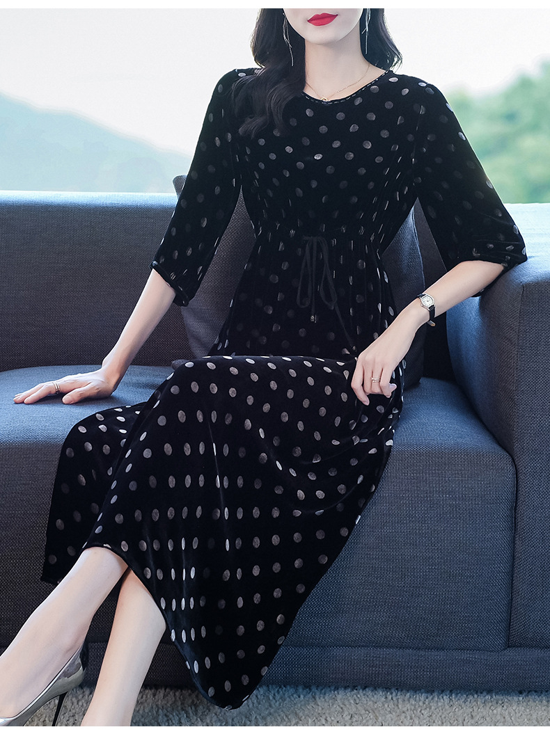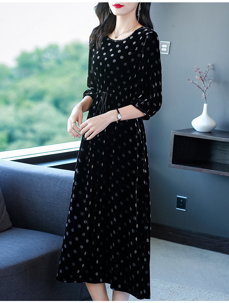 秋季真丝丝绒波点连衣裙女欧美气质订珠裙子中长裙WWM-81802