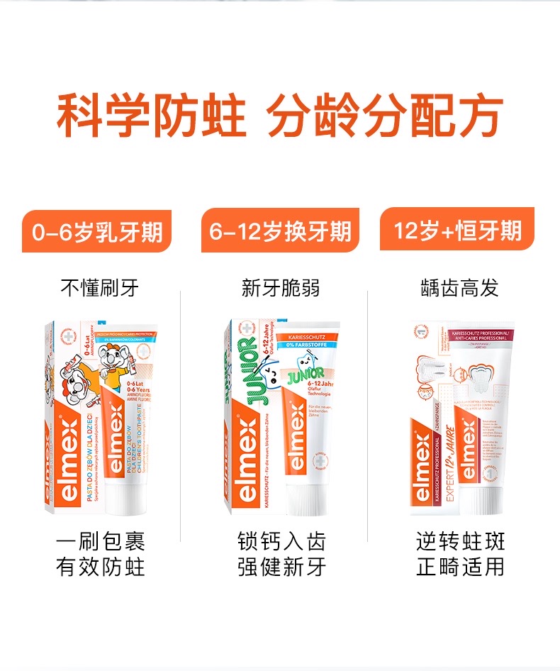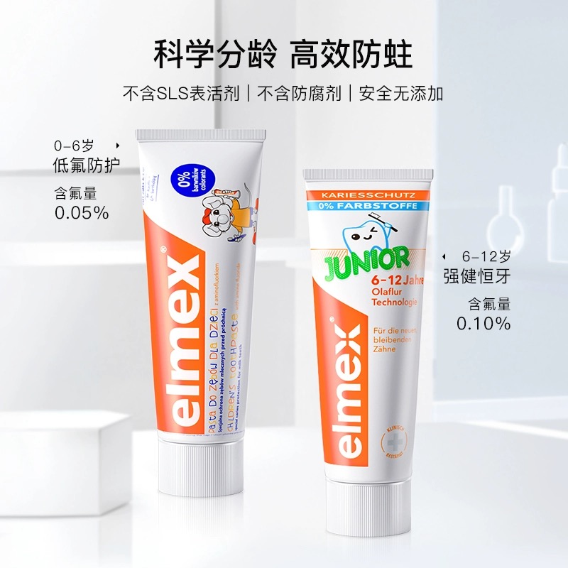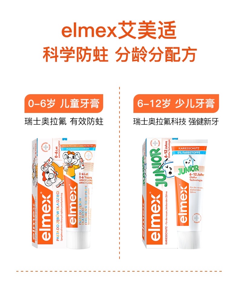奥拉氟艾美适儿童牙膏0-12岁 防蛀温和含氟宝宝牙膏 宝妈信赖科学分龄护齿牙膏 、低泡配方深入牙缝温和洁净不刺激宝贝口腔