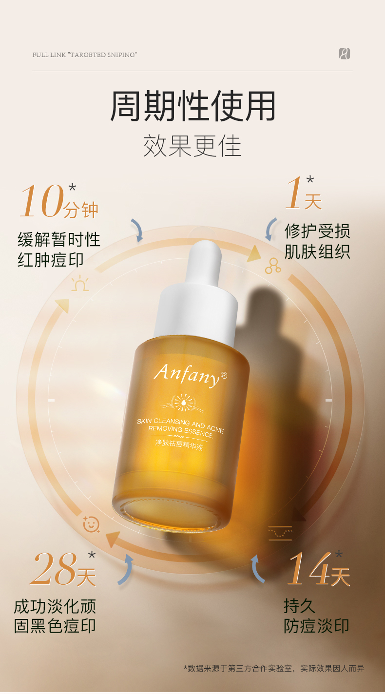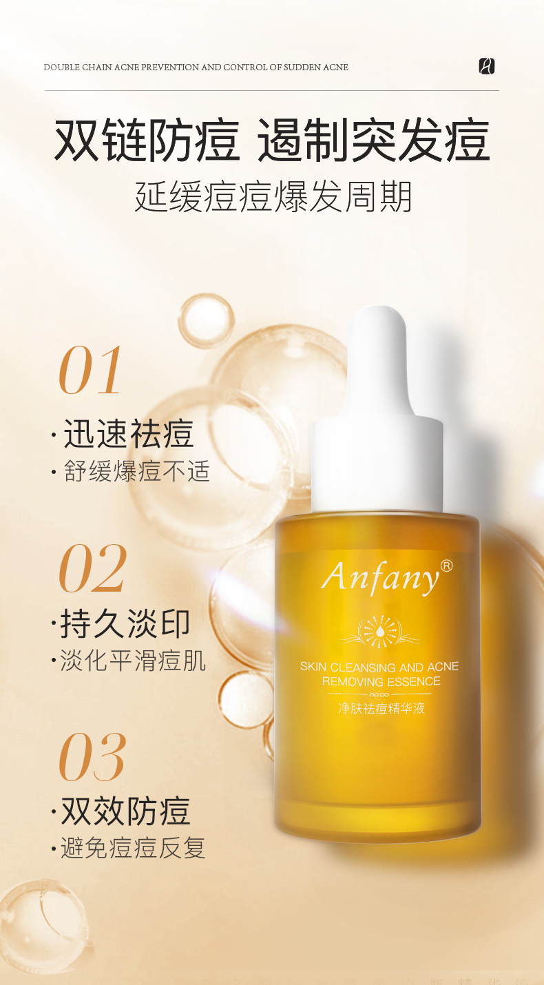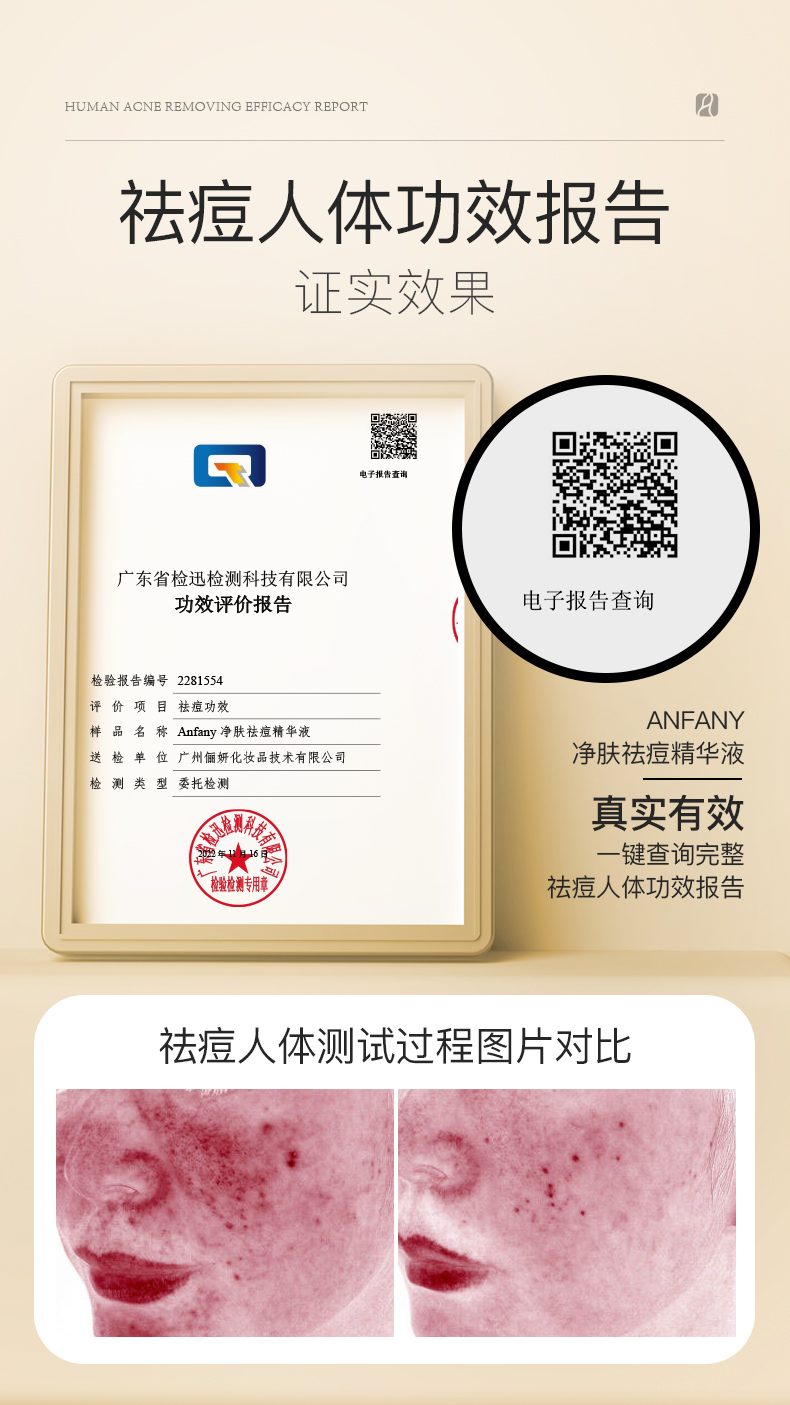 【痘痘橡皮擦】Anfany净肤祛痘精华液 祛痘人体功效报告 四大专利成分 草本净痘配方 脸蛋又嫩又亮 越用越干净 30ml/瓶