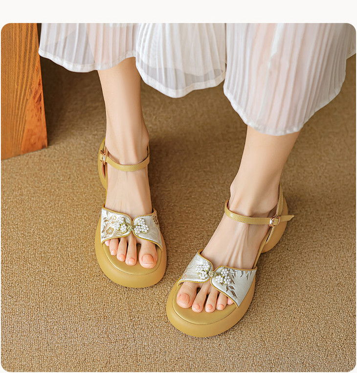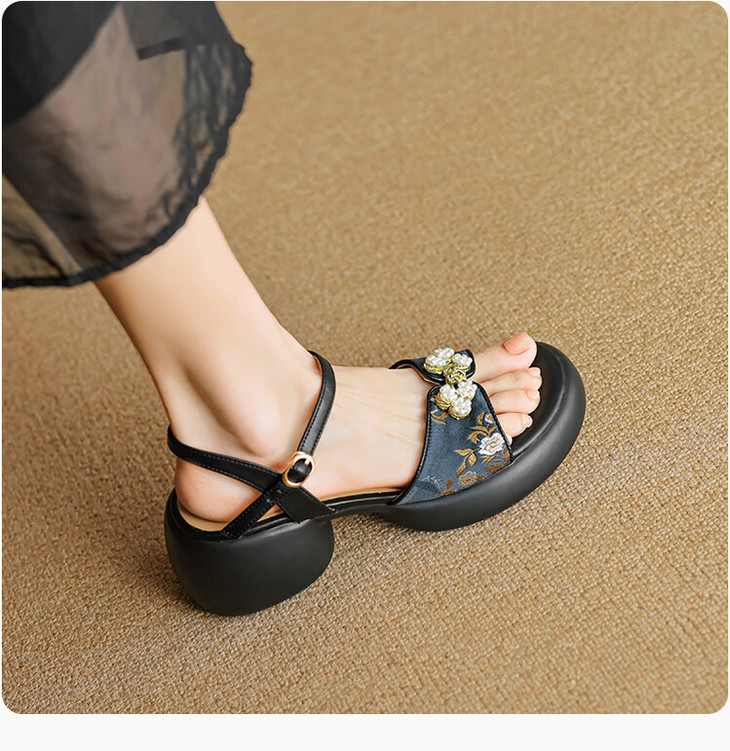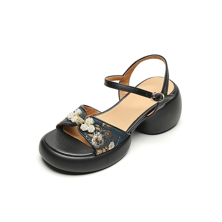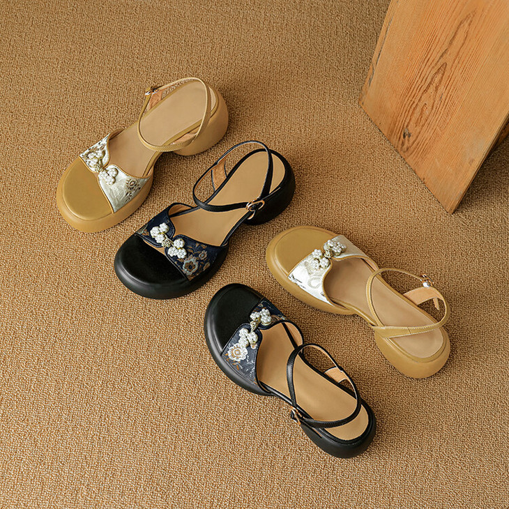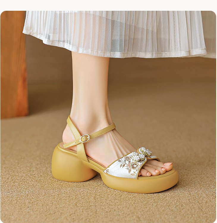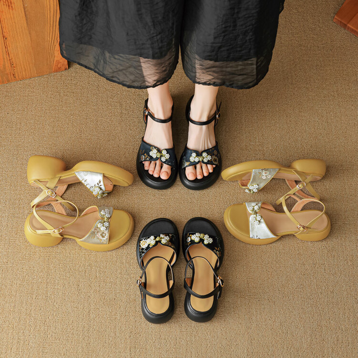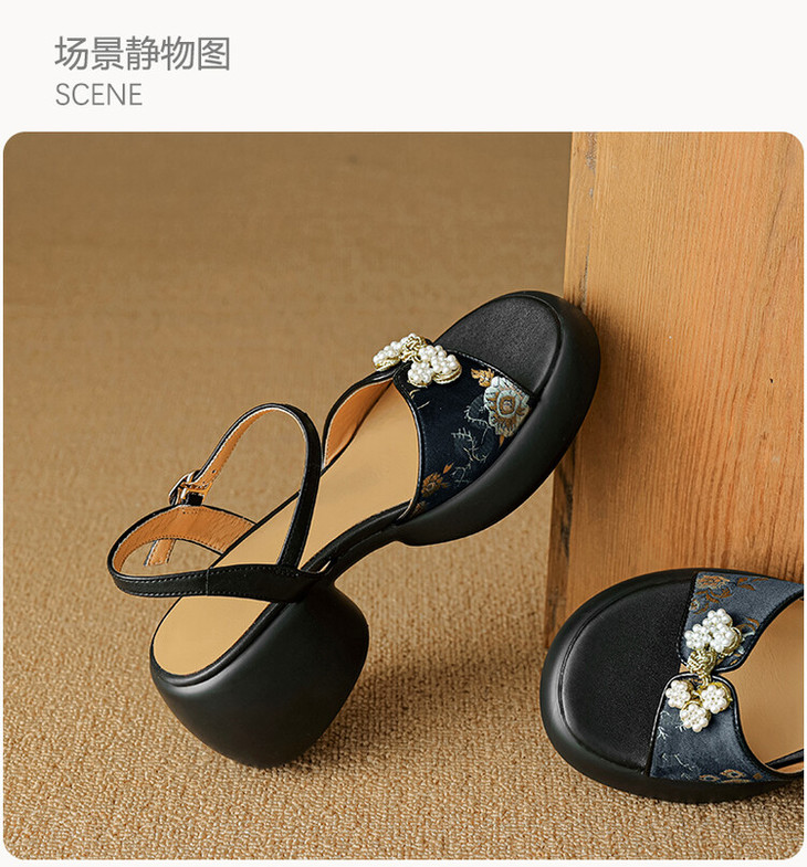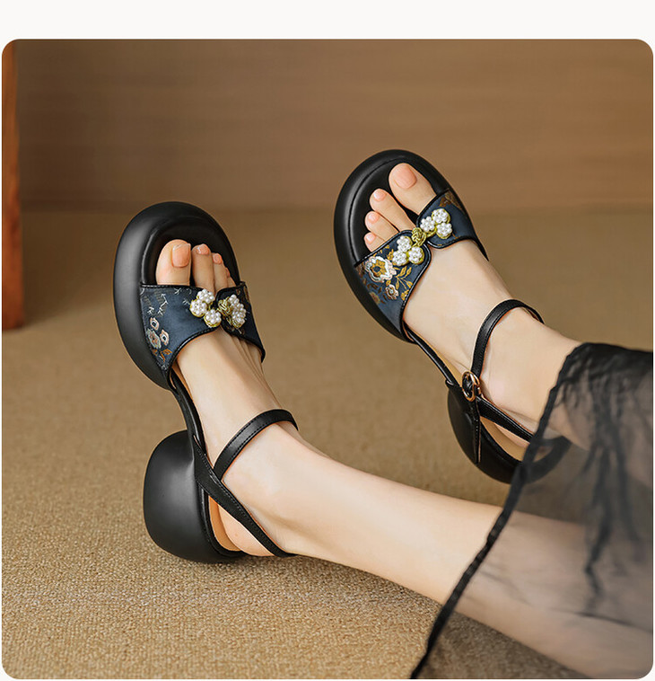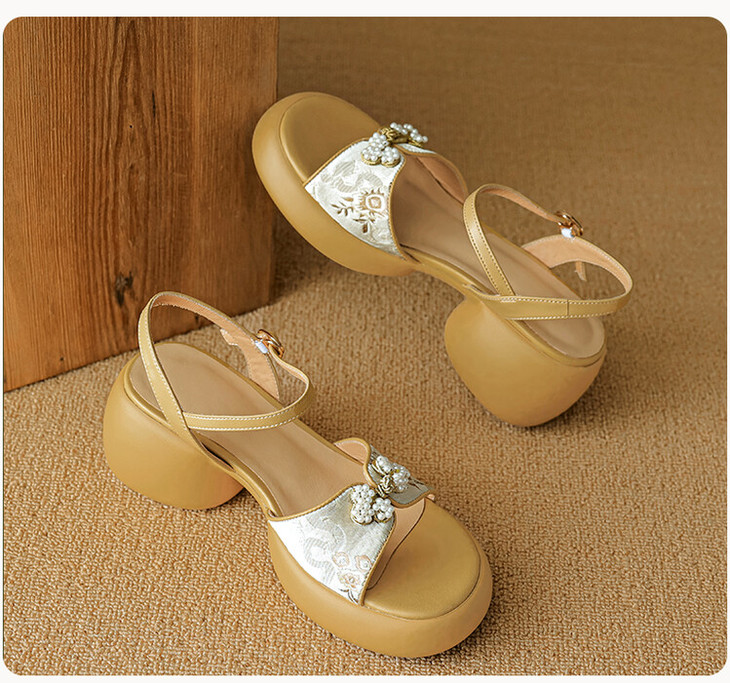 【预售5天】2种跟~巨软松糕厚底凉鞋女夏新中式丝绸盘扣一字带露趾粗跟高跟鞋YMT&MT3740