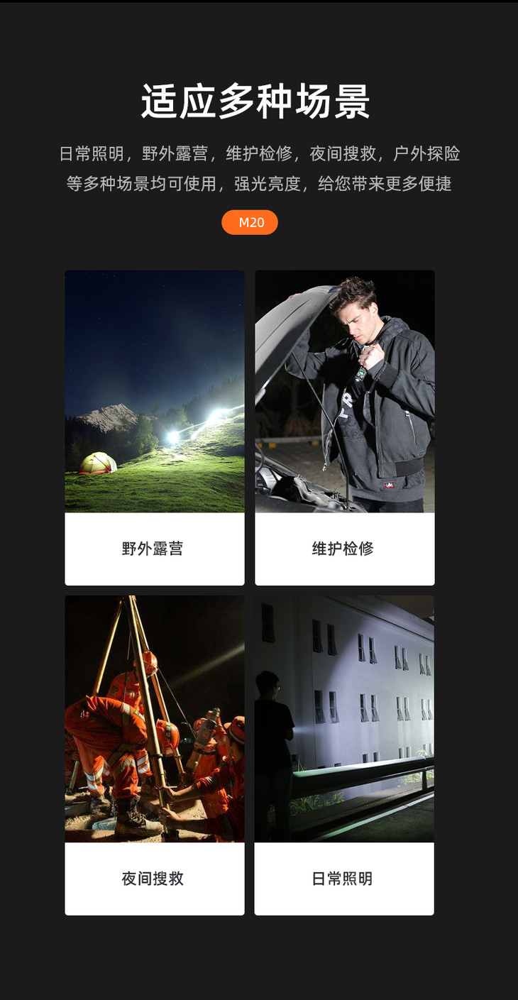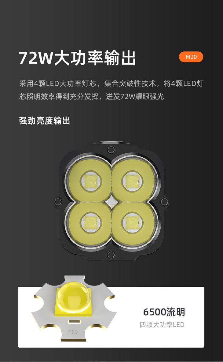 SUPERFIRE神火M20手电筒72W强光远射四核P50铝合金机身防水USB直充手电