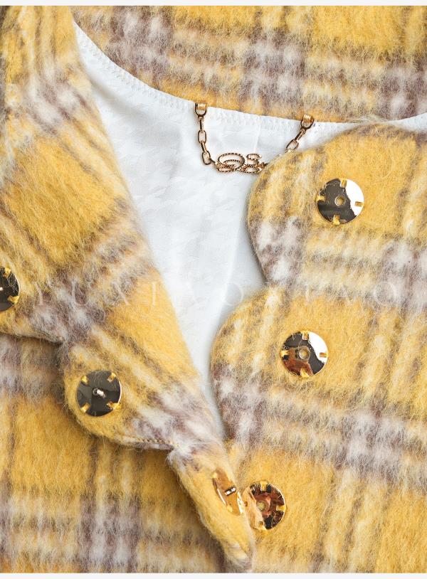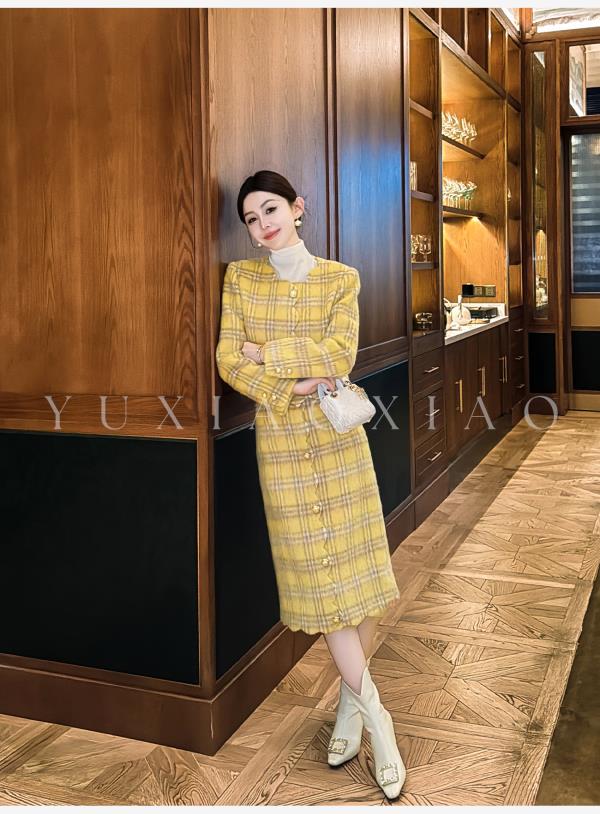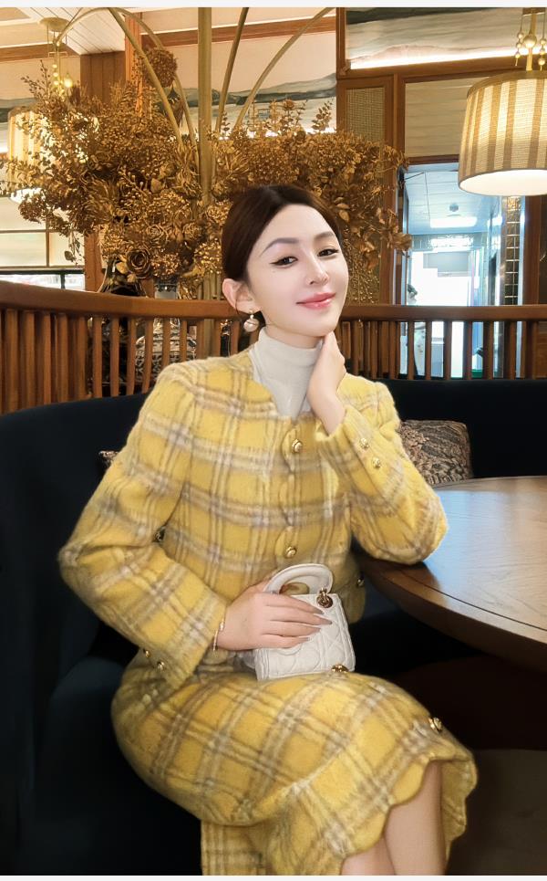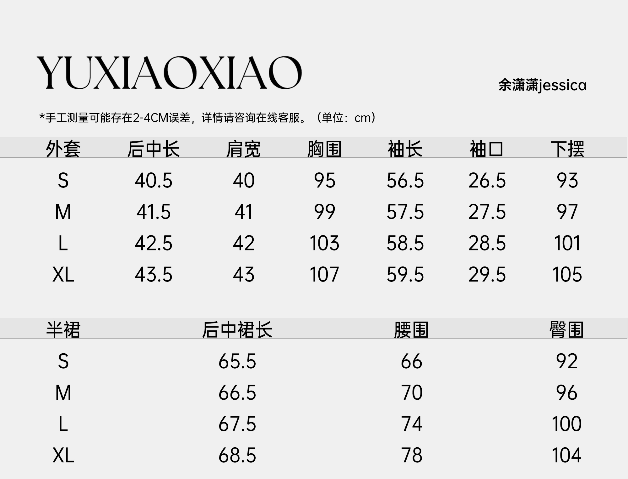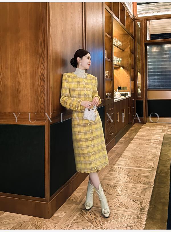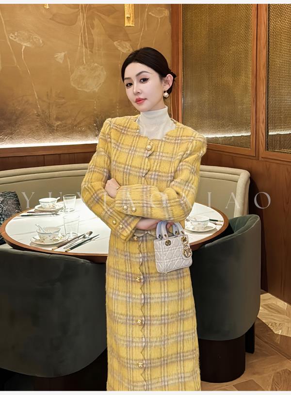 余潇潇【英伦格律】绵羊毛羊驼毛复古格纹花瓣波浪边外套&半裙套装