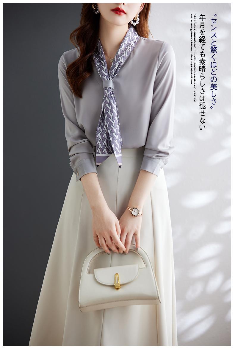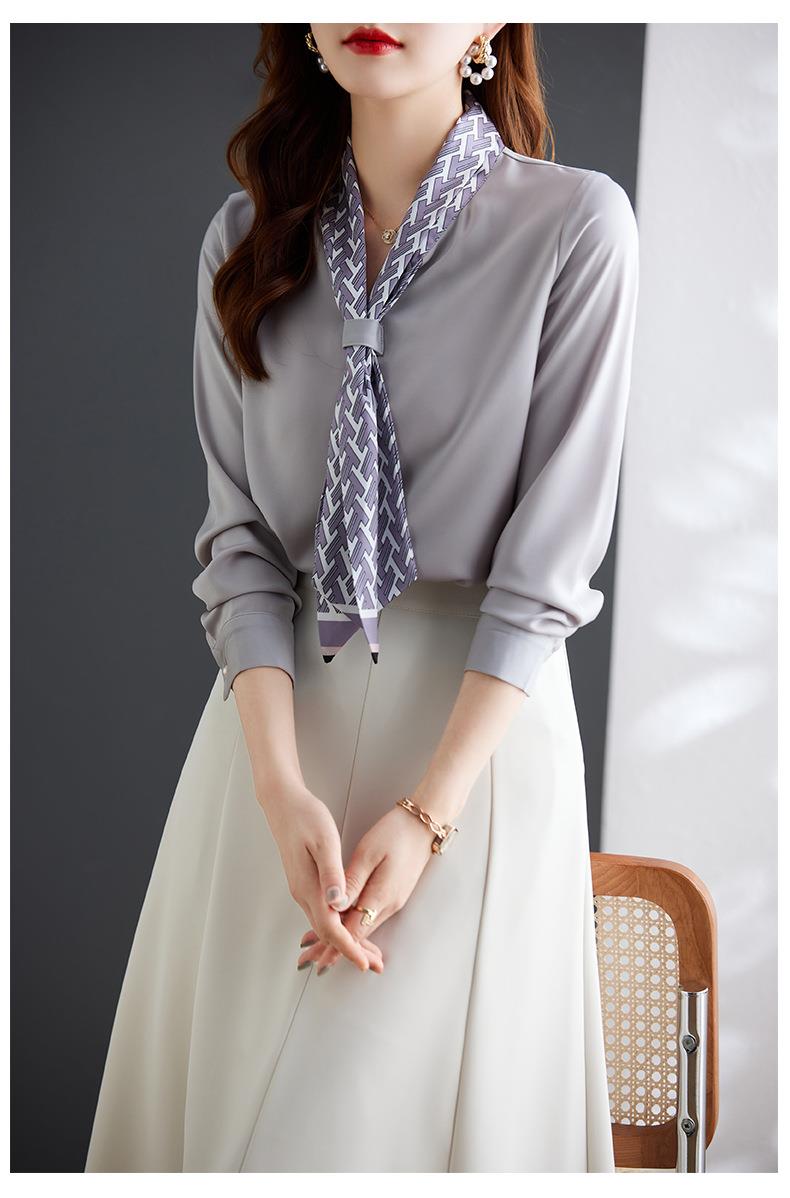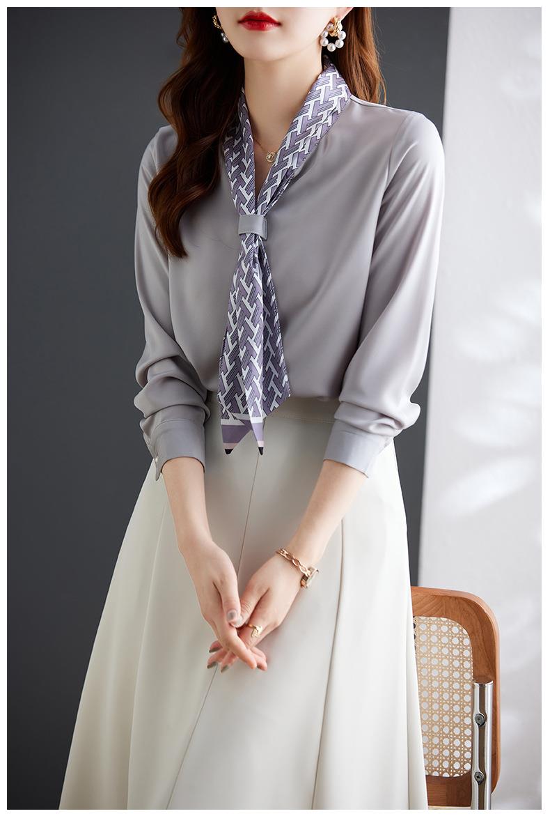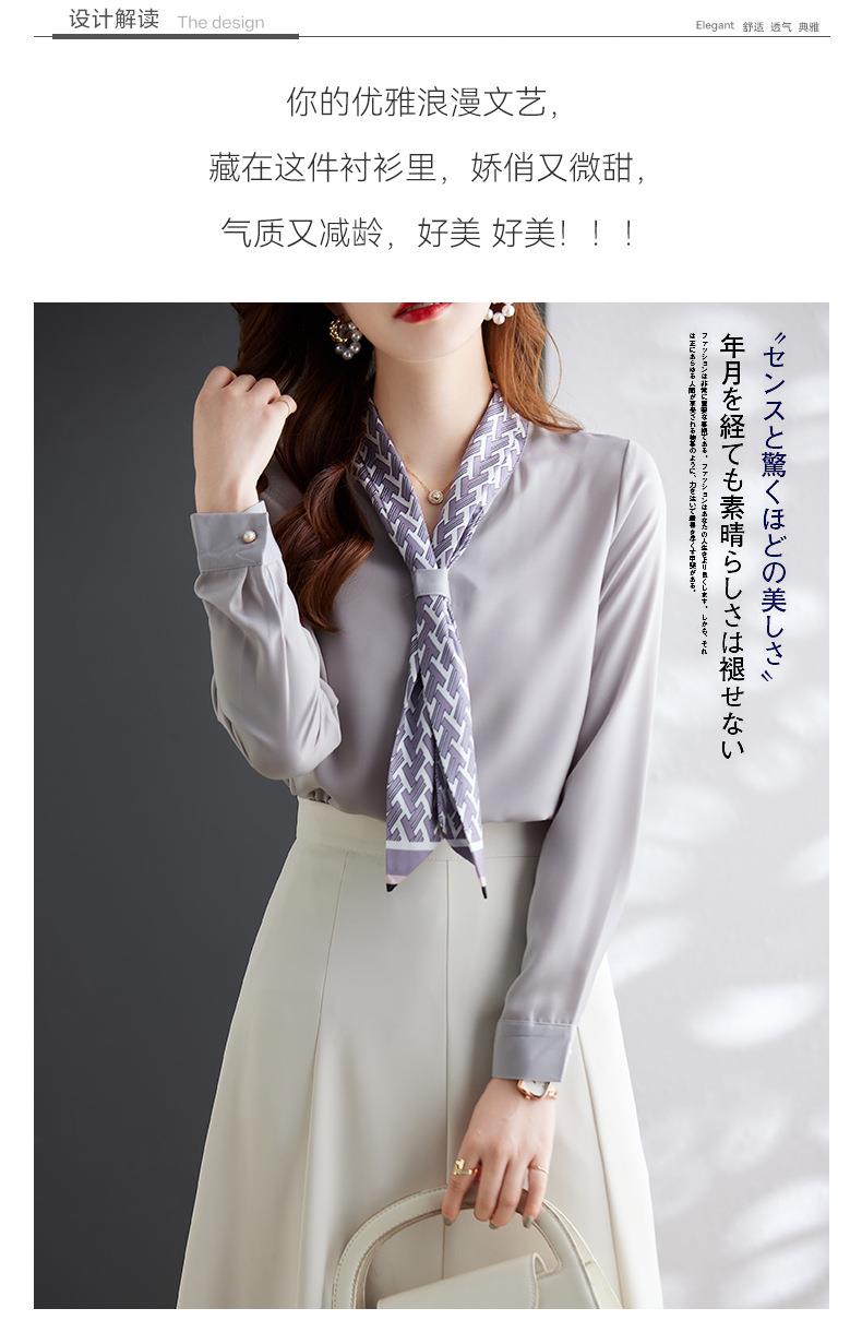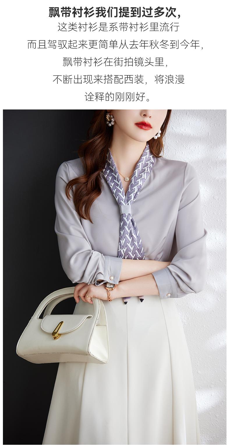 娜璐多 2023秋季新款长袖通勤女式衬衫设计小众时尚气质领巾内搭上衣女