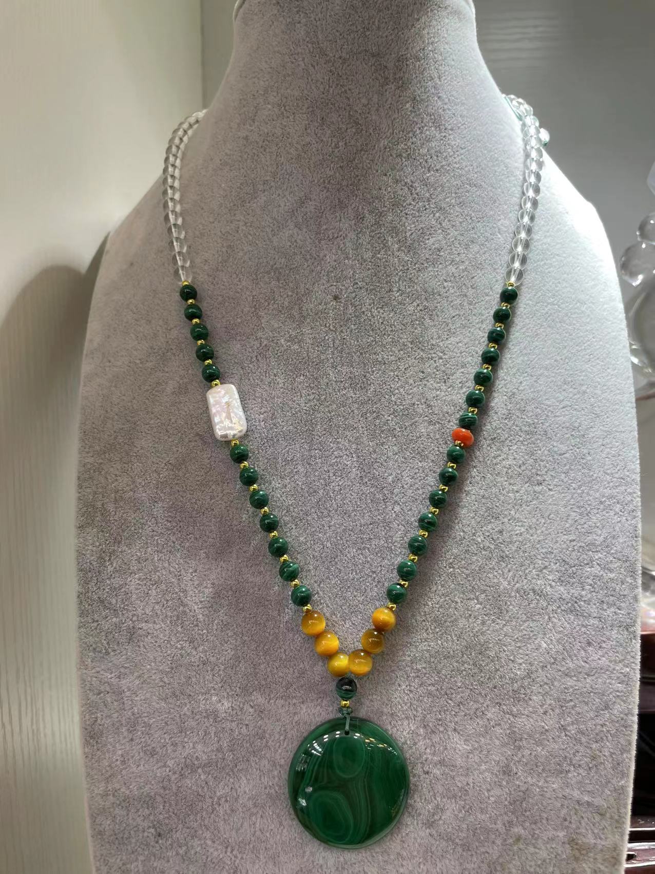 孔雀石项链首饰饰品 吊坠直径3cm左右