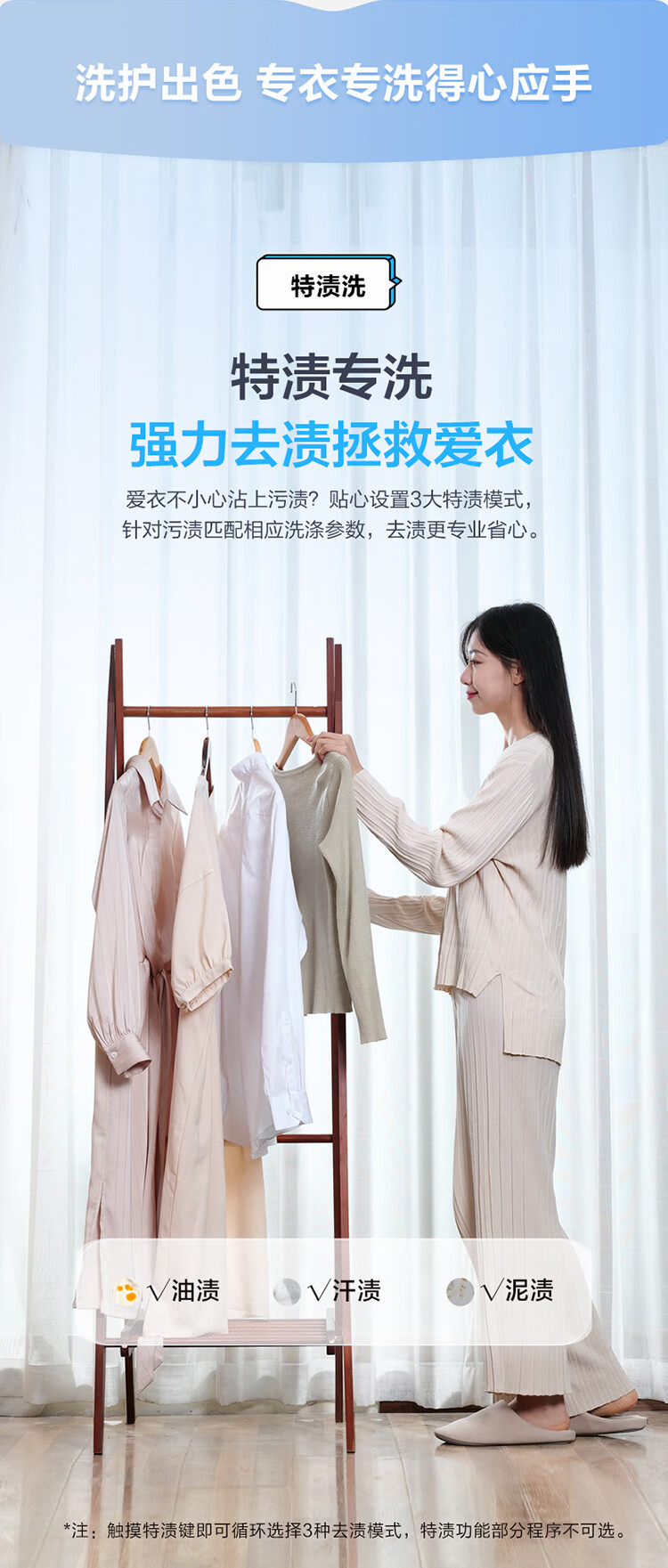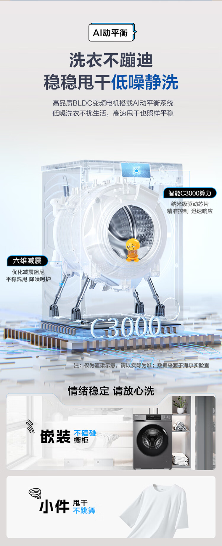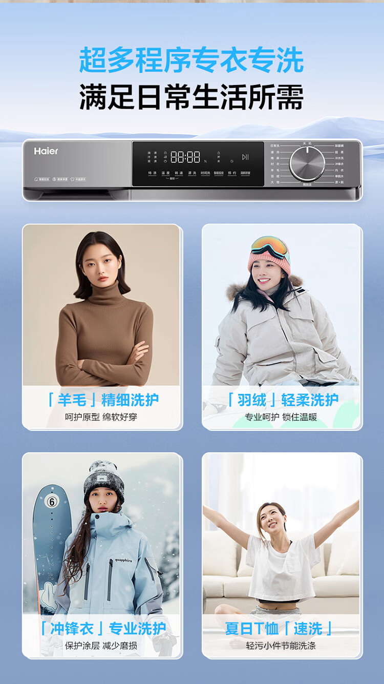海尔(Haier)滚筒洗衣机全自动单洗 10公斤大容量 1.1洗净比 3D内筒 一级能效 家电国家补贴以旧换新 EG10039PLUS 超薄家用