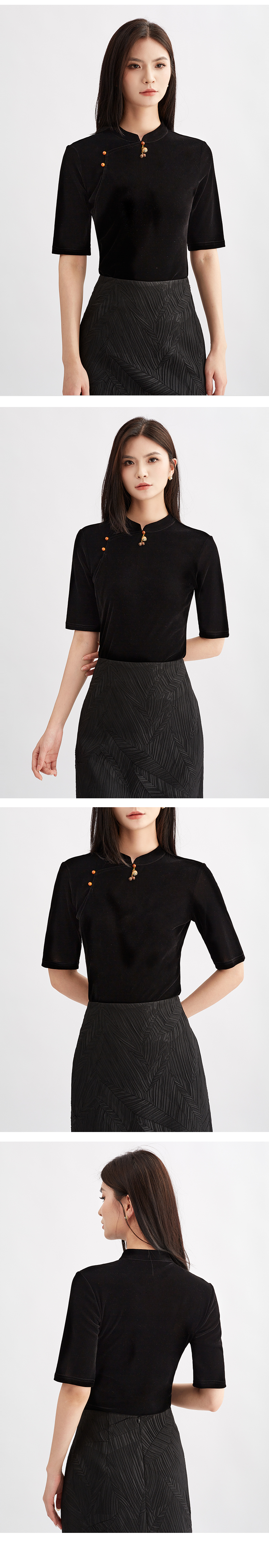 【国风雅致】阿菁娜新中式国风丝绒短衫F30Q201002