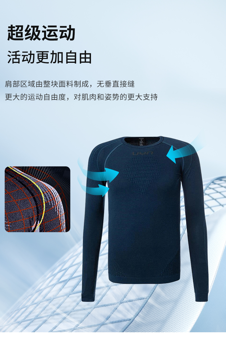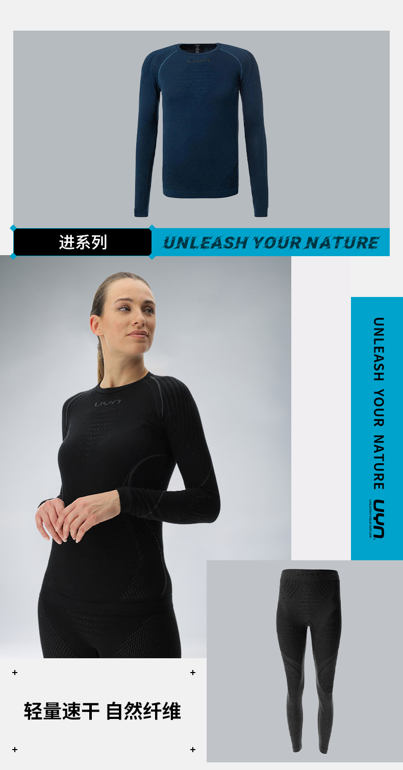 UYN 户外运动进系列自然款贴身保暖长袖衫套装透气吸汗速干运动内衣