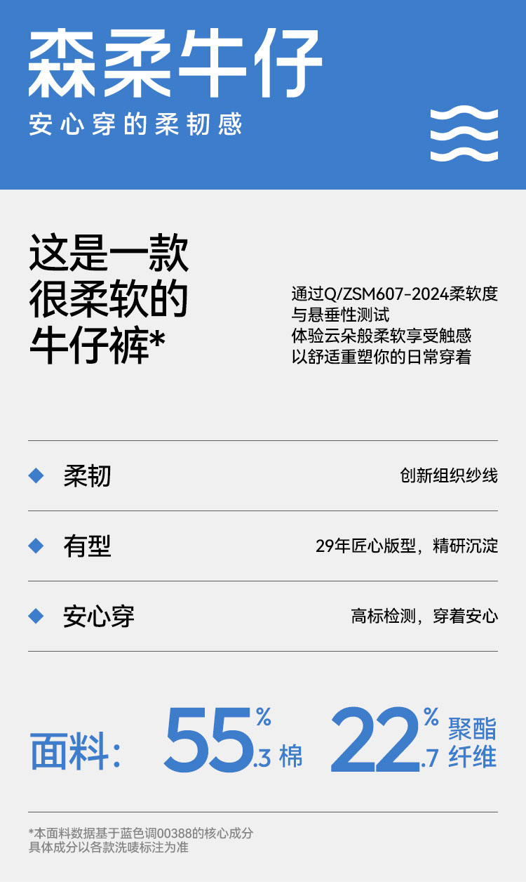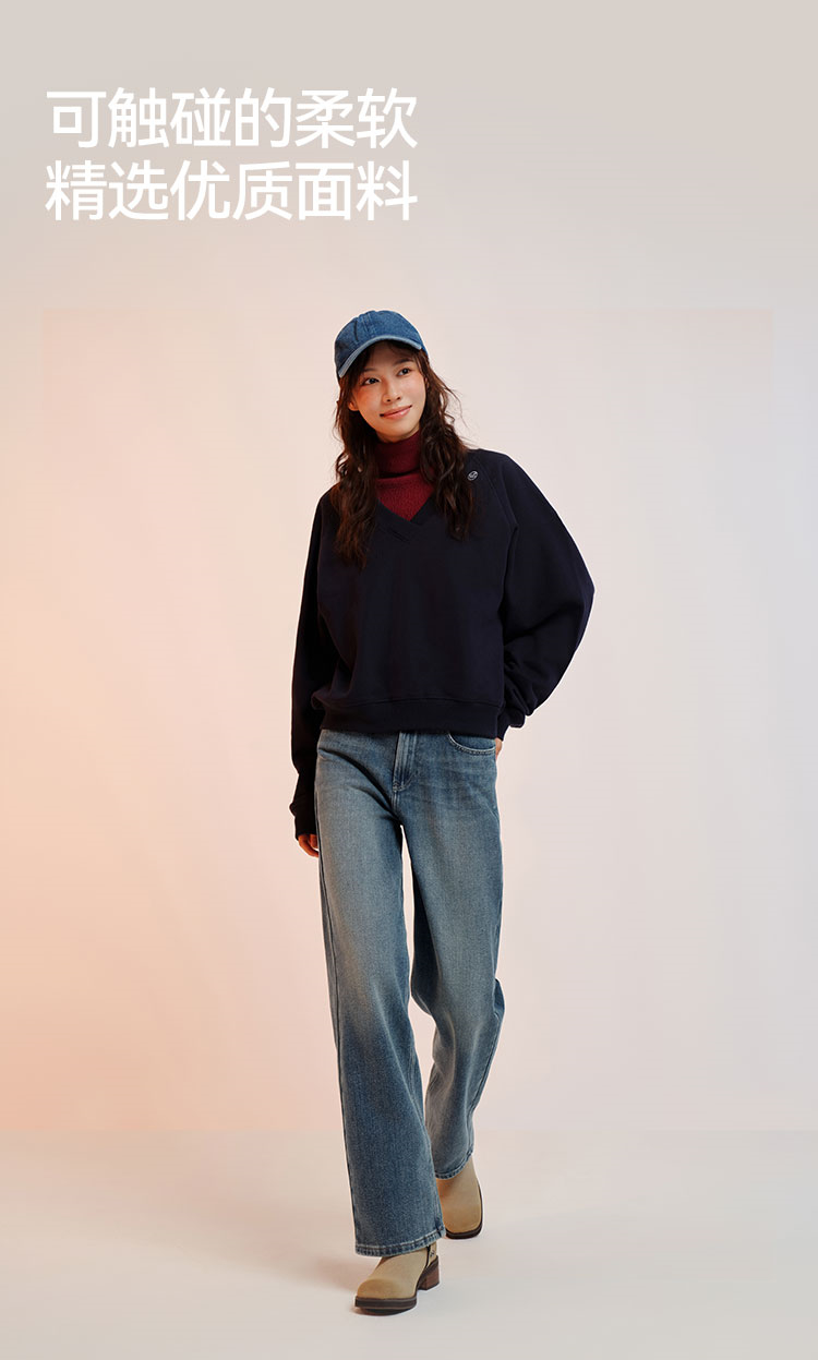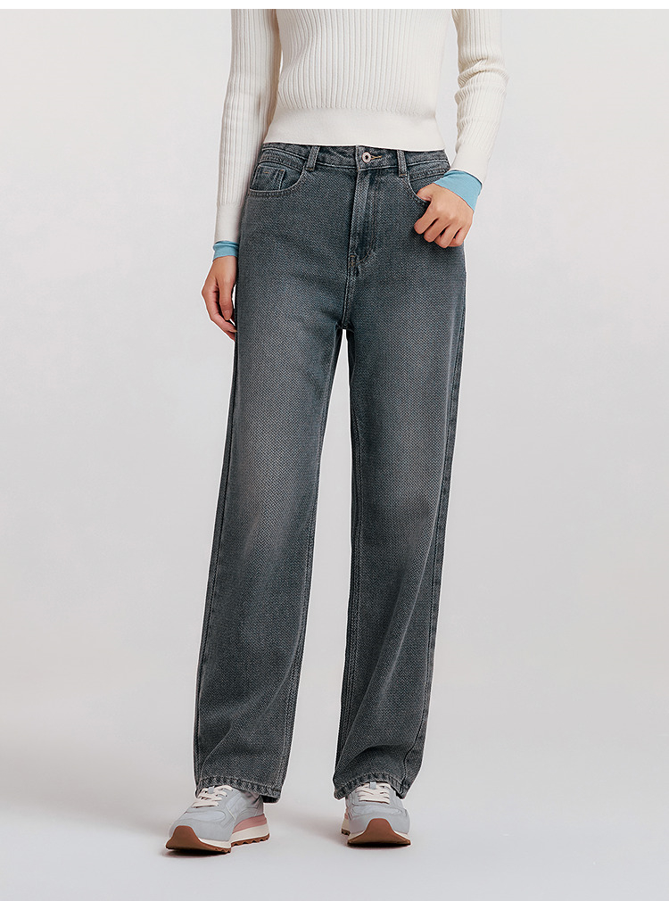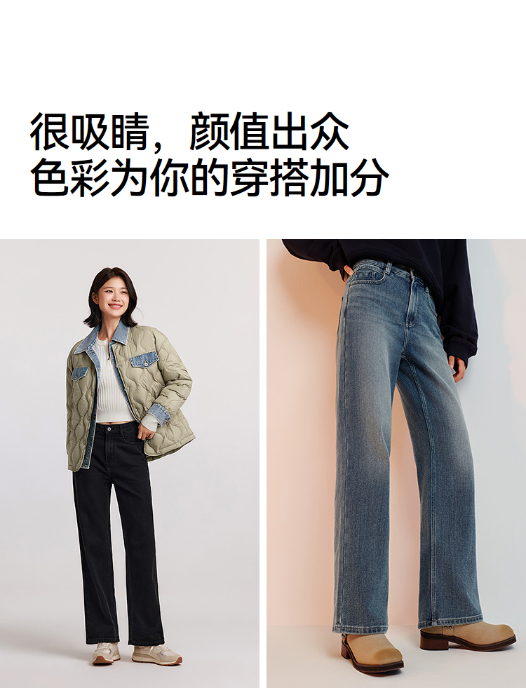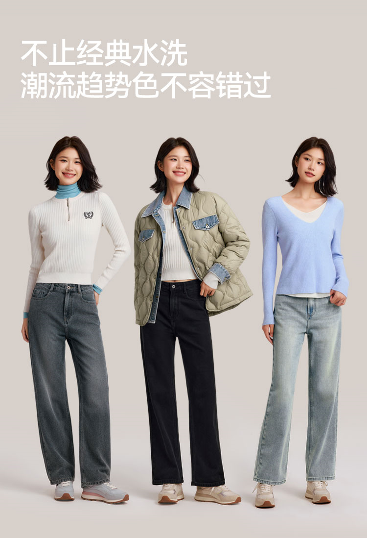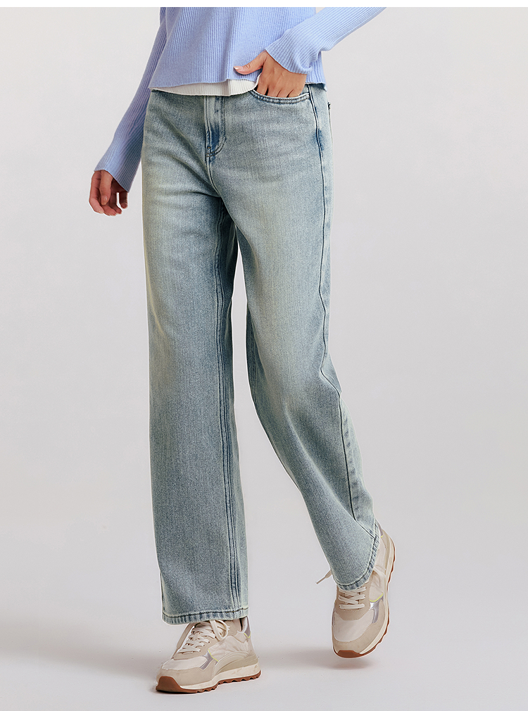 森柔牛仔|森马牛仔裤女舒适抓毛宽松阔腿裤冬季女士做旧长裤复古