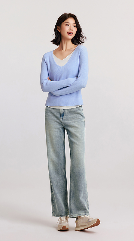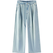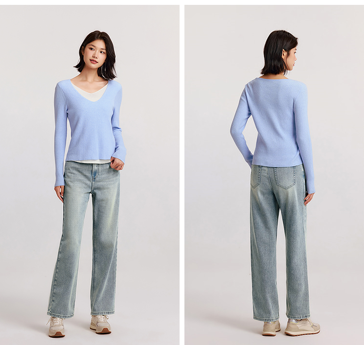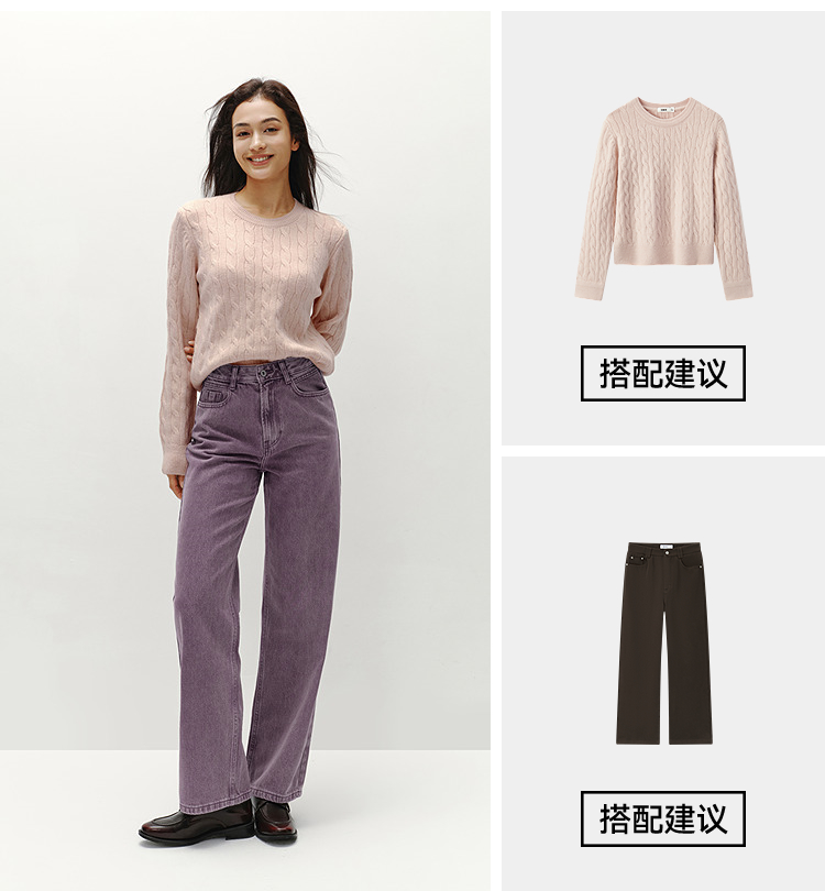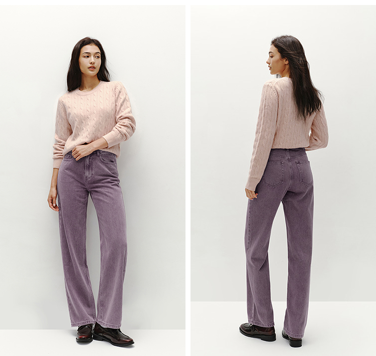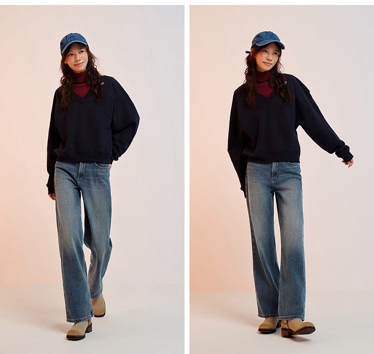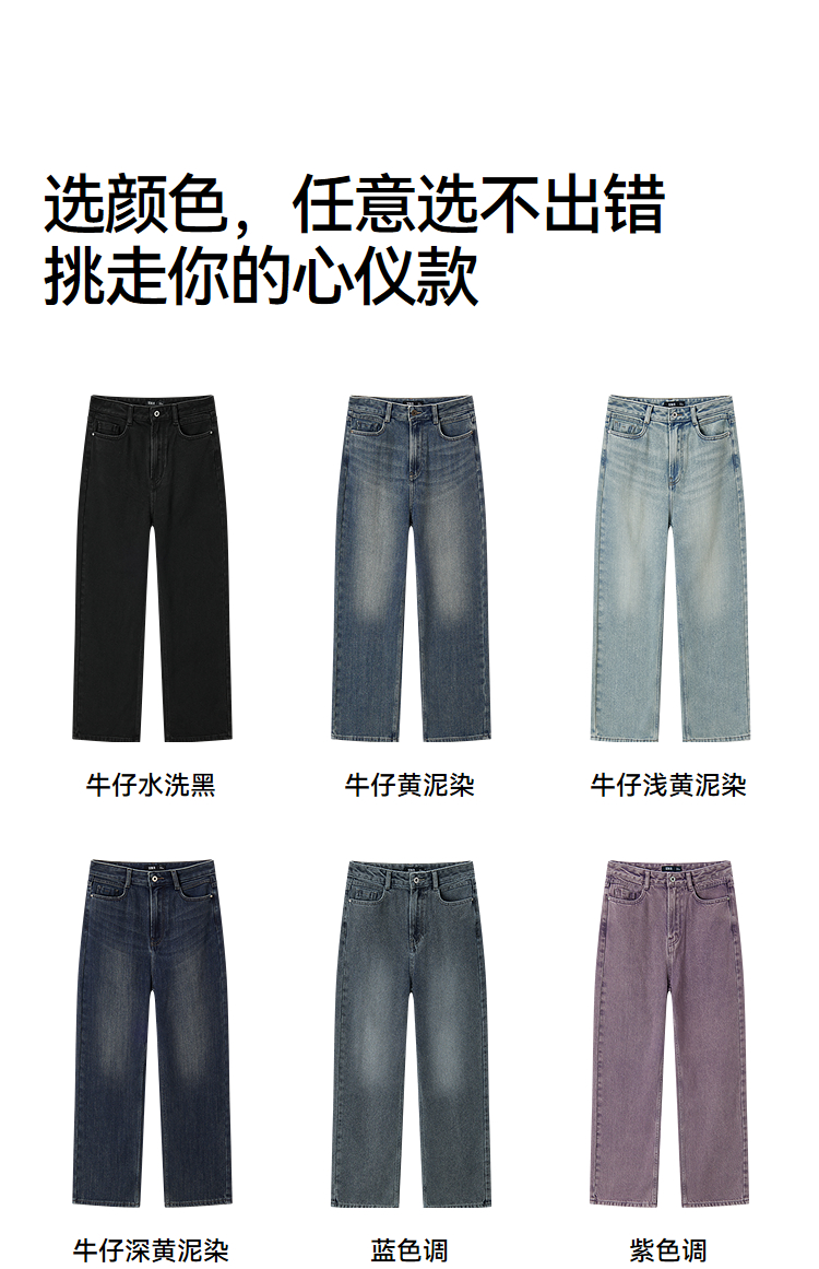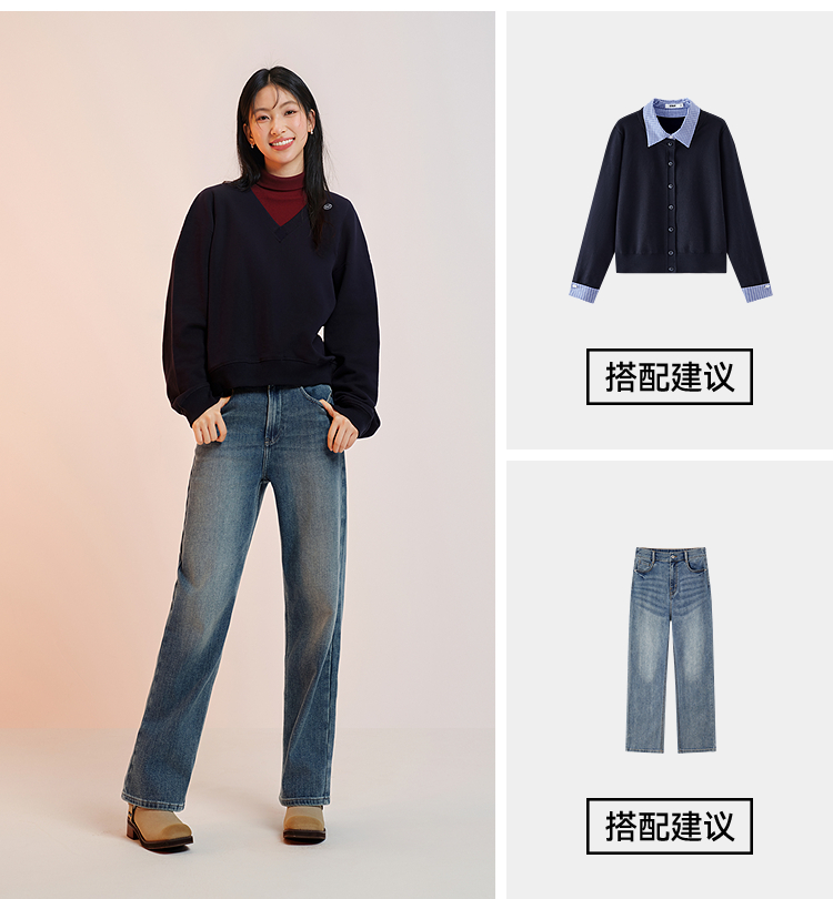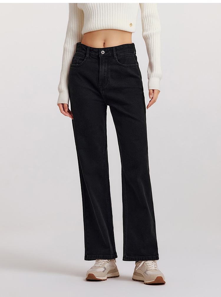 森柔牛仔|森马牛仔裤女舒适抓毛宽松阔腿裤冬季女士做旧长裤复古