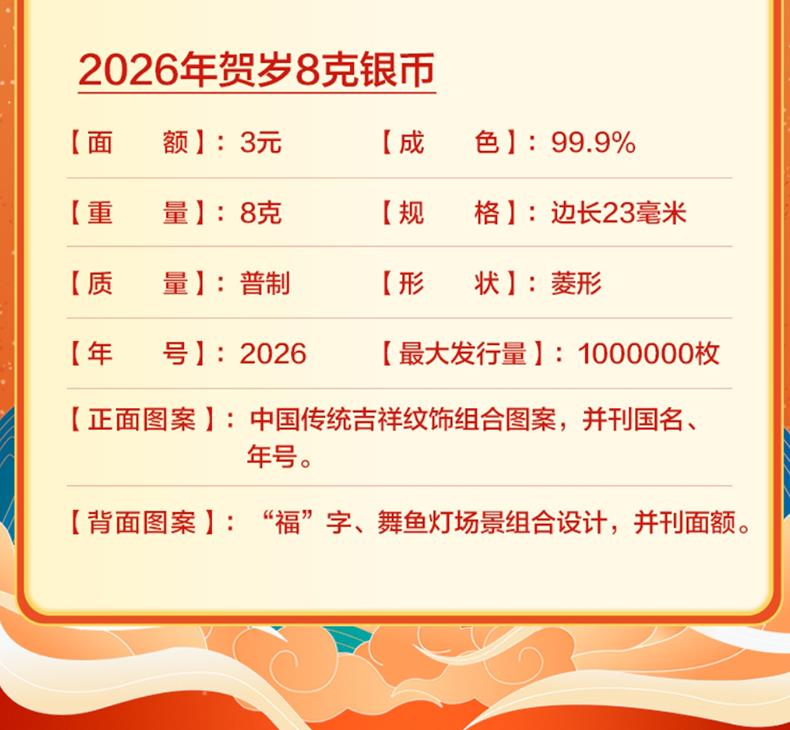 【福字币】2026年贺岁8克银币 金银币 人民银行发行
