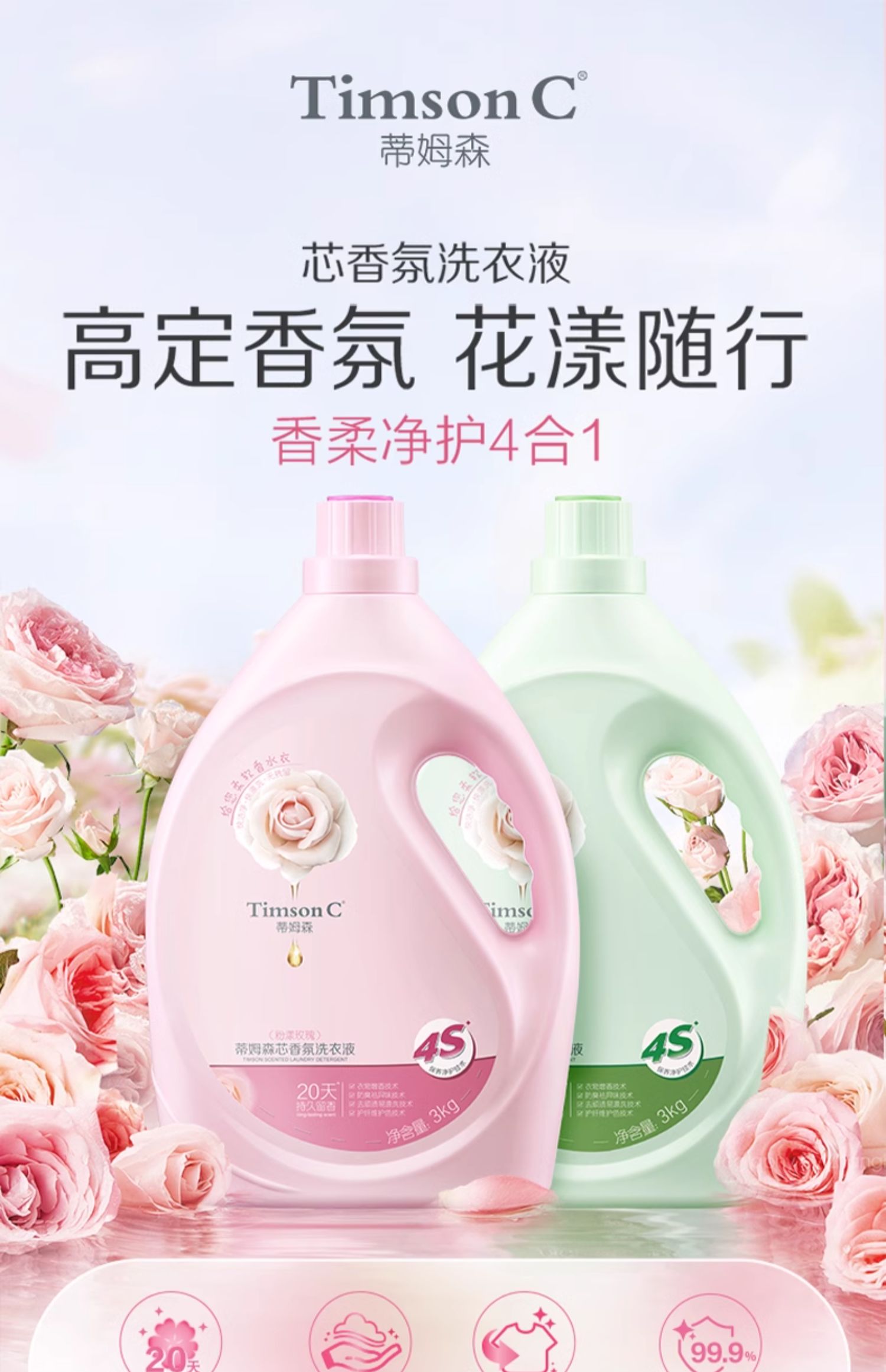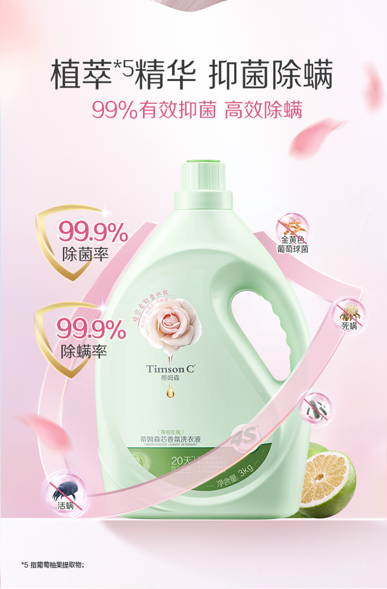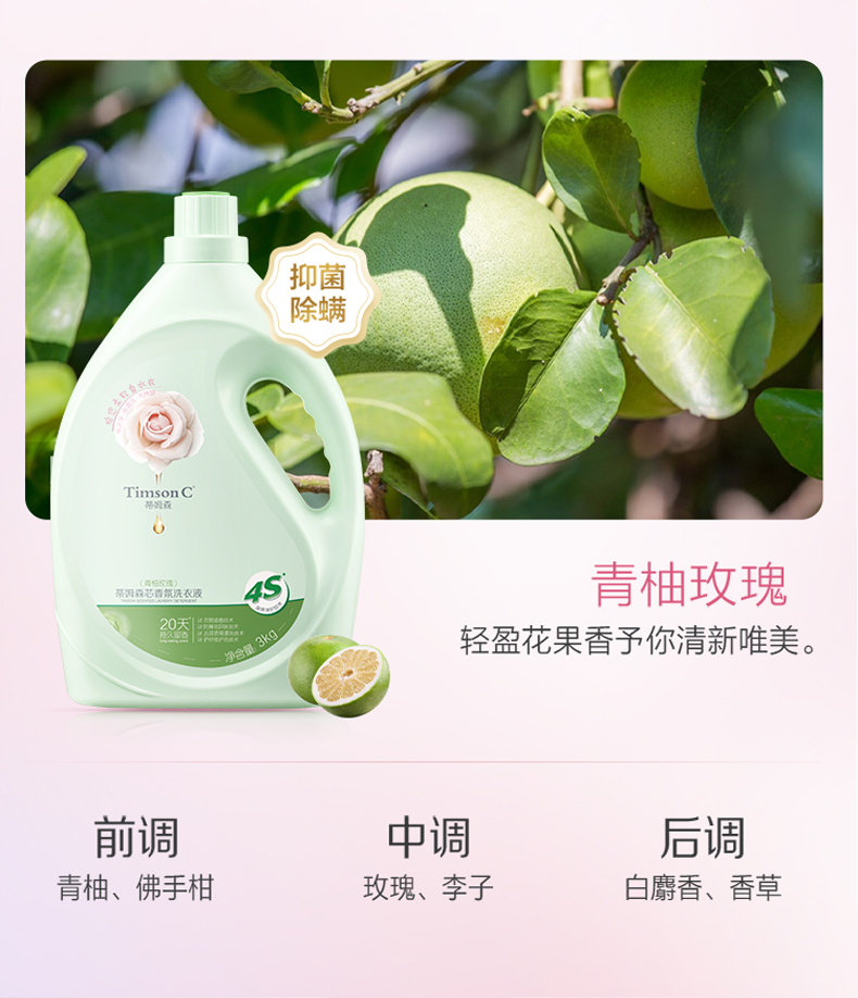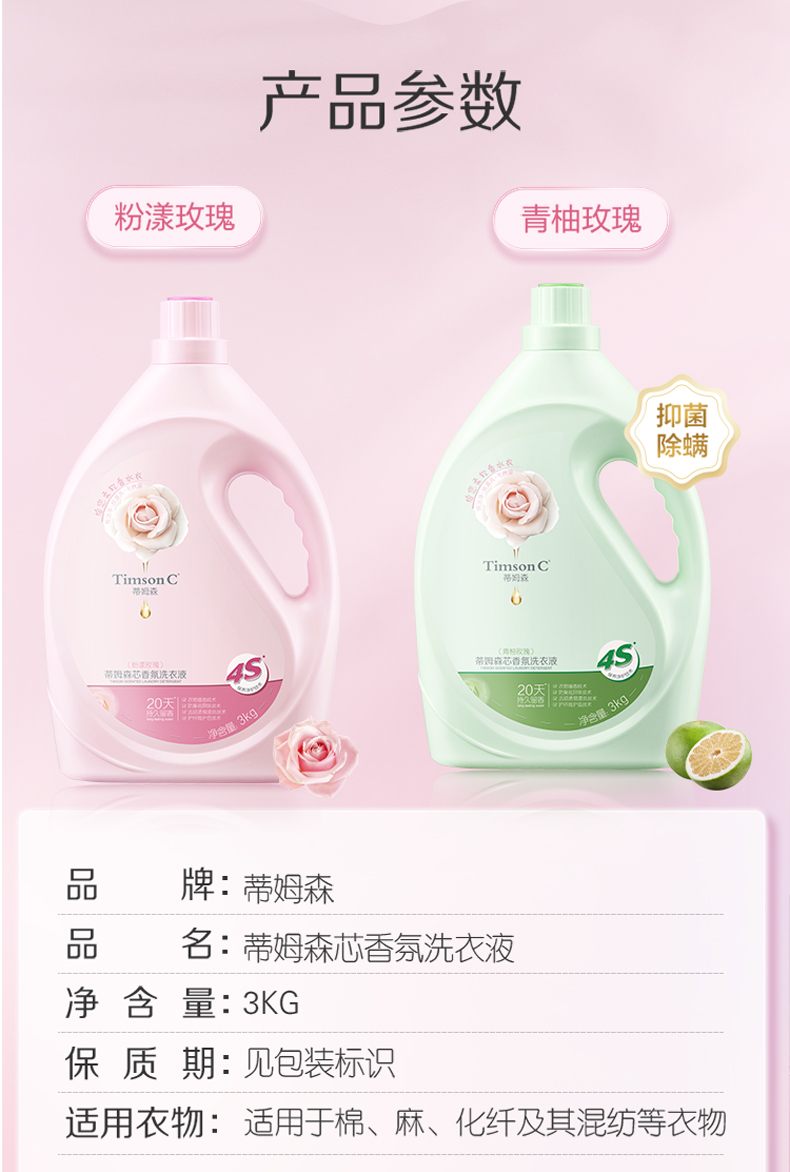 蒂姆森·芯香氛洗衣液(粉漾/青柚)3kg送两袋1.25kg洗衣液