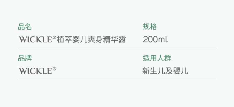 WICKLE植萃婴儿爽身精华露 爽身 痱子都可用
