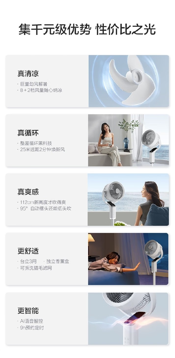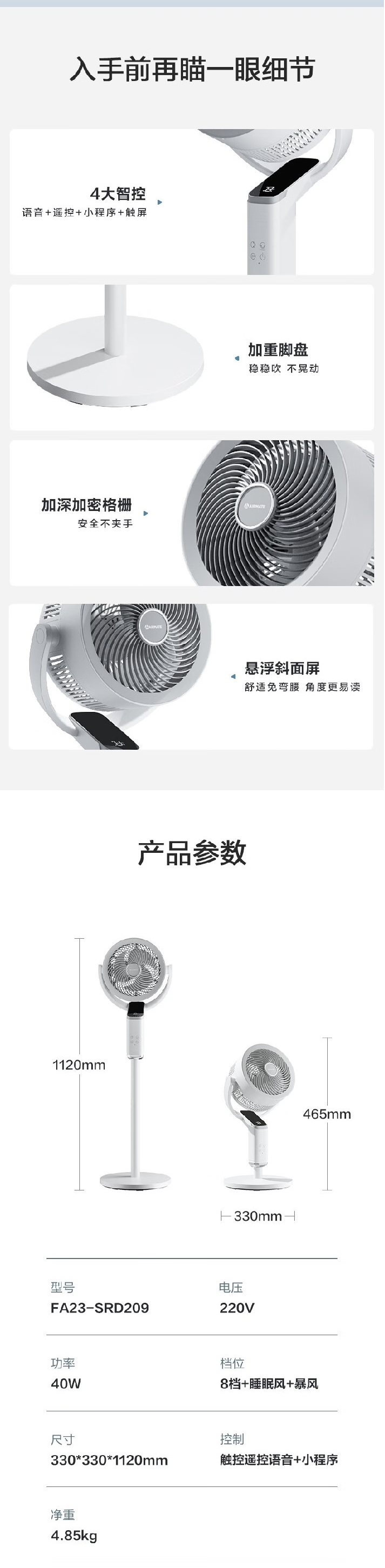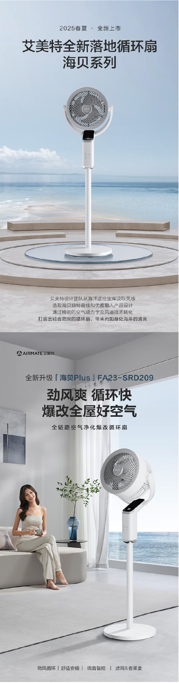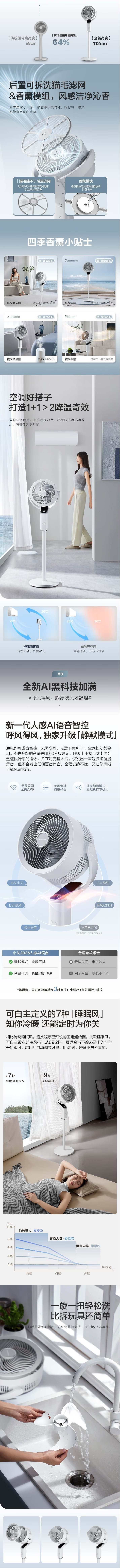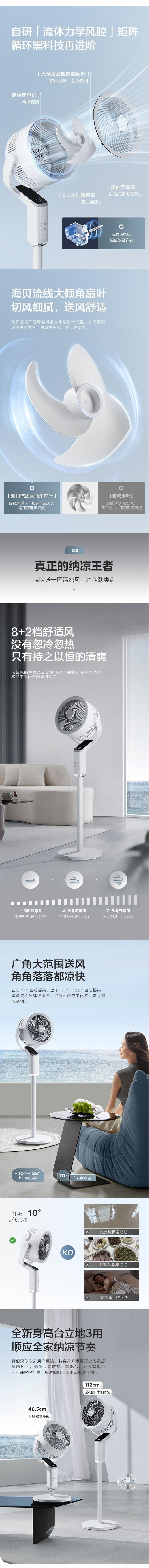 艾美特(AIRMATE)(510595)全新落地循环扇海贝系列空气循环扇8+2档AI语音落地风扇 FA23-SRD209