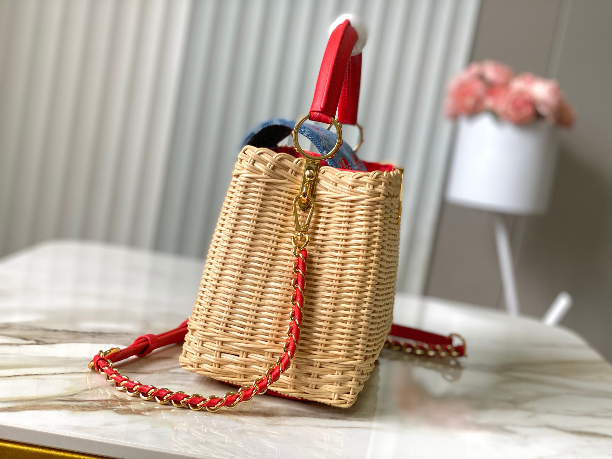 秋冬特惠💰1750 渠道级LV 新品 te级LV 动态芯片 LV X TM CAPUCINES 手袋 M14295/M48865红色樱桃竹篮 本款Capucines手袋